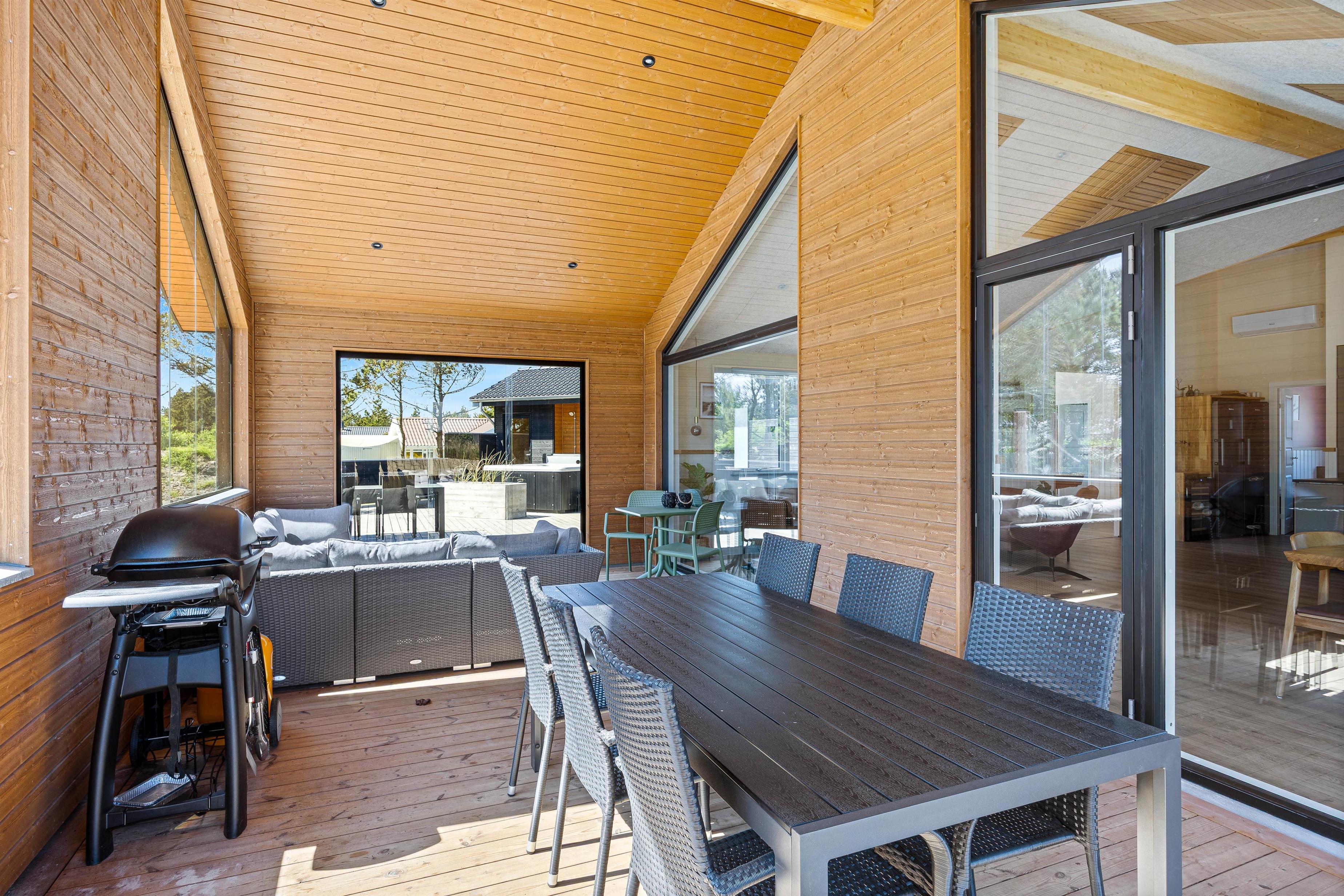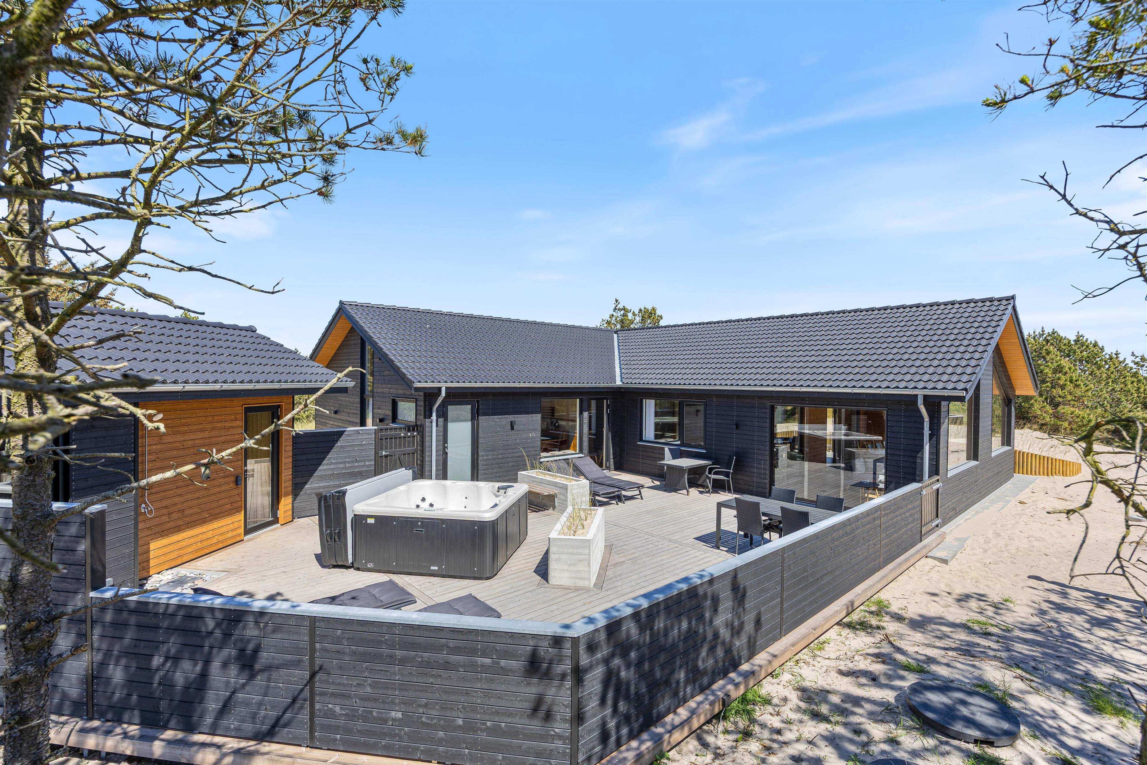 På de lune sommeraftner skal I naturligvis tænde op i gasgrillen. Tilbered et lækkert måltid og nyd hertil et køligt glas rosé. Fuldend aftenen med en tur i den varme udespa, som står klar til at give jer en afslappende wellnessoplevelse. Skal I varmes ekstra godt igennem, er her også en udendørs sauna. Der findes også en udebruser, perfekt til at skylle kroppen efter en saunasession eller sandet af efter en dag på stranden, der findes 800 meter herfra. Udebruseren kan benyttes fra april til november.