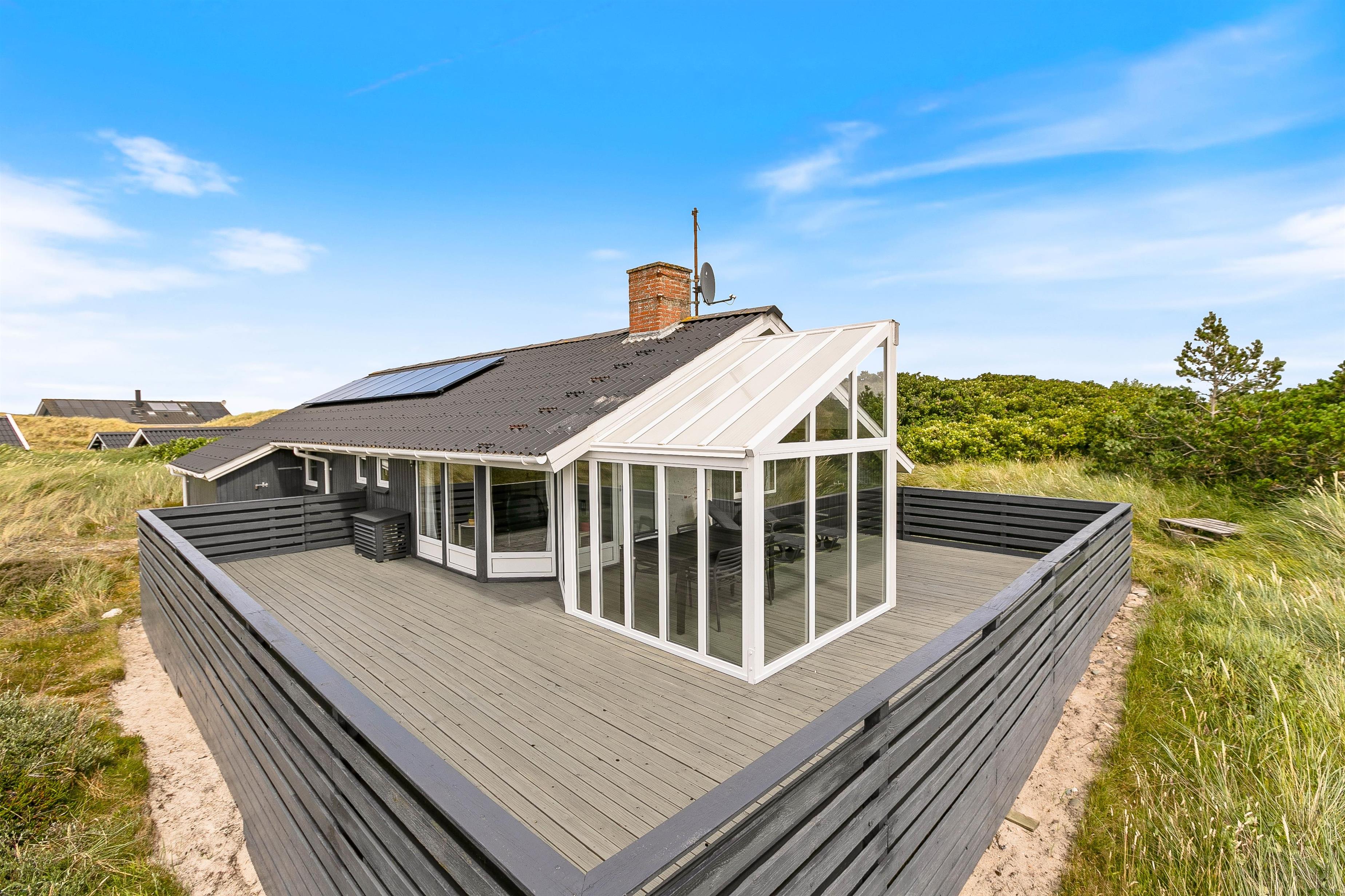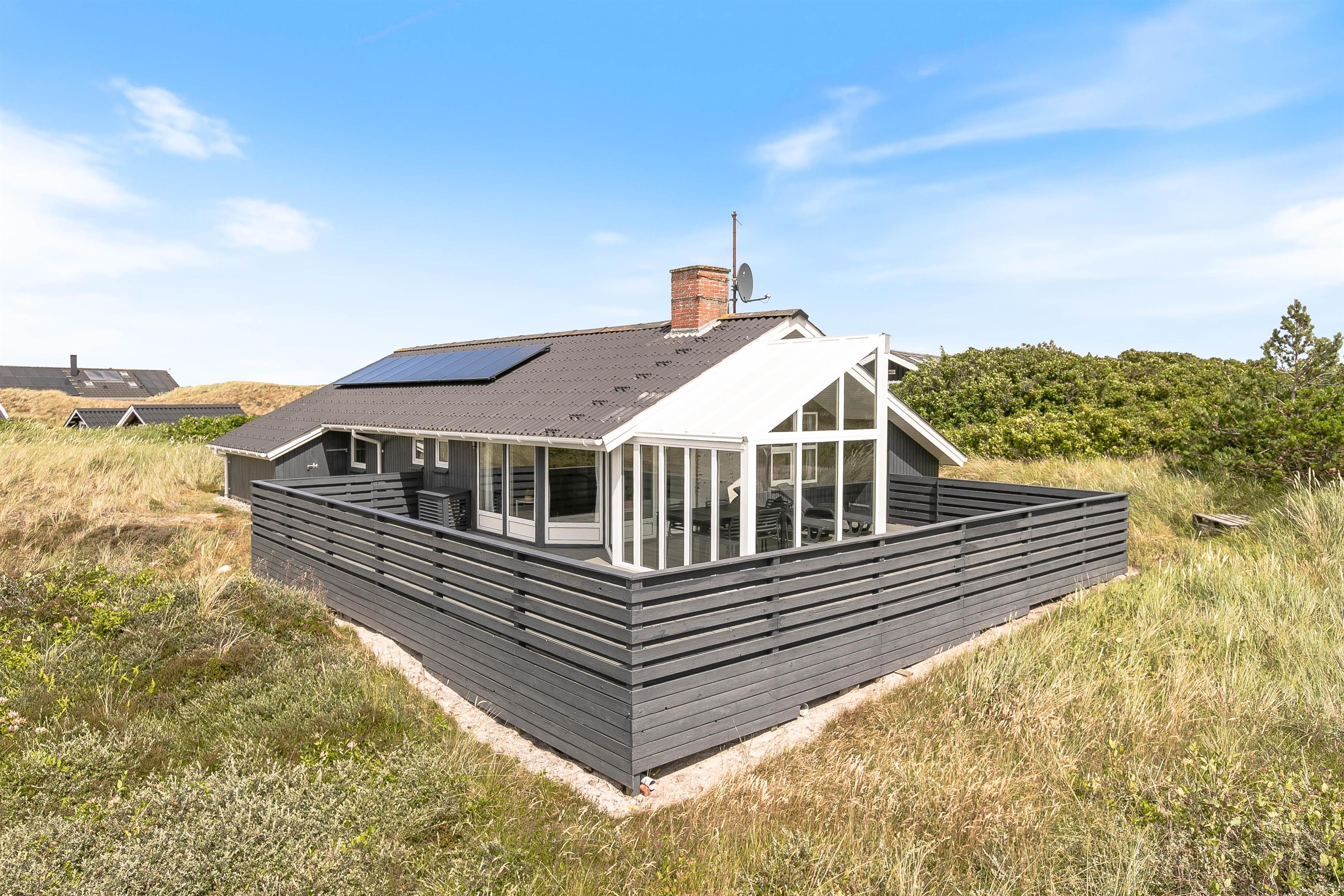 Dette hyggelige og lyse sommerhus finder du på Bjerregårdsvej 204. Feriehuset har en stor, lukket terrasse, hvor det altid er muligt at finde læ, og både stranden og købmanden ligger kun et kort stykke væk.