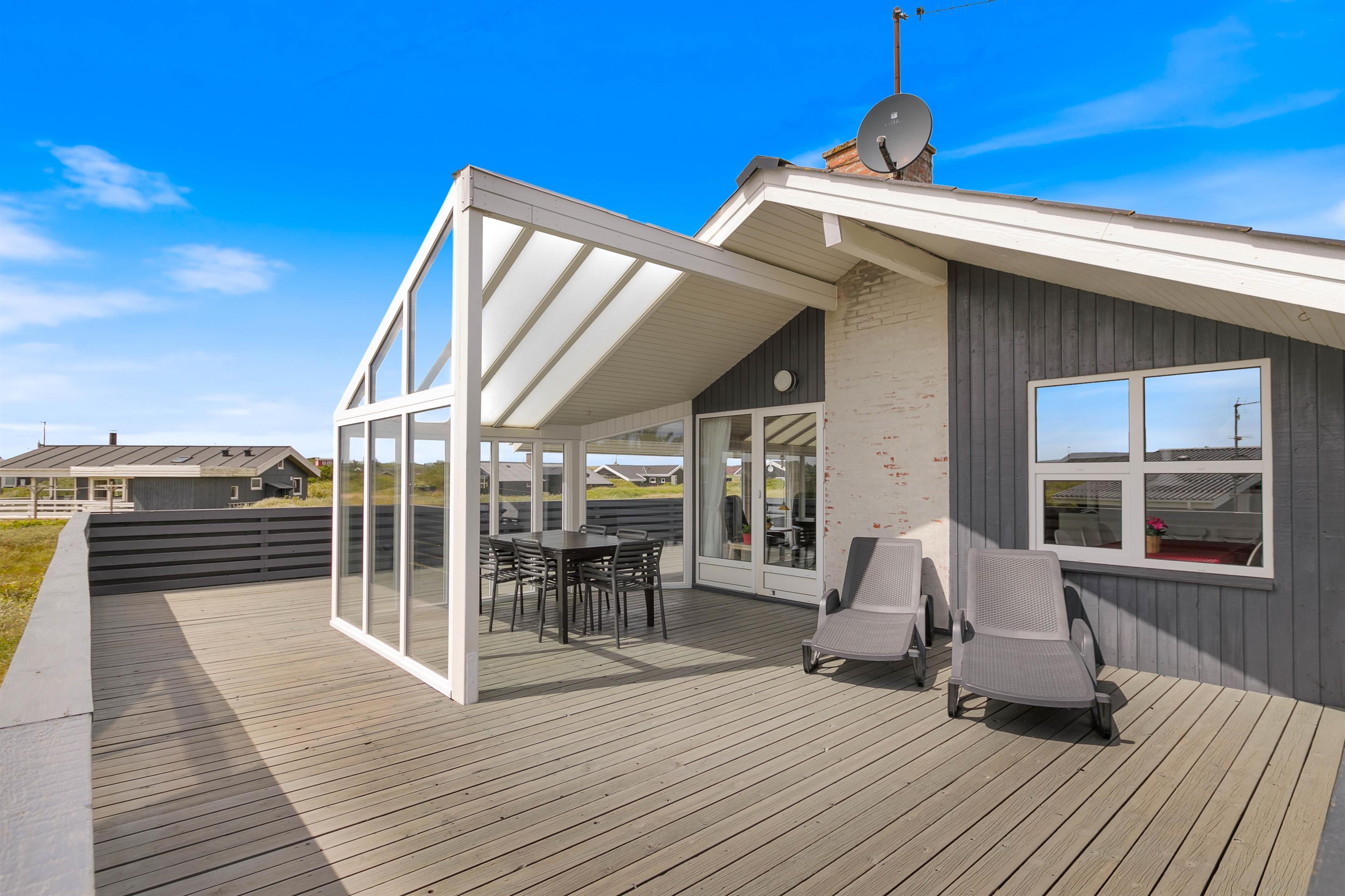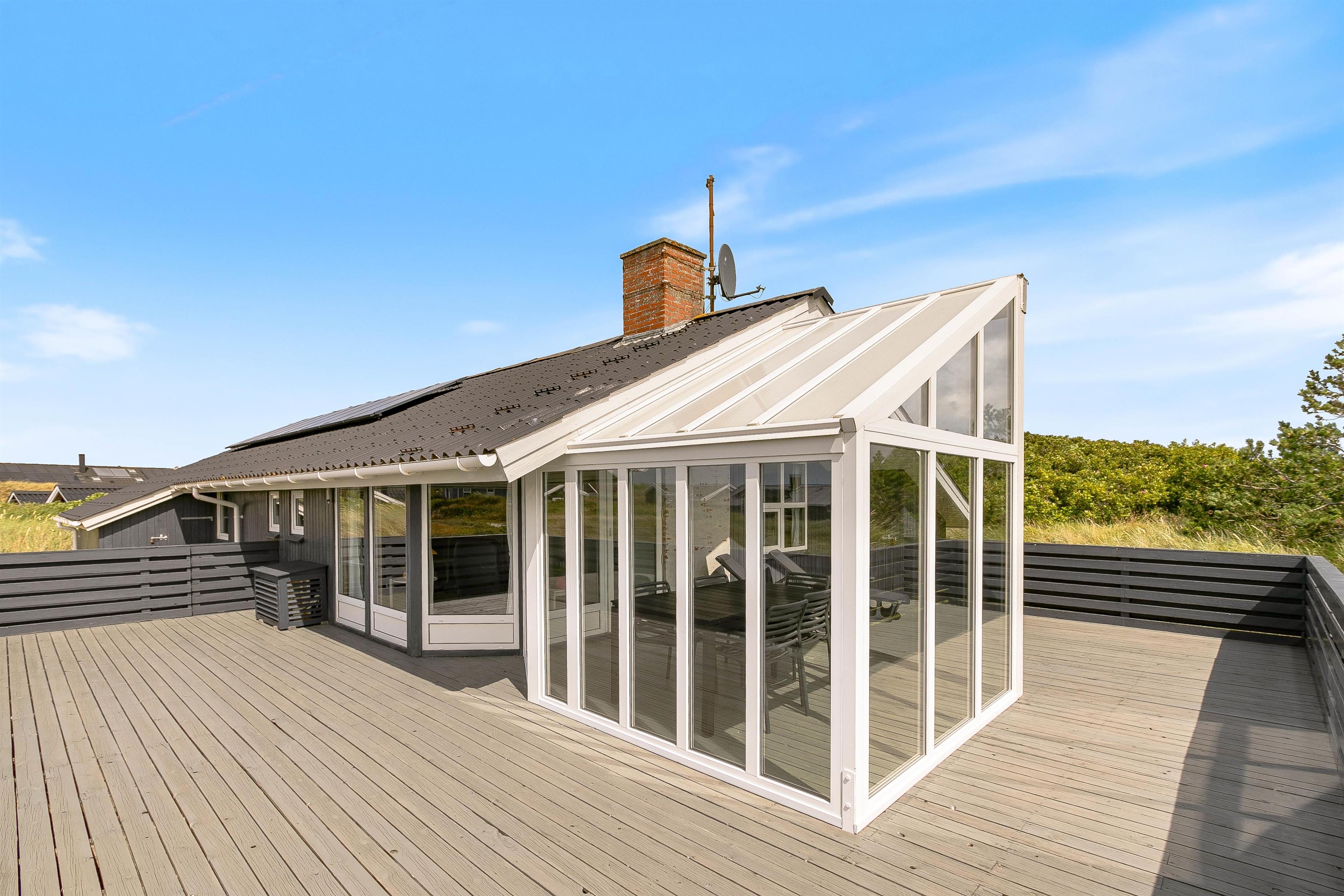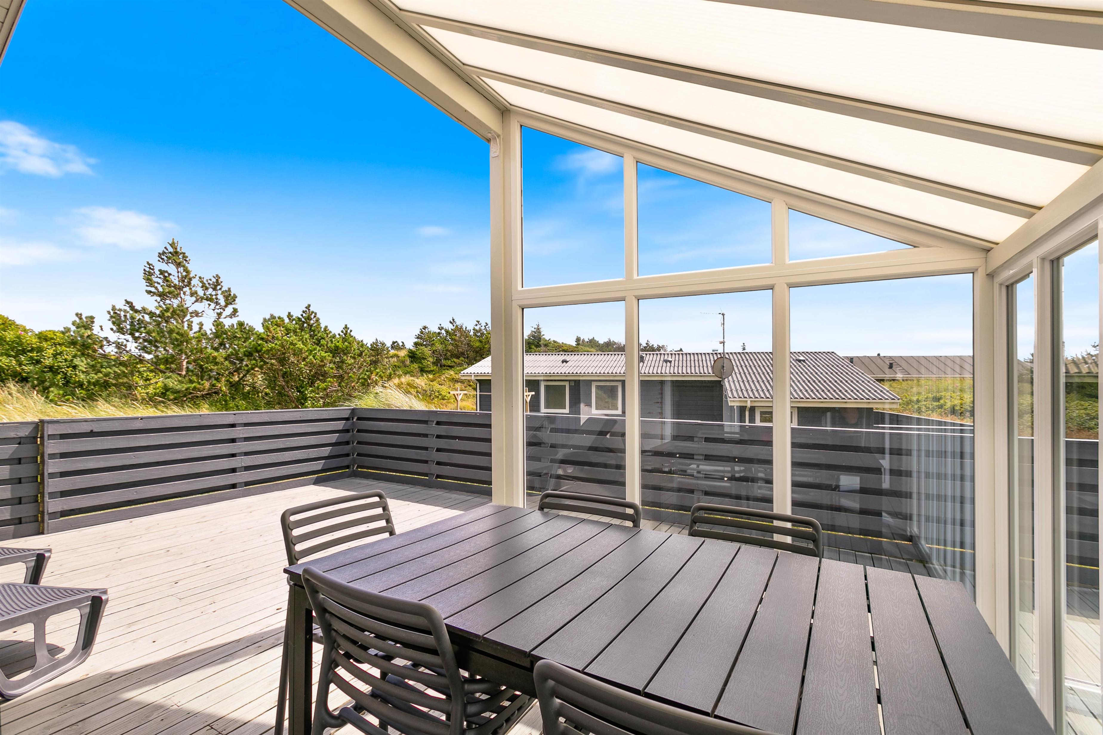 De store vinduespartier på terrassen gør, at I kan sidde udenfor og nyde udsigten, selv når vejret er mindre godt. En hyggelig grillaften for hele familien er en perfekt afslutning på dagen, hvor I kan sidde rundt om havebordet og planlægge den næste udflugt.