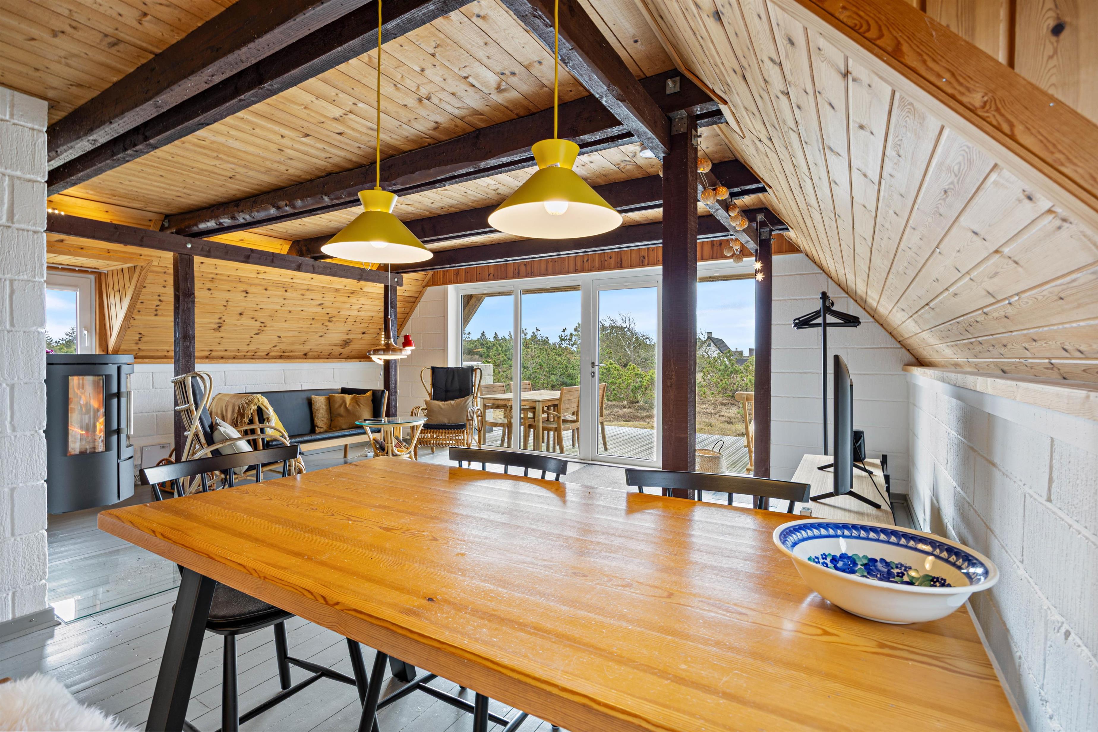 Sommerhusets hjerterum er opholdsrummet, der inviterer jer indenfor til skønne stunder foran den knitrende brændeovn. Her kan I slappe af på sofaen, holde spilleaftner eller fordybe jer i en god bog. Imens kan der laves dejlig mad i køkkenet, der er udstyret med separat 40L fryser og naturligvis en opvaskemaskine.