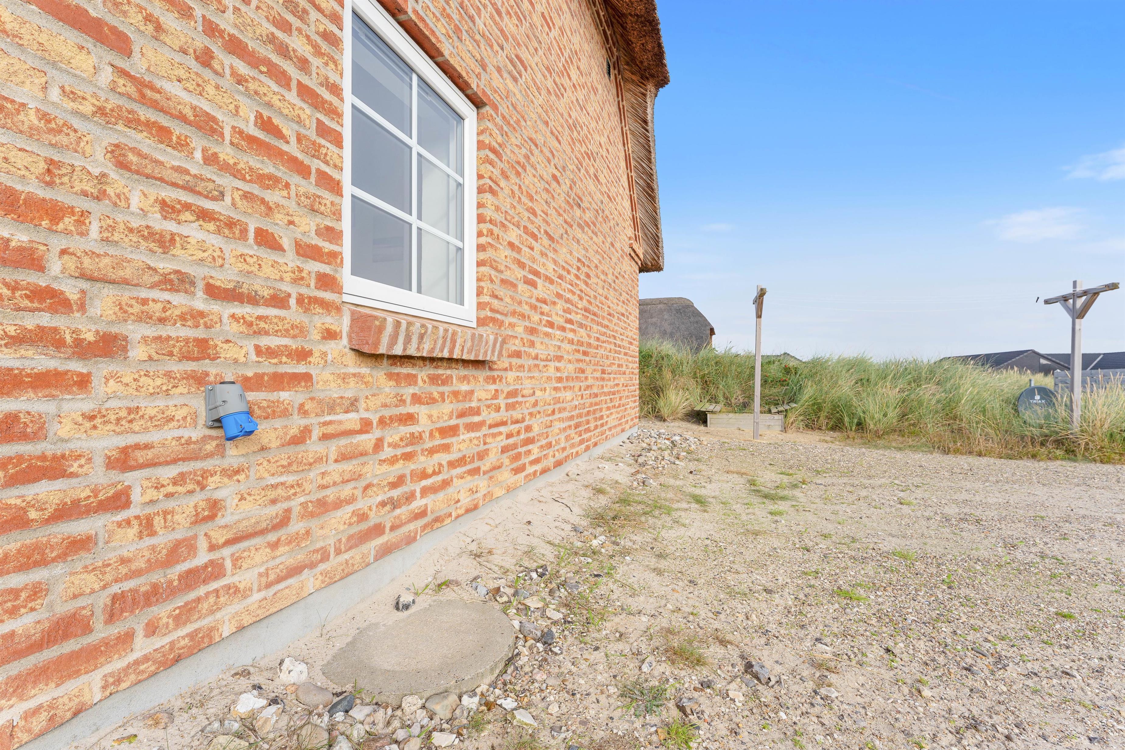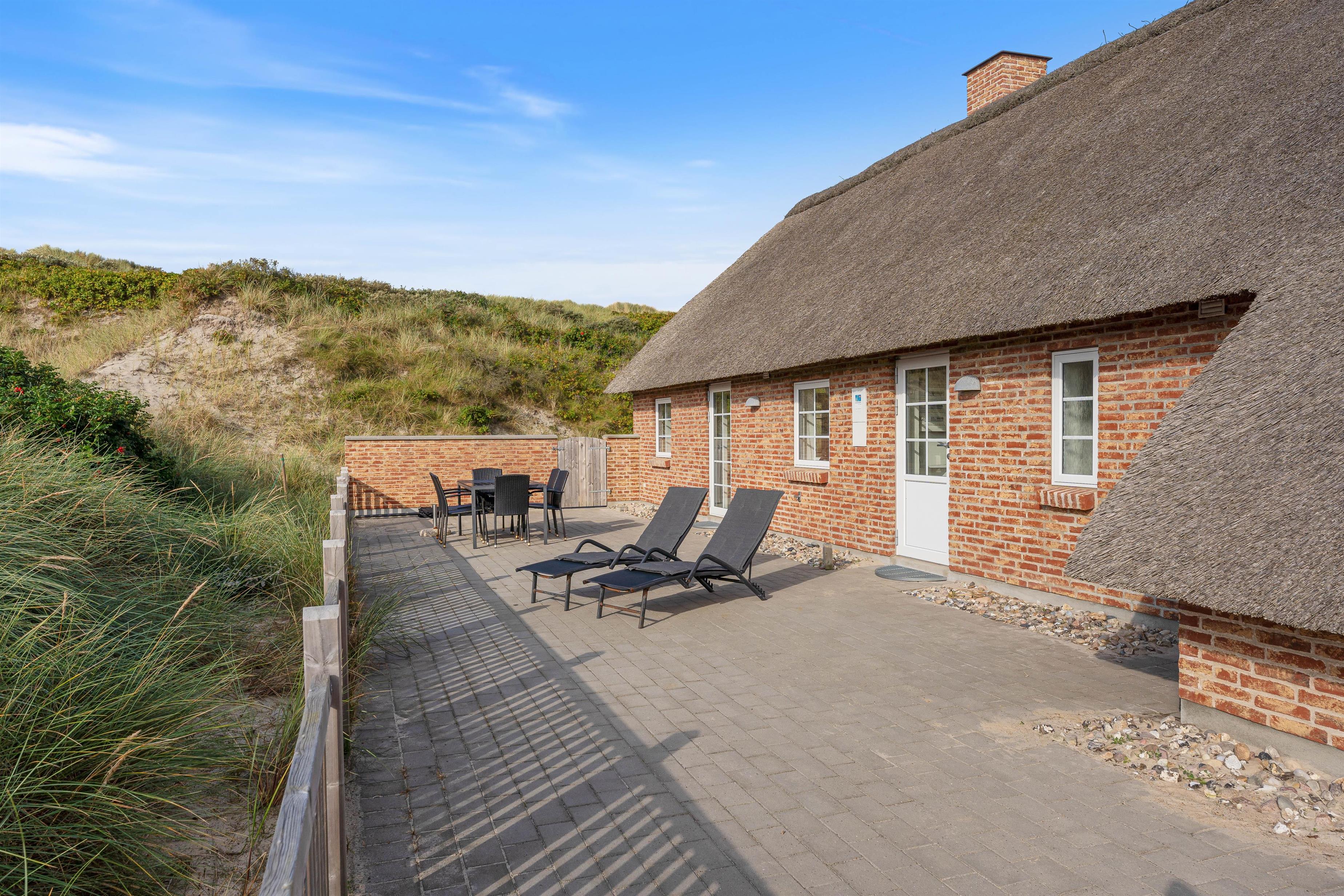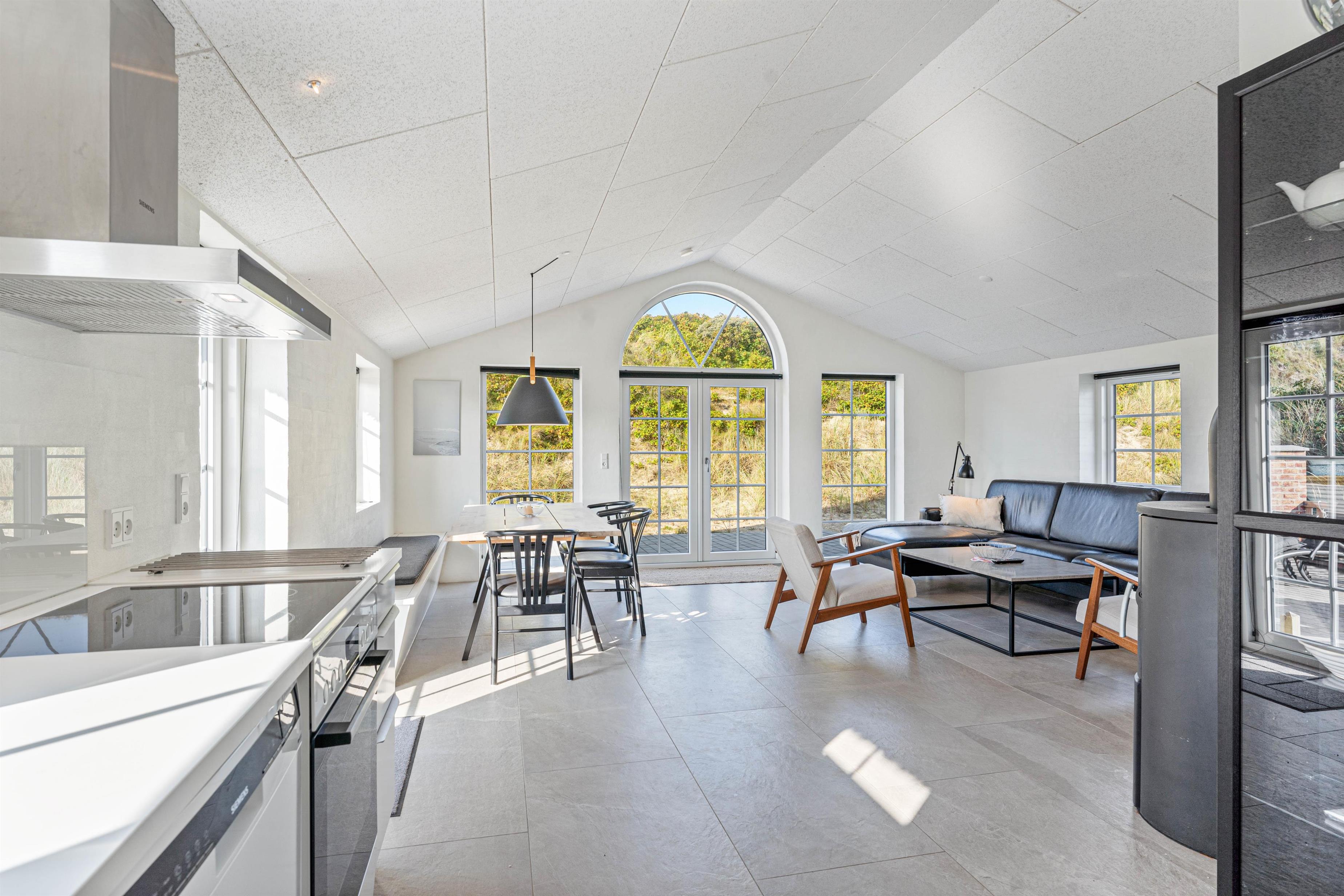 De store vinduer i stuen giver et flot lysindfald, og udsigten til klitterne kan blandt andet nydes gennem det store vestvendte vinduesparti, hvor der også er lagt op til muligheden for at nyde de fantastisk smukke solnedgange. Fra stuen er der udgang til både en sydvendt og vestvendt fliseterrasse, og med sommerhusets skønne beliggenhed i første klitrække er havets brusen også inden for hørevidde.