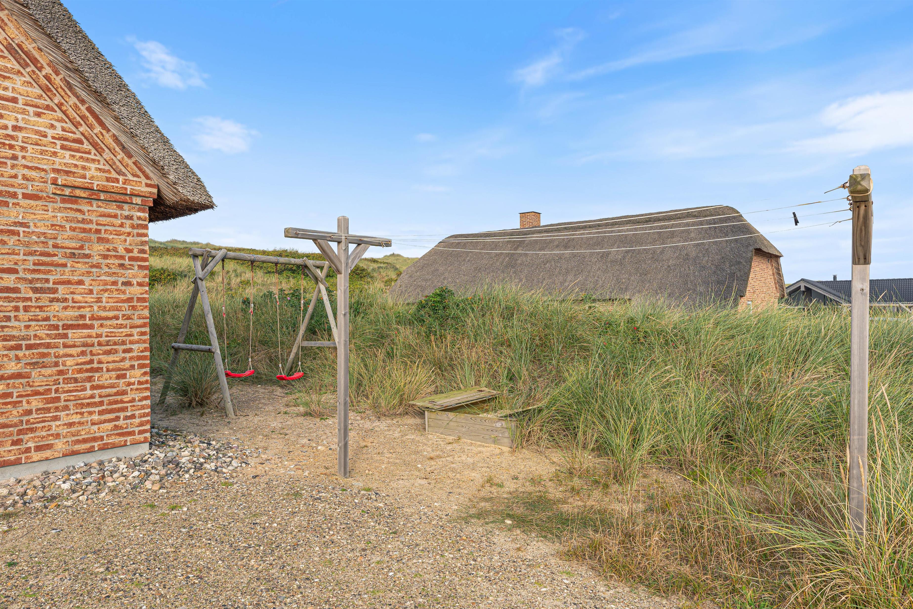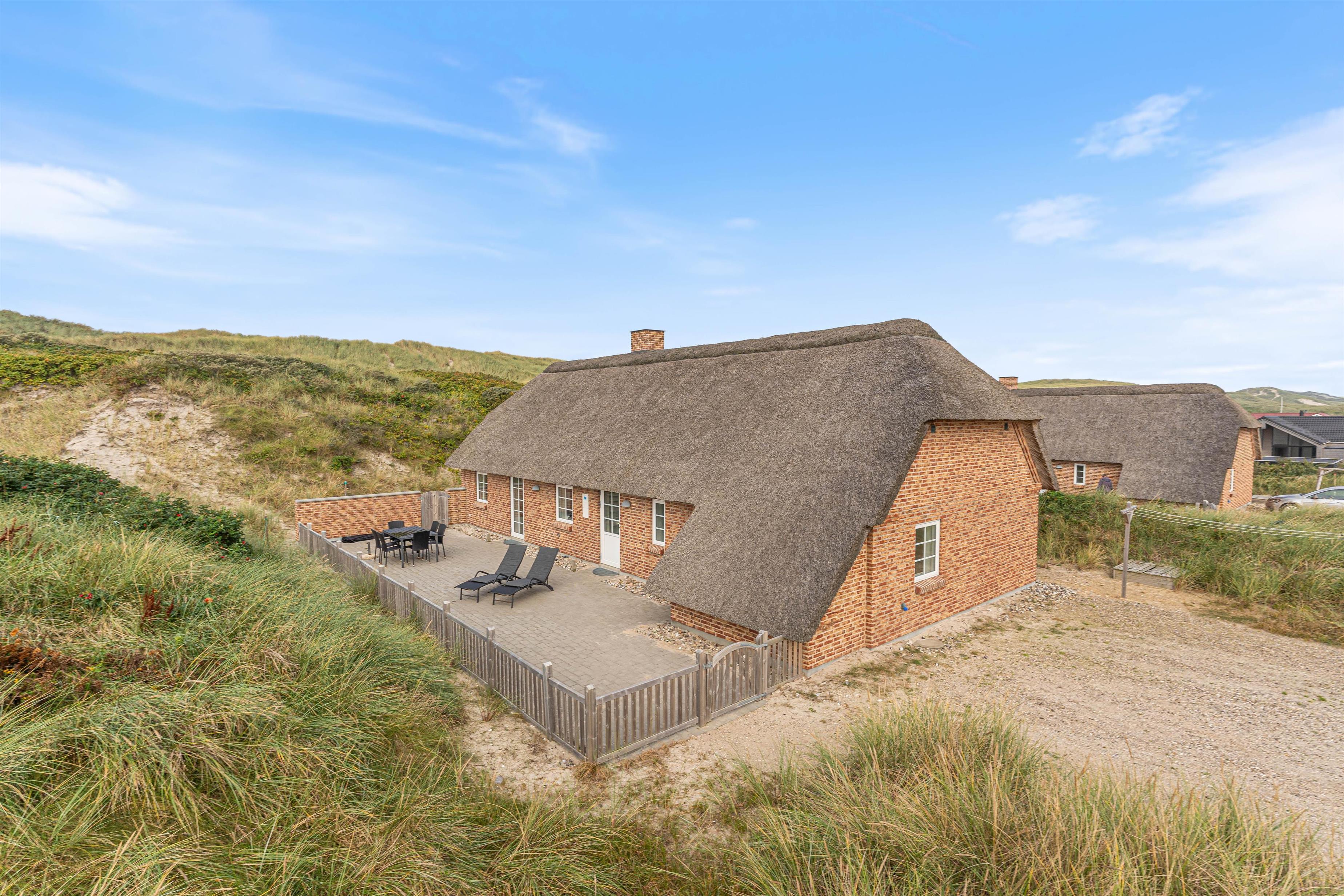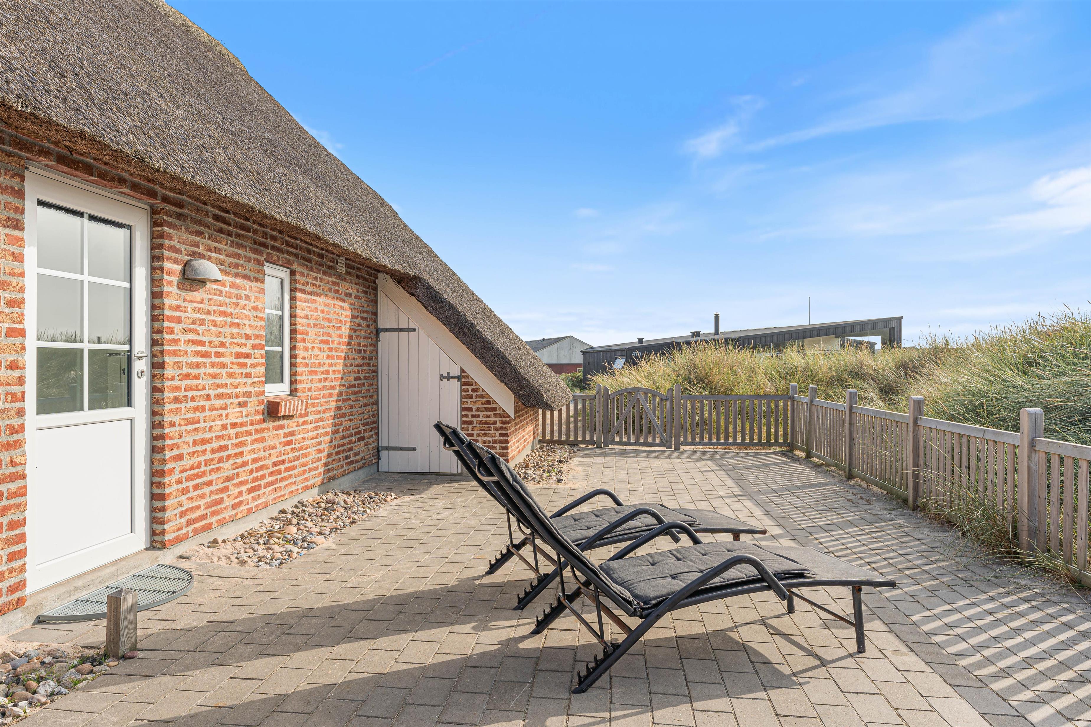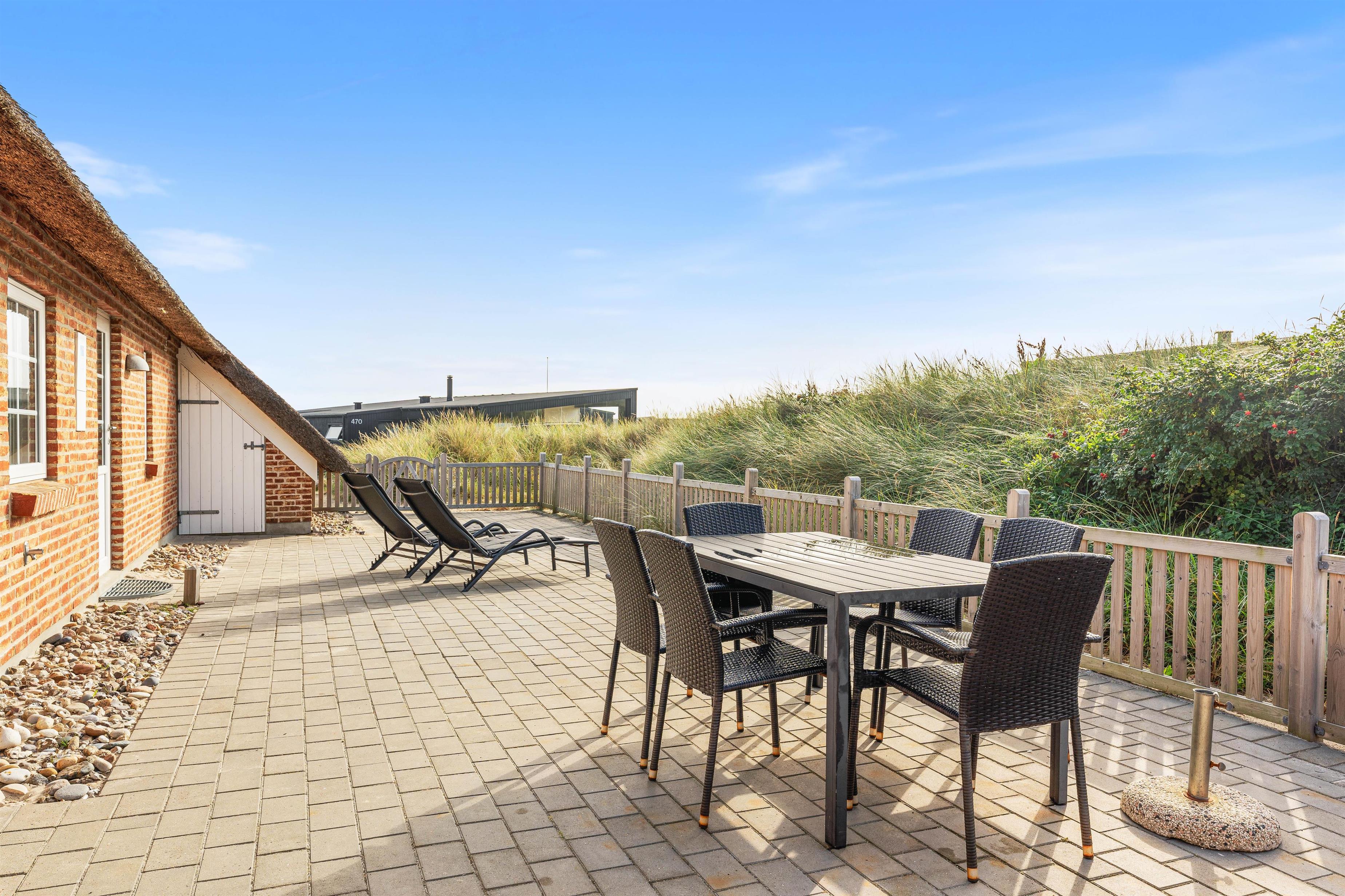 De store vinduer i stuen giver et flot lysindfald, og udsigten til klitterne kan blandt andet nydes gennem det store vestvendte vinduesparti, hvor der også er lagt op til muligheden for at nyde de fantastisk smukke solnedgange. Fra stuen er der udgang til både en sydvendt og vestvendt fliseterrasse, og med sommerhusets skønne beliggenhed i første klitrække er havets brusen også inden for hørevidde.