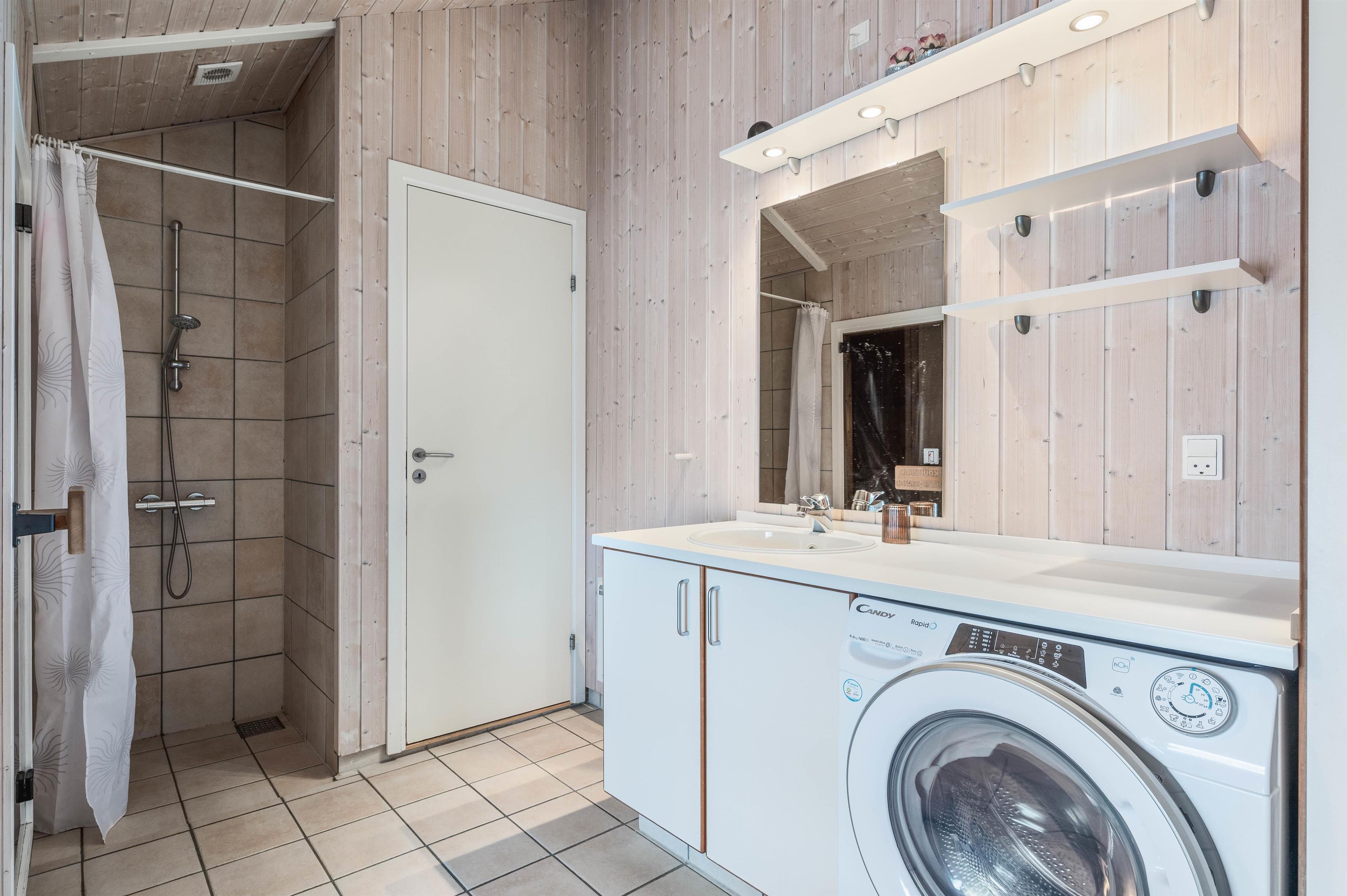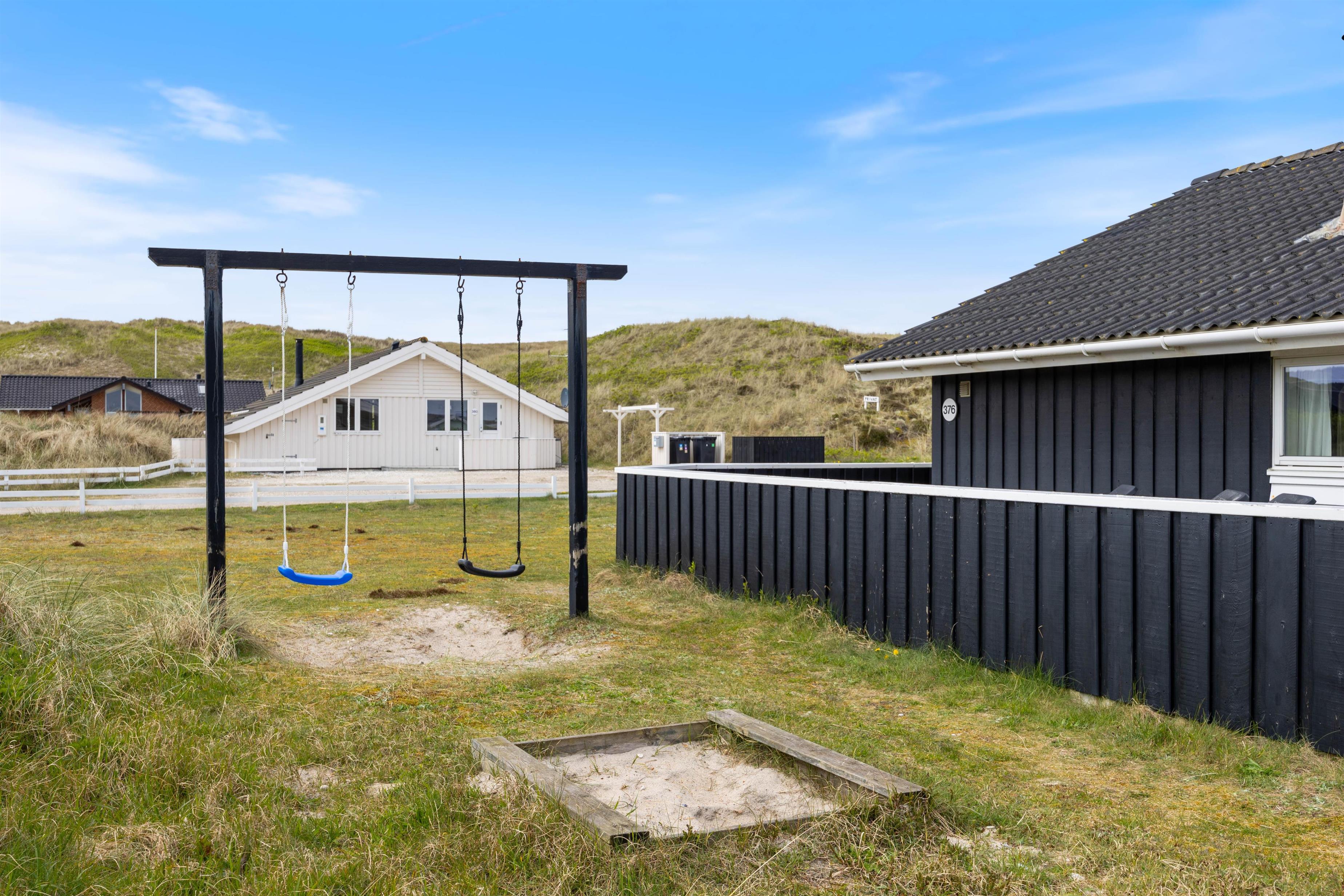 En lukket terrasse er absolut praktisk, hvis du har småbørn med på ferie, men også hvis du rejser med et husdyr. På den lukkede og delvist overdækkede terrasse kan du nyde suset fra Vesterhavet og den skønne salte duft af sand og strand. Terrassen er udstyret med havemøbler, liggestole og grill. Til de mindste er der desuden opsat gynge og sandkasse.