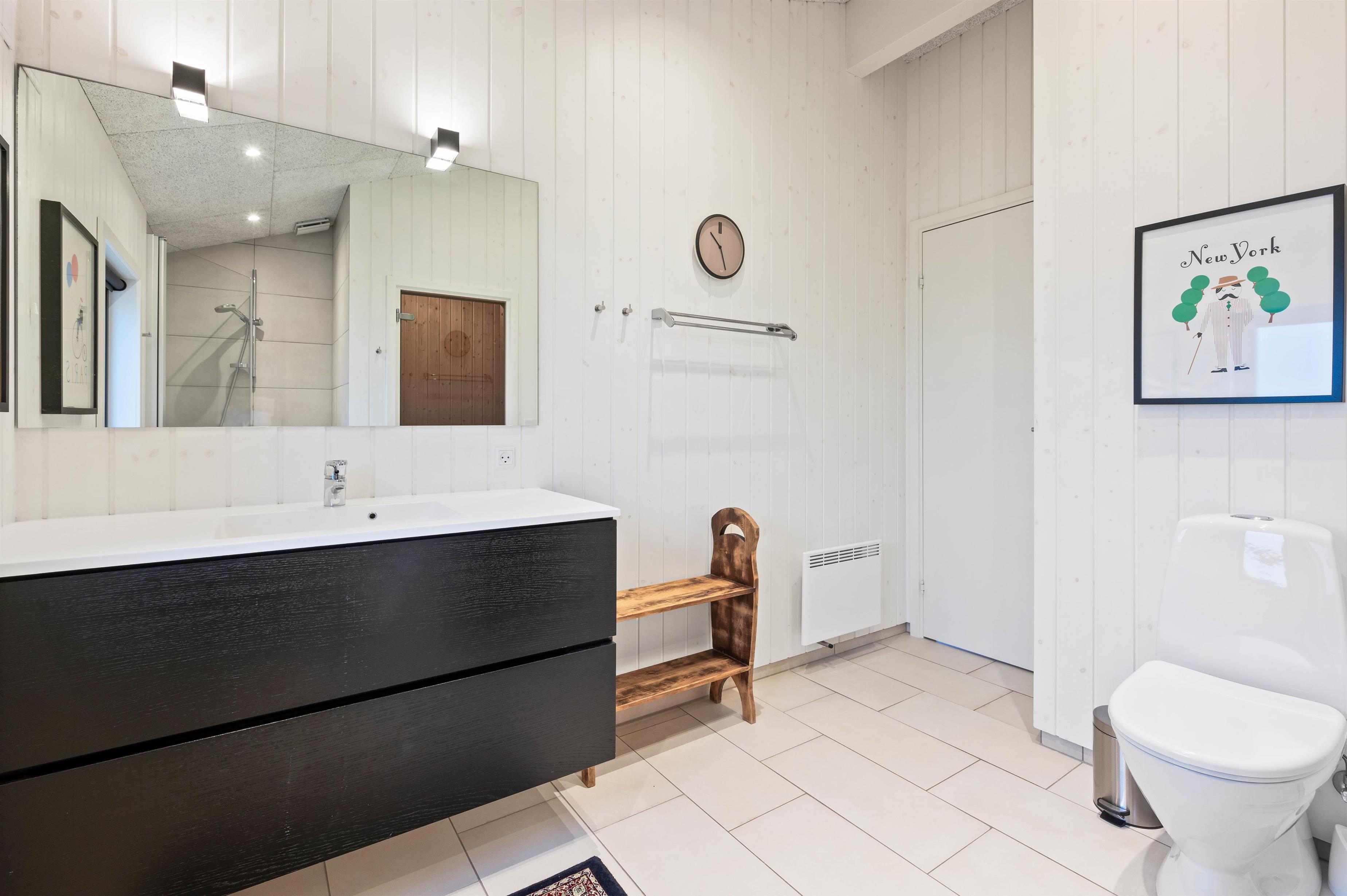 Sommerhuset byder på 3 indbydende soveværelser, som alle er indrettet med en dobbeltseng og giver jer gode rammer for afslappende nætter. De 2 moderne badeværelser – hvoraf det ene har gulvvarme – sørger for høj komfort, selv når huset er fuldt belagt med 6 personer. Køkkenet er fuldt udstyret, så I nemt kan tilberede feriens måltider. Opvaskemaskinen gør hverdagen ekstra bekvem, og vaskemaskinen bidrager til et ubekymret ophold.