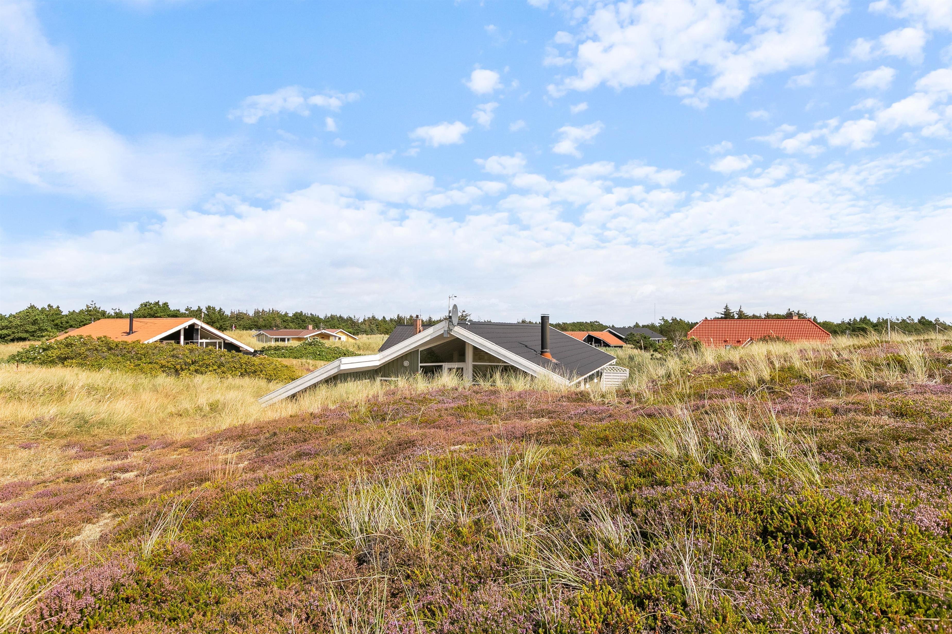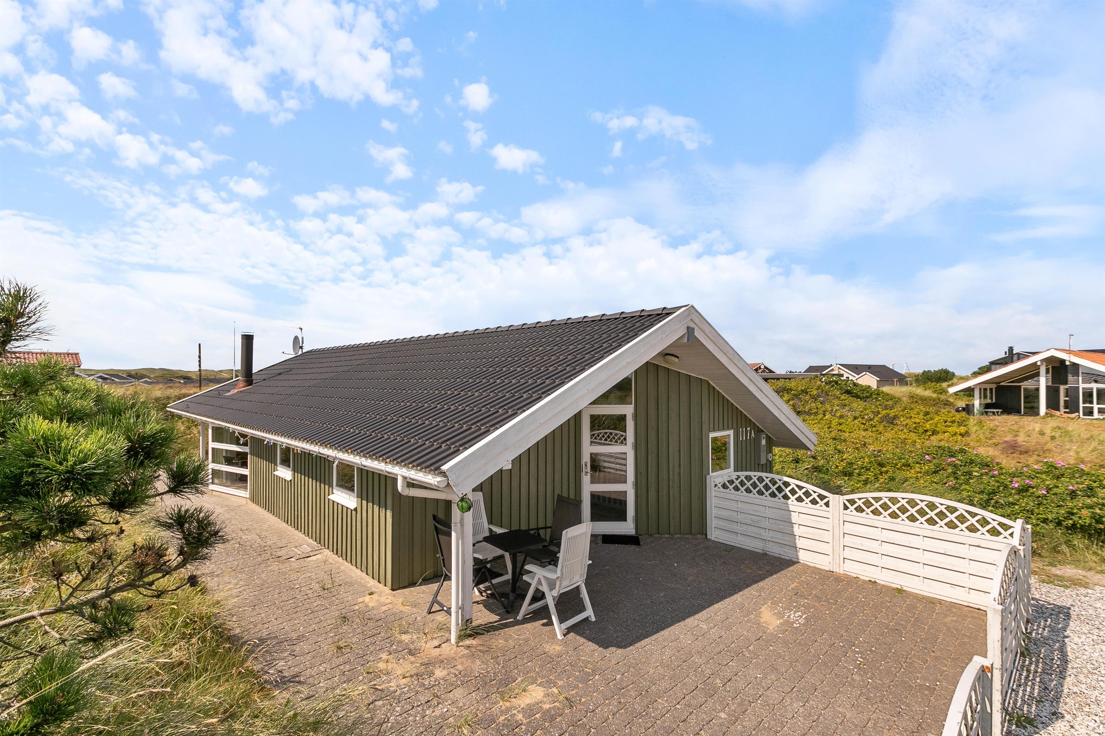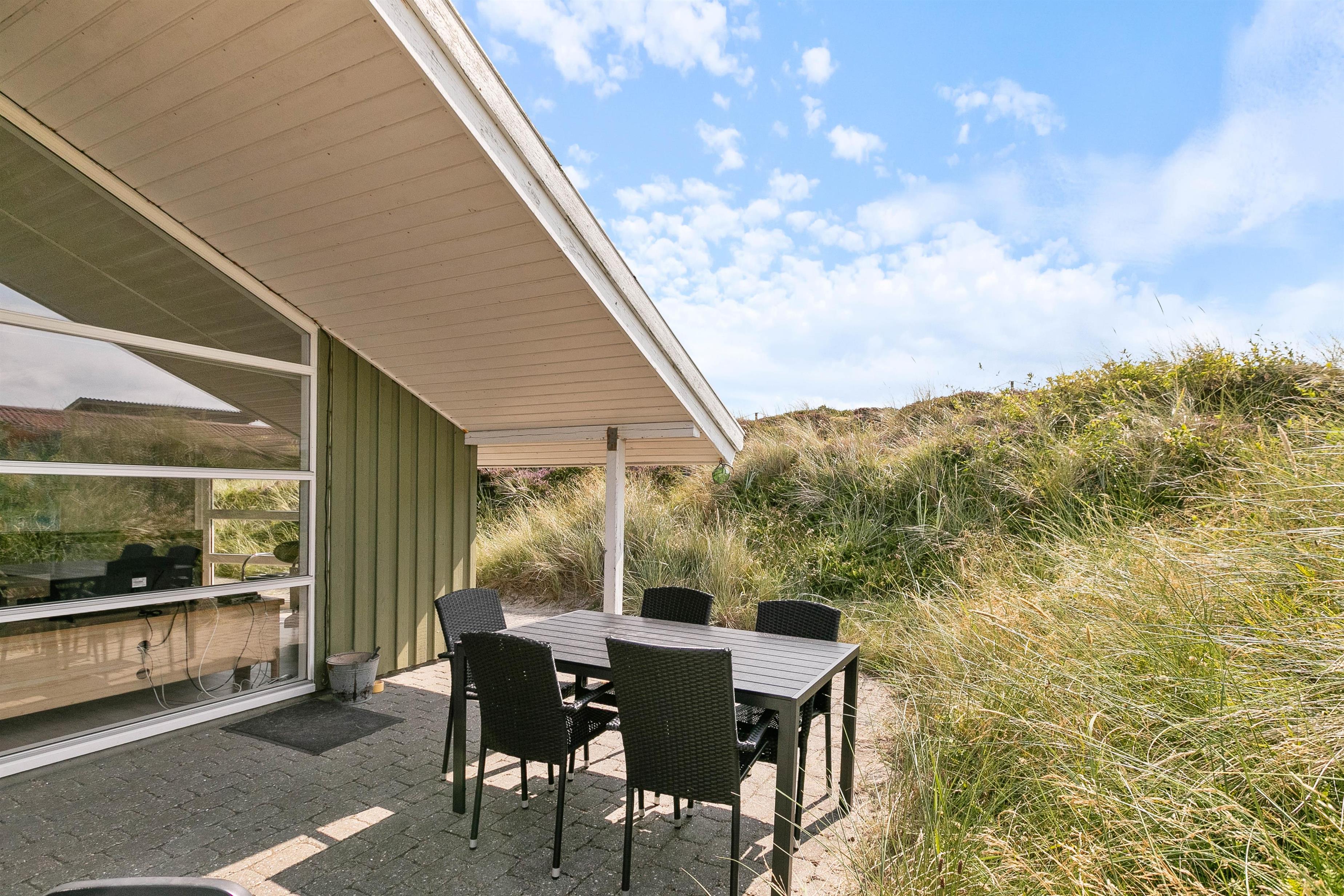 Uden for sommerhus er der en skøn, naturligt afskærmet terrasse, hvor I naturligvis finder havemøbler, liggestole og grill - ideel til solbadning, afslapning og grillhygge på de lange, lyse sommeraftener. En del af terrassen er overdækket, så I kan nyde den friske vesterhavsluft, selv når vejret er dårligt.