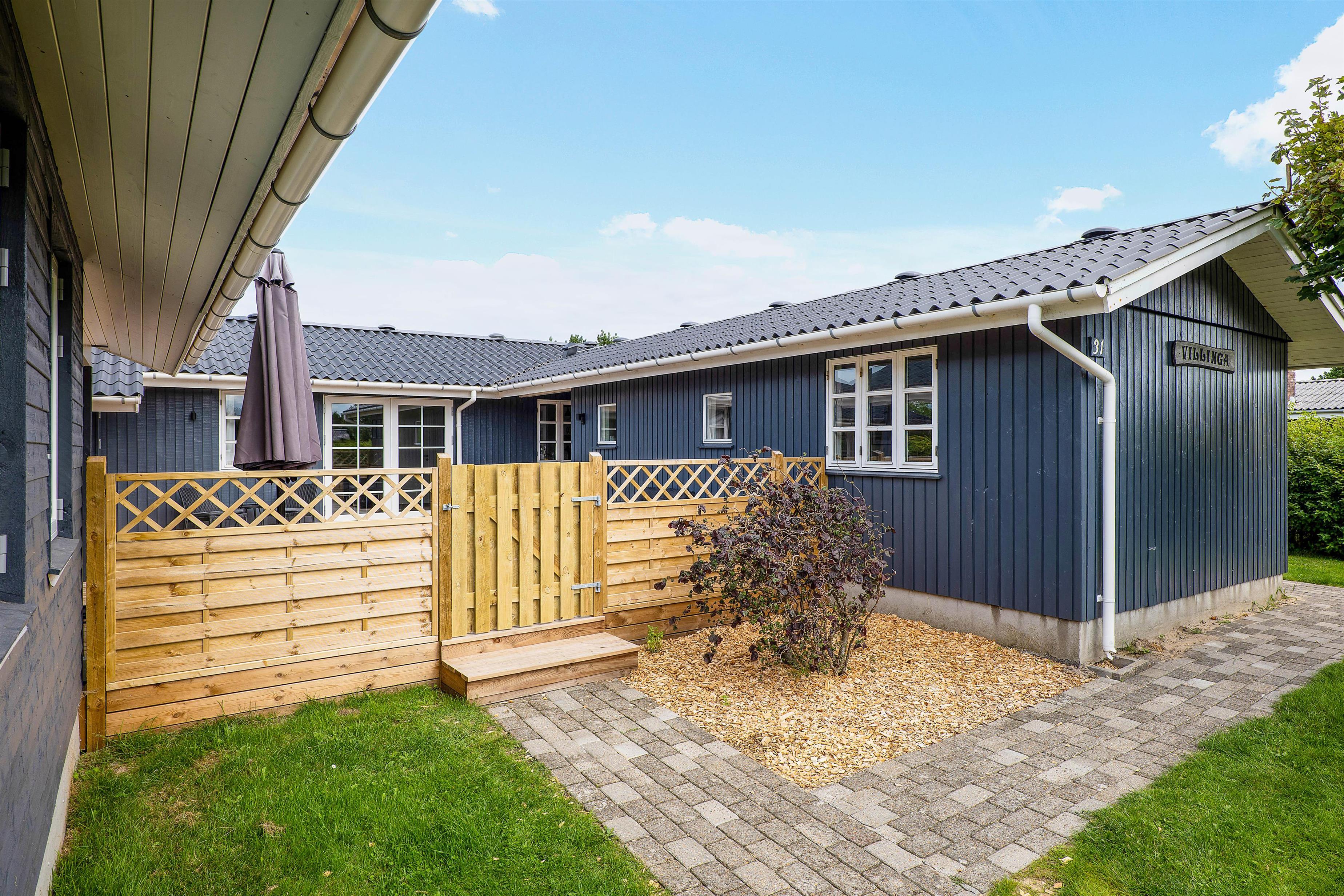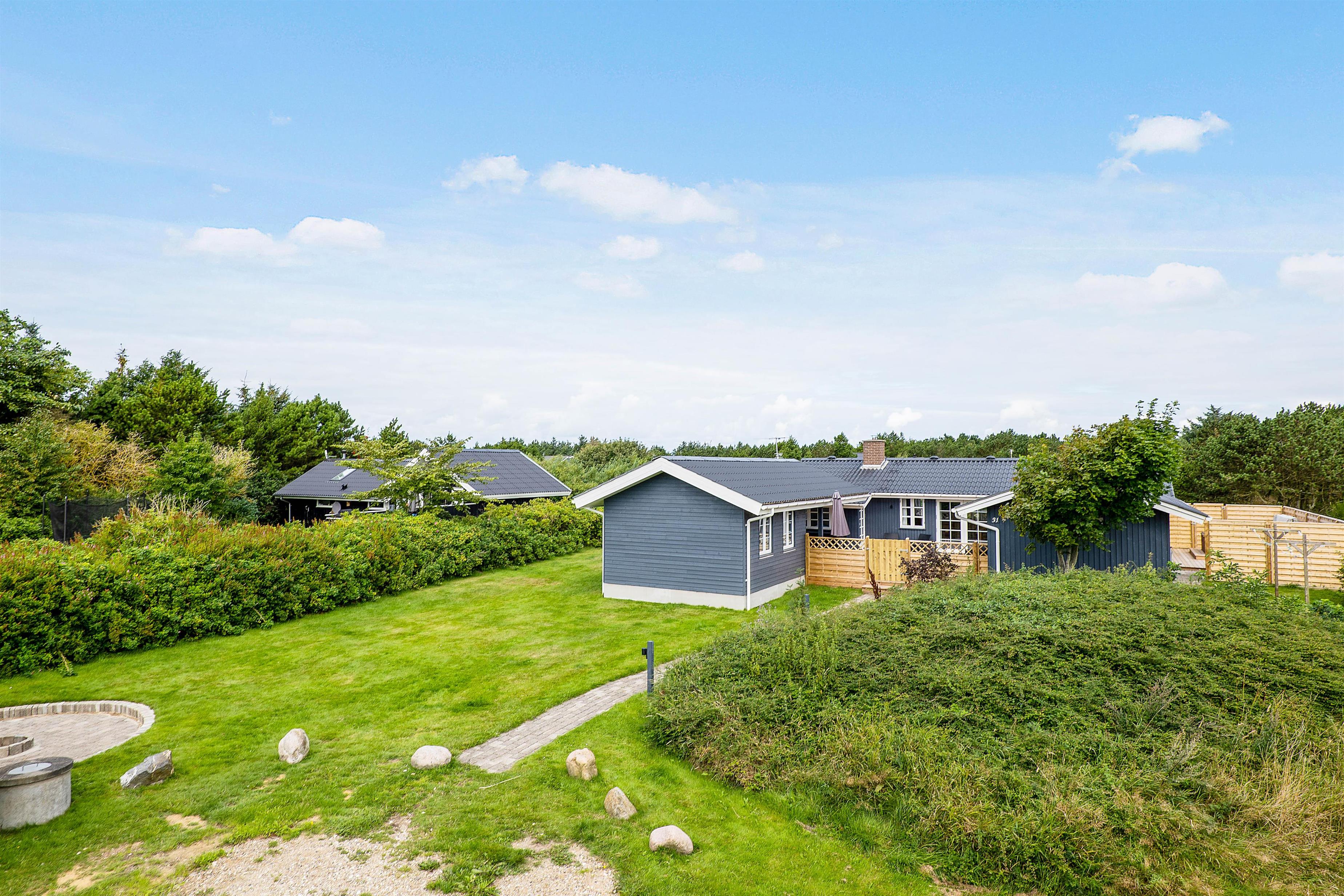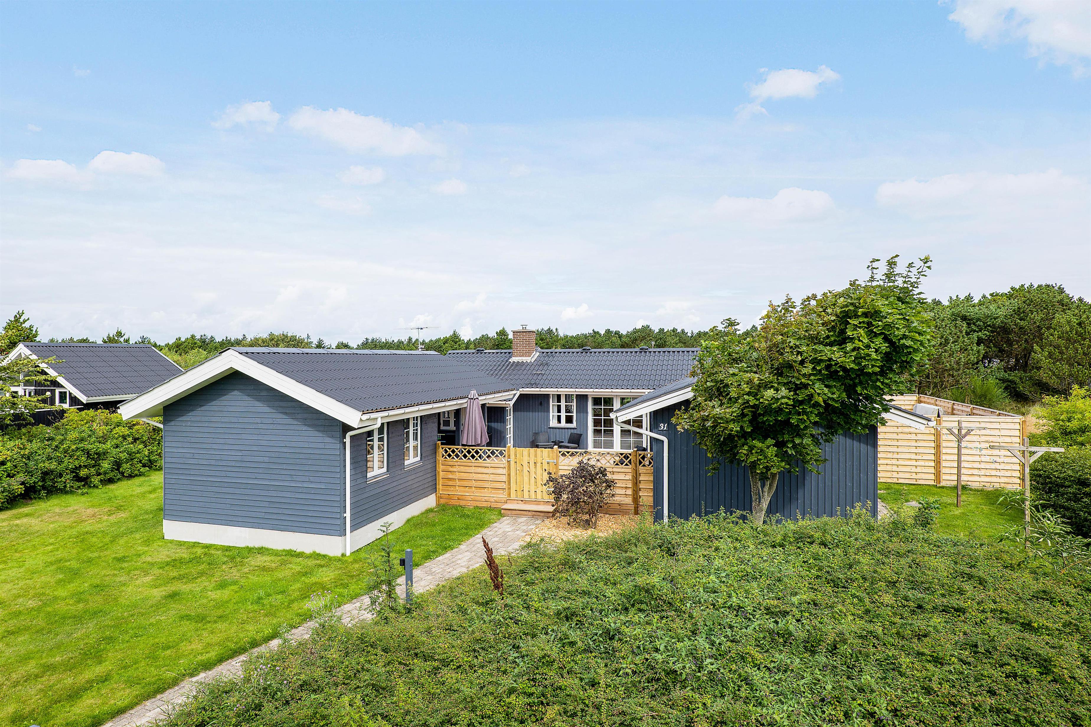 På Sigfred Jensens Vej 31 ligger dette hyggelige sommerhus til 8 personer på en delvis afskærmet naturgrund. Her er en stor og delvist overdækket terrasse, og der er desuden både udespa og shelter i haven.