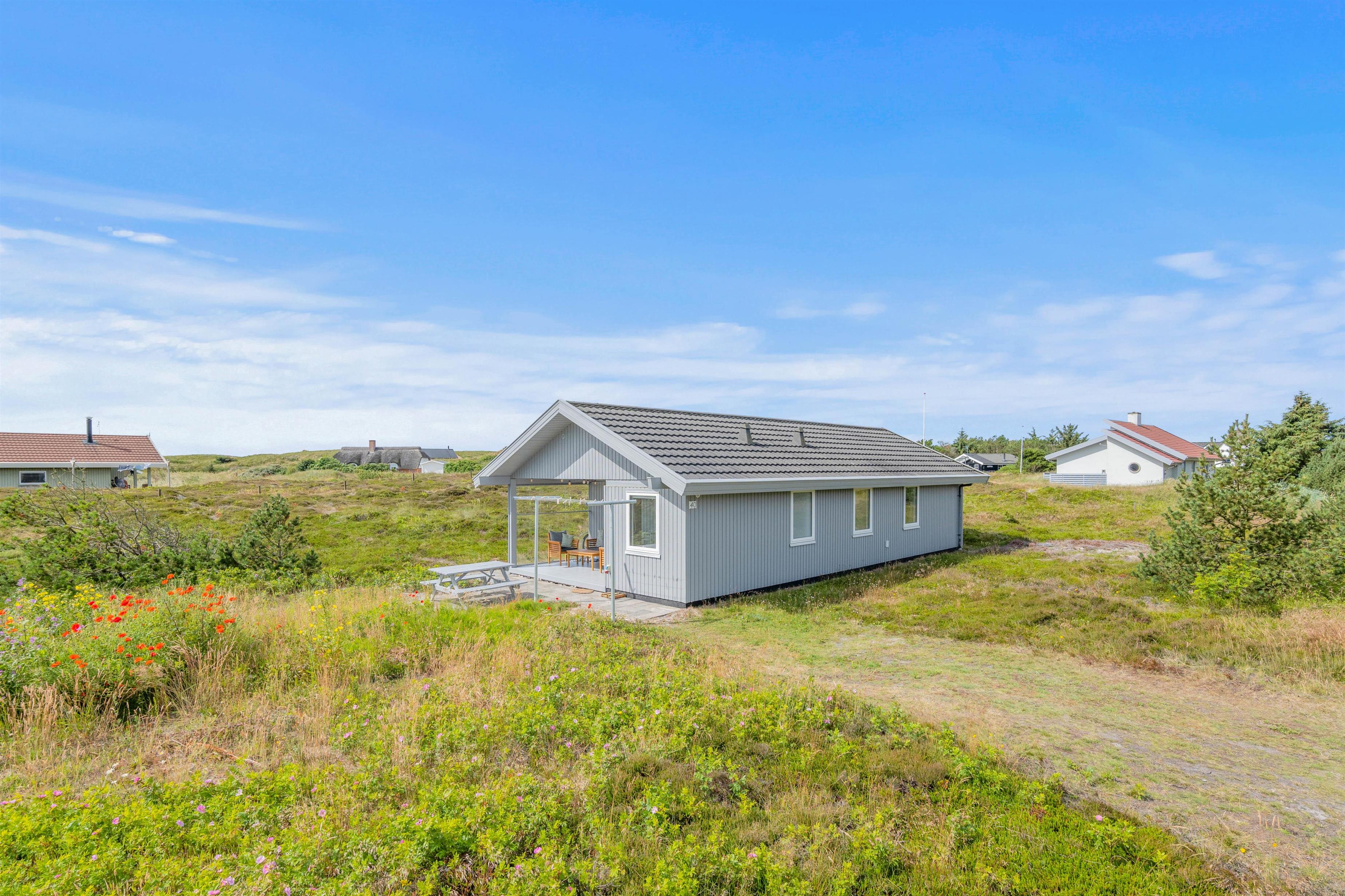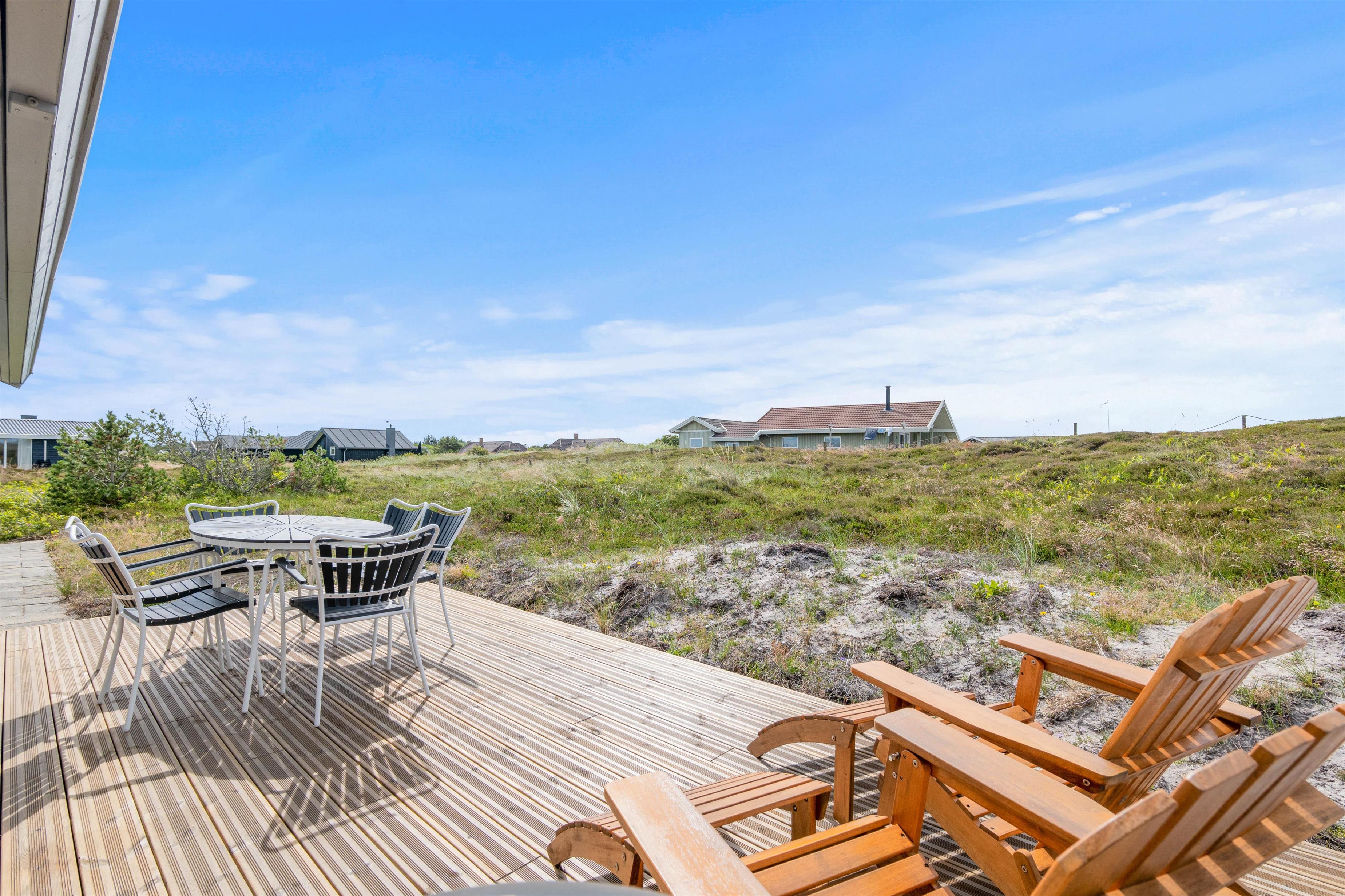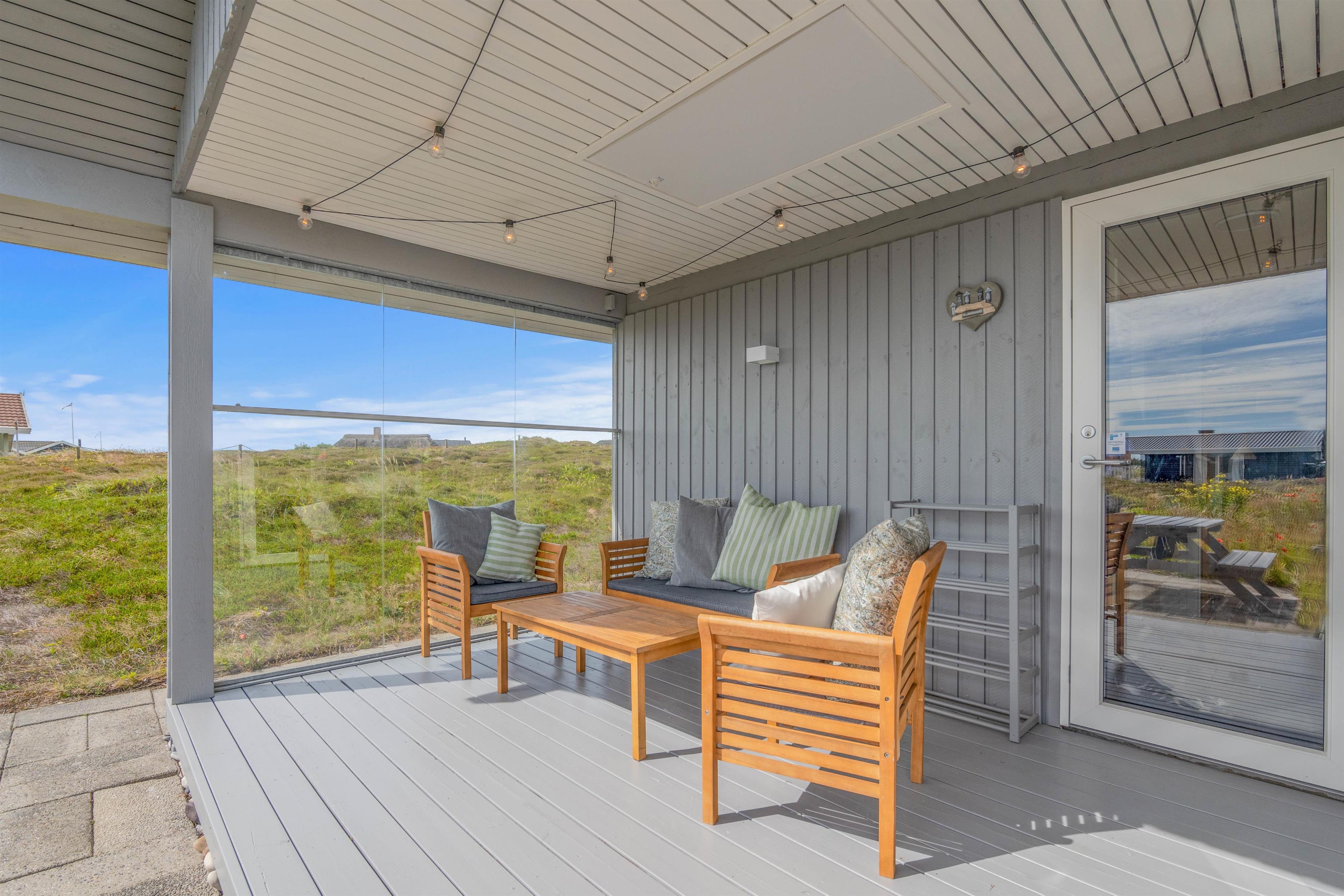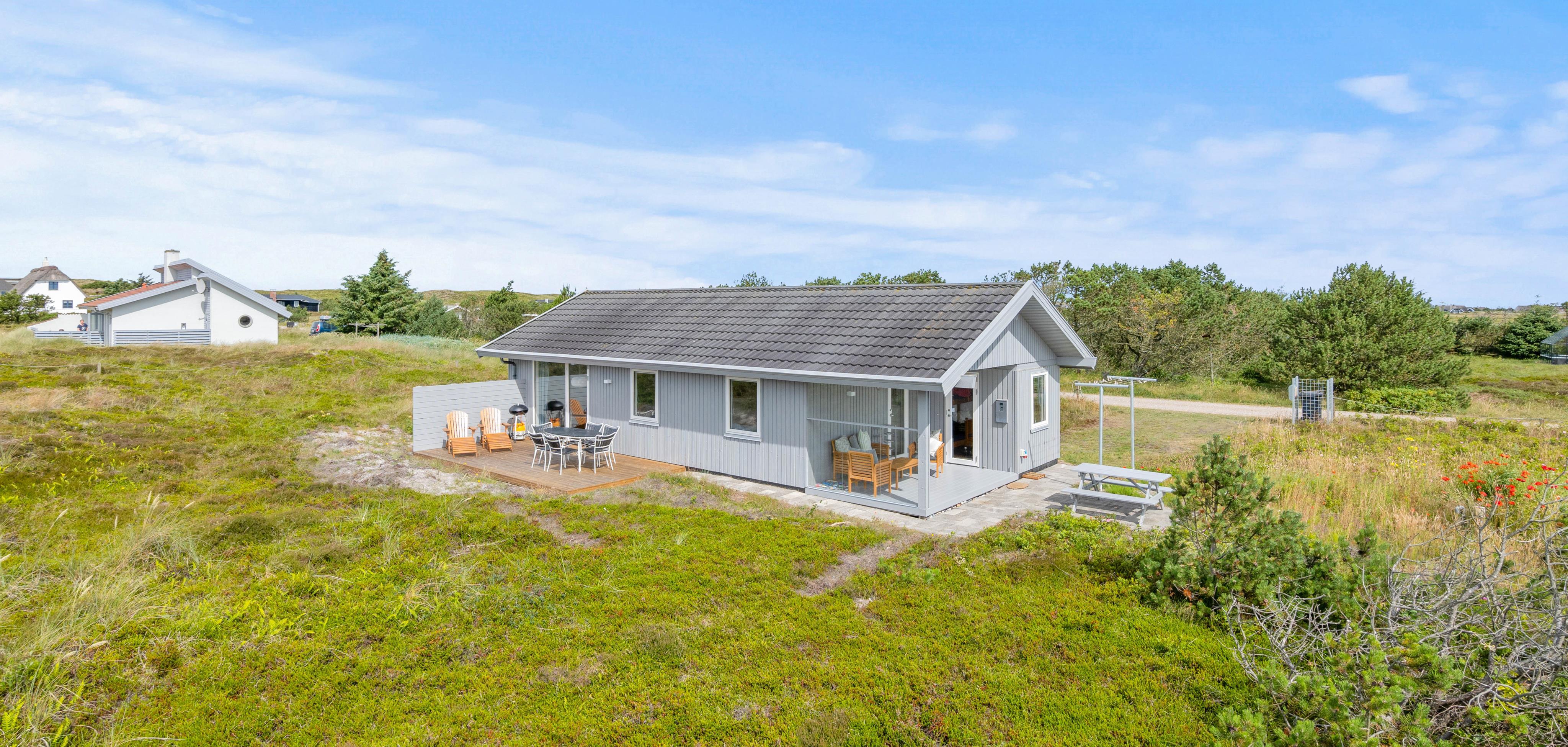 På det udendørs område ved det hyggelige sommerhus indbyder grillen og de komfortable havemøbler til en afslappet grillaften, mens solen går ned bag klitterne og afslutter den begivenhedsrige dag. Terrassen er delvist afskærmet, så I kan sidde i læ for vinden.
