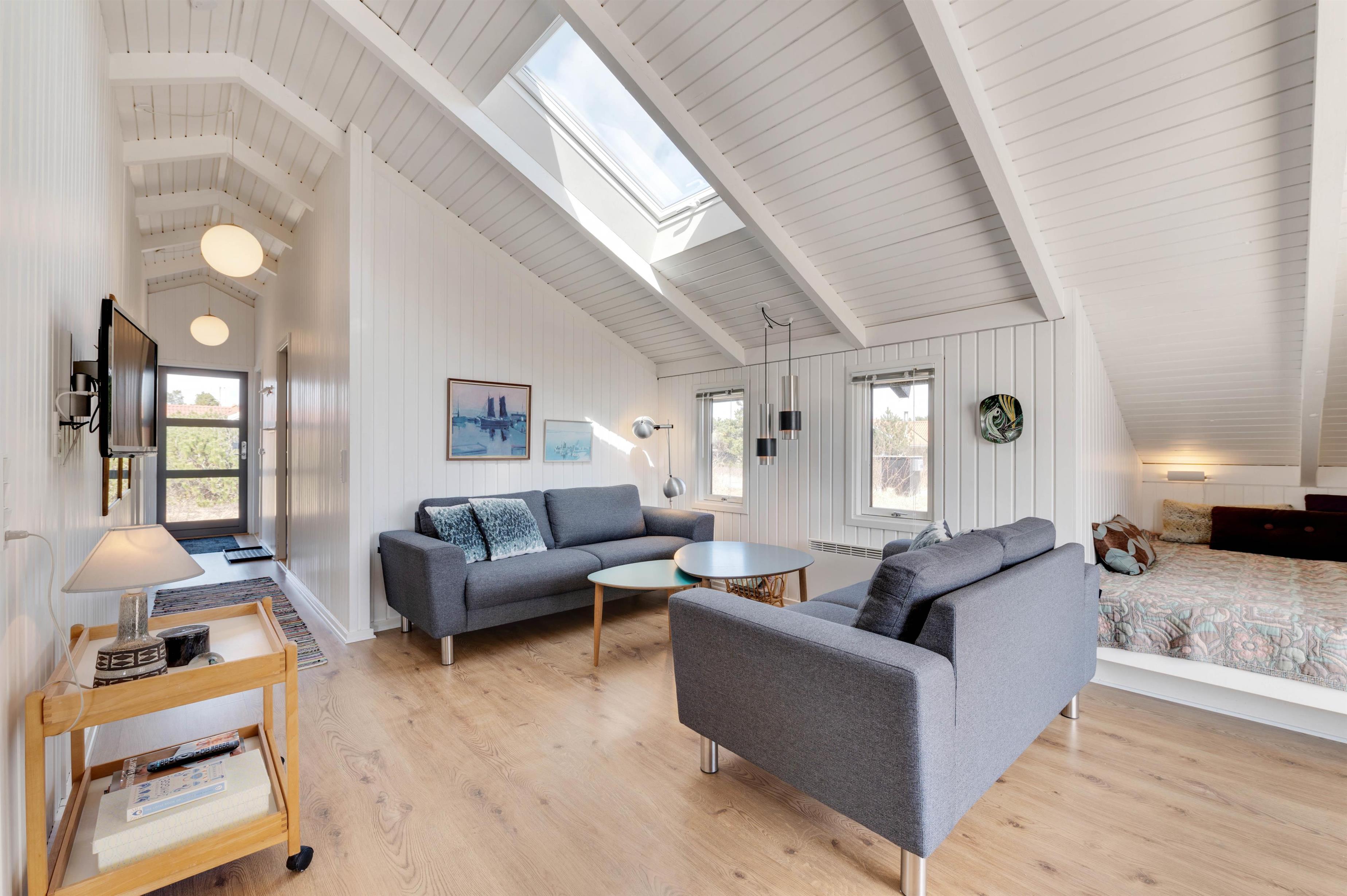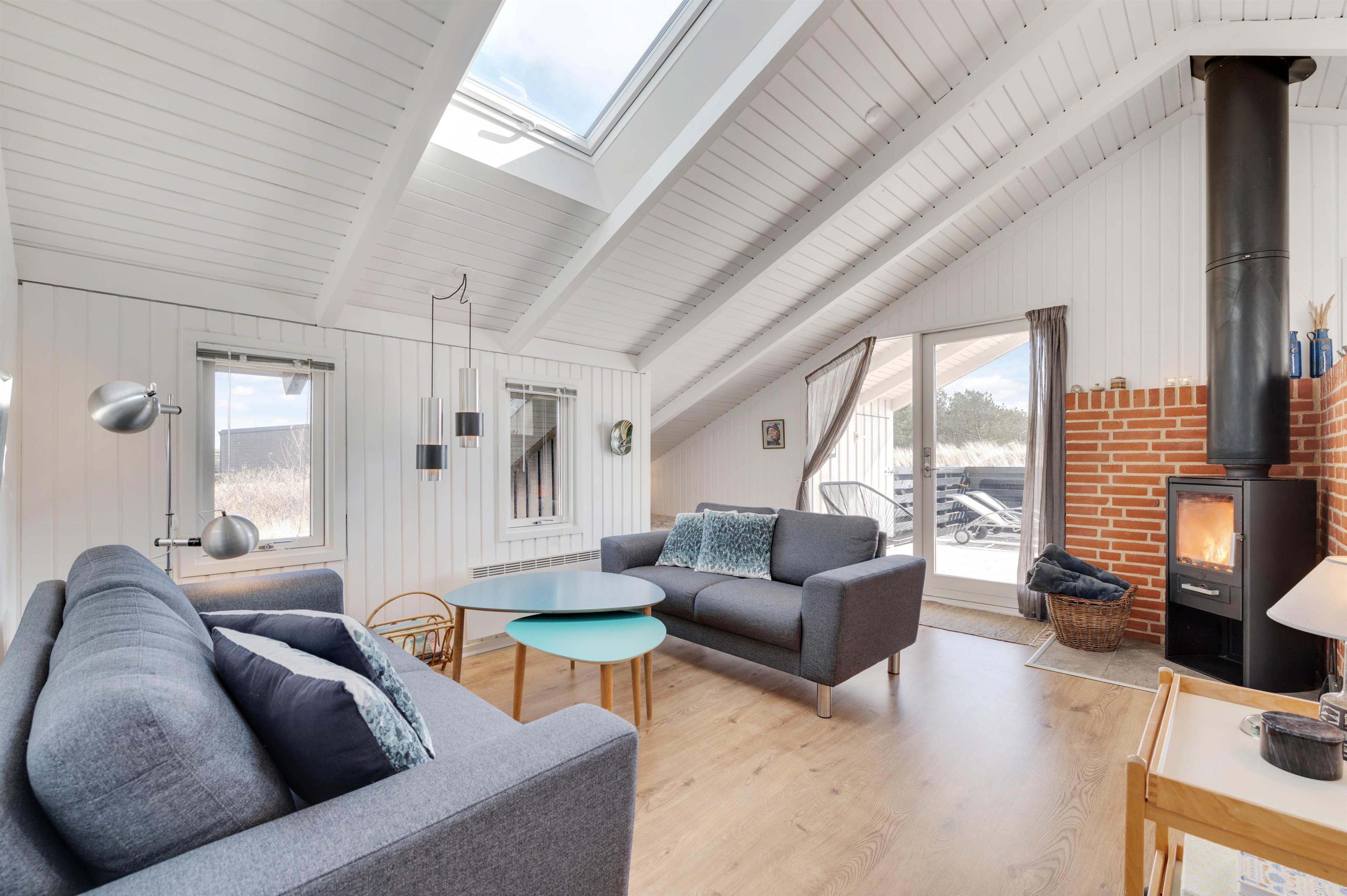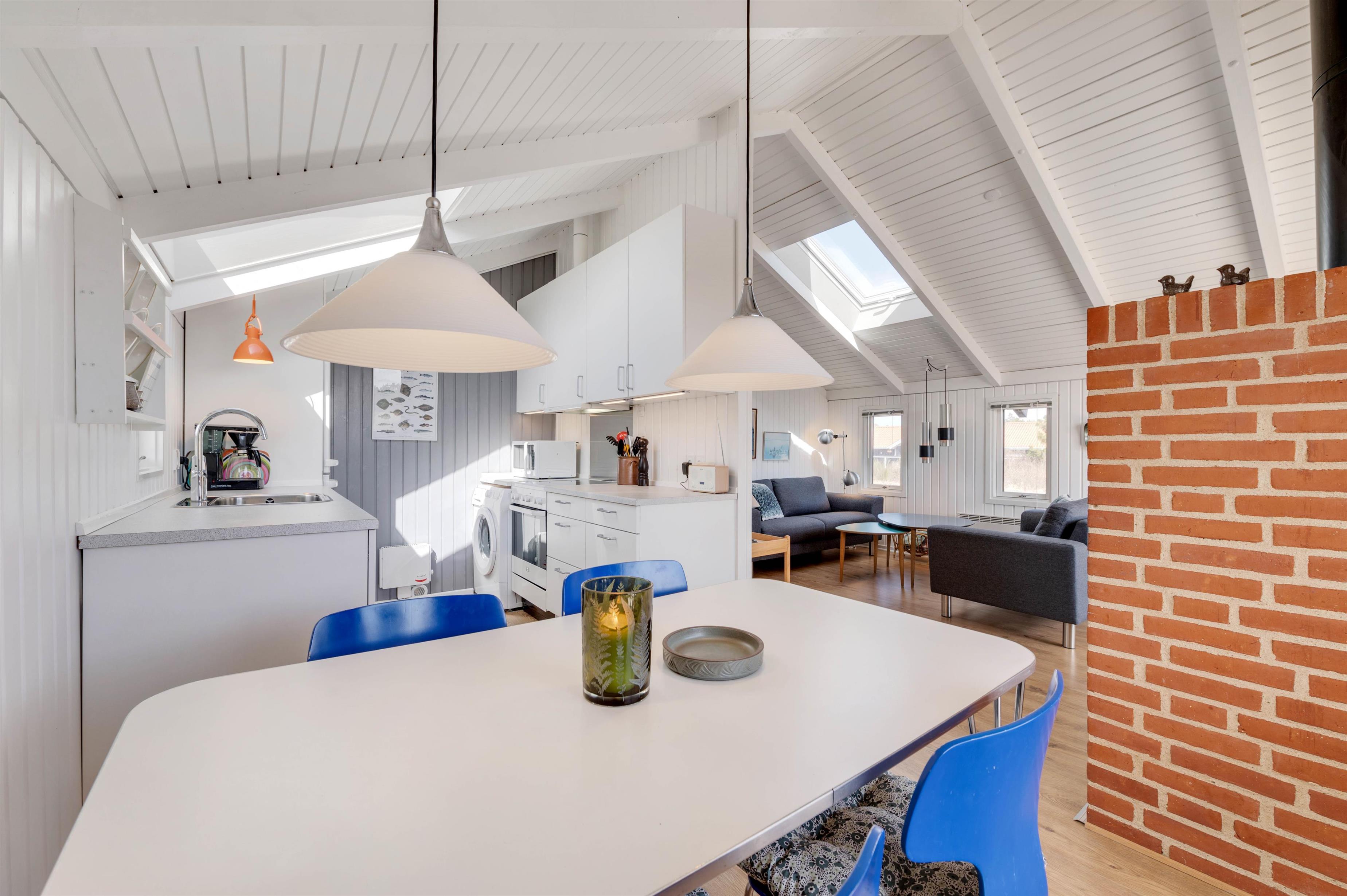 Sommerhuset er hyggeligt indrettet og her er plads til at være sammen med familien på en anden måde end i hverdagen. Stue, køkken og spiseafdeling er i åben forbindelse og dermed et naturligt samlingspunkt, hvor der kan hygges med fælles madlavning, filmaftener, sjove spil eller noget helt andet.