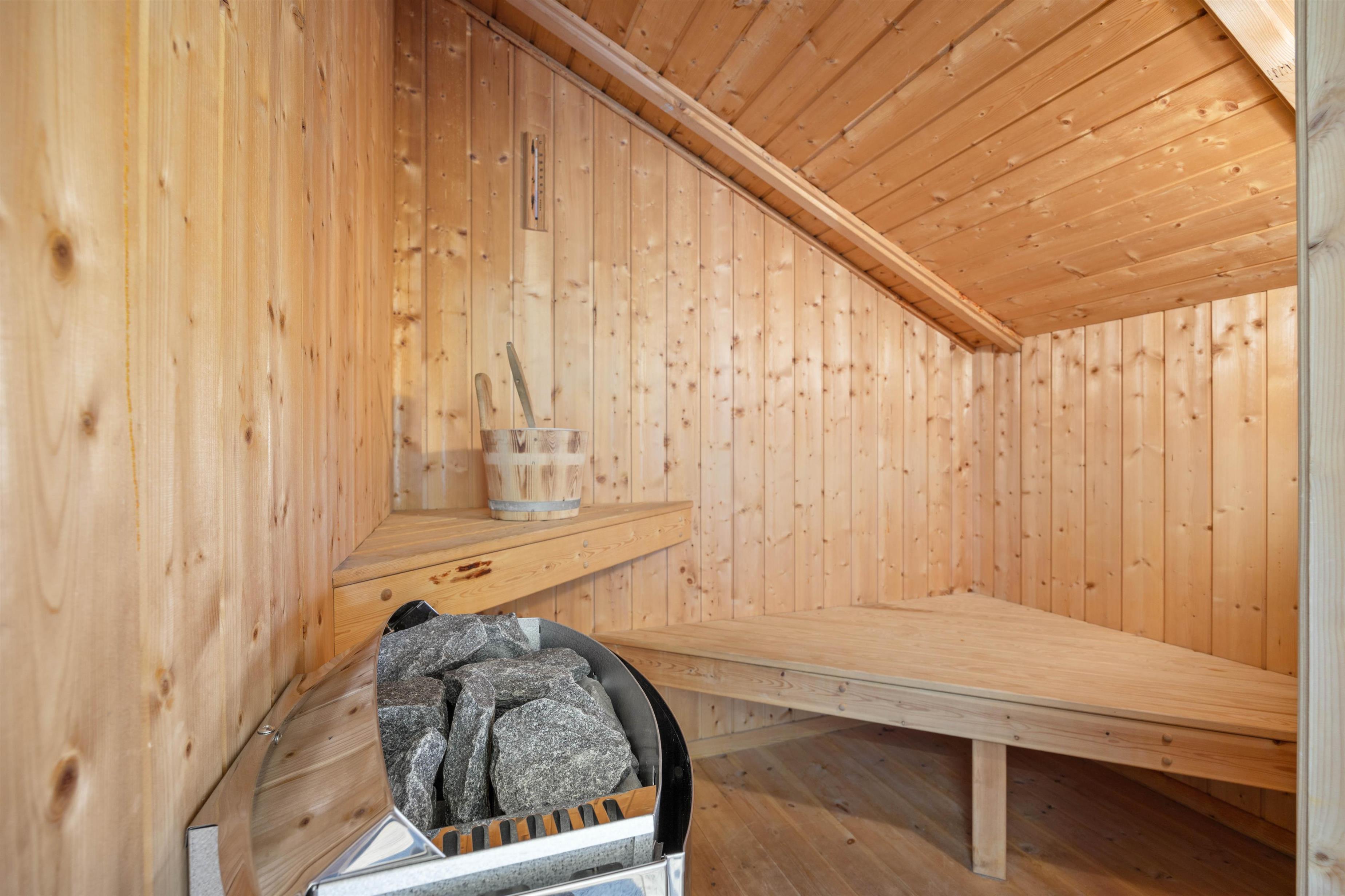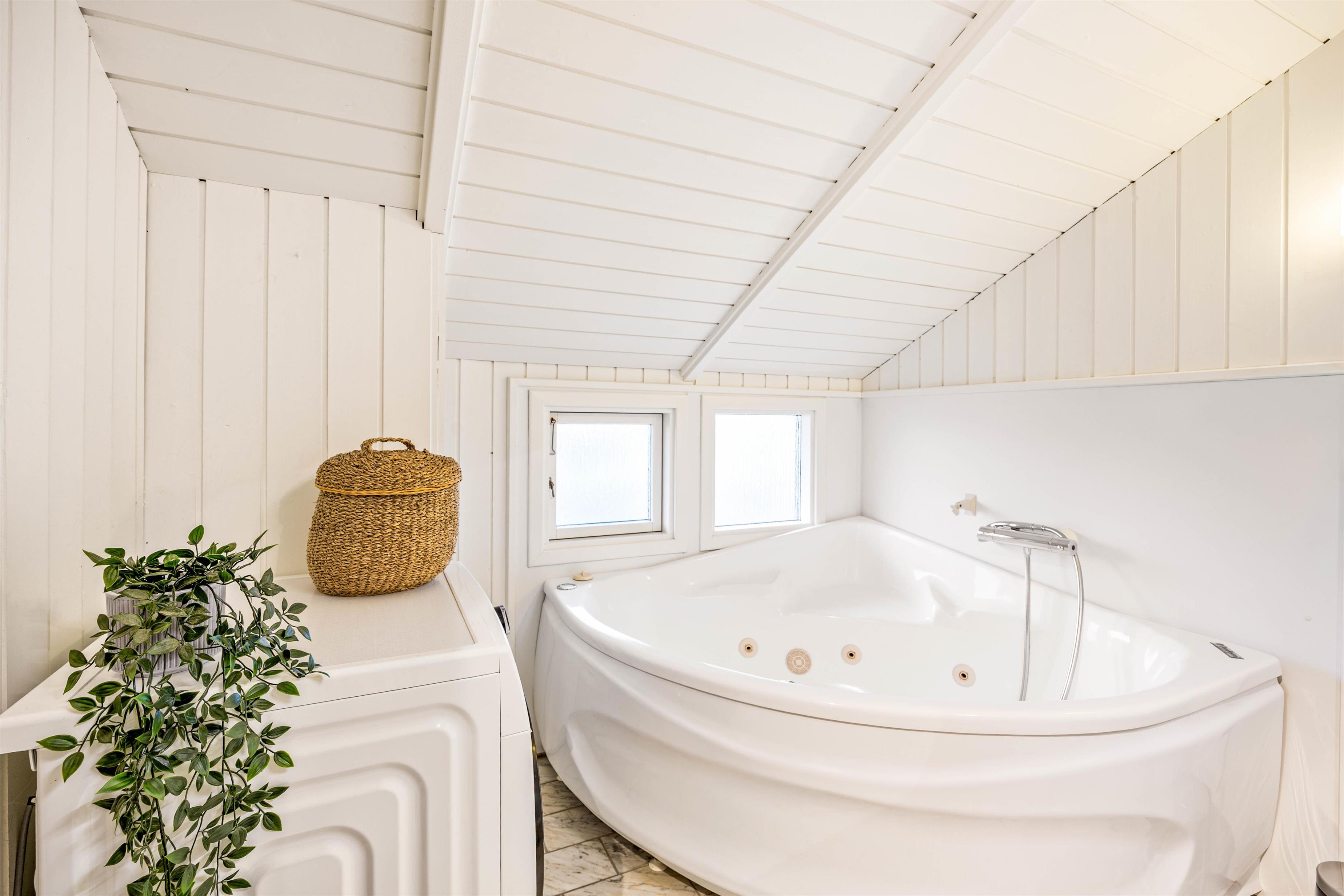 Udover at slappe af på sofaen, har I her mulighed for at forkæle jer selv med lidt luksus, hvor den står på wellness og afslapning i sommerhusets badeværelse. Her er sauna til rådighed til omfattende saunagus og efterfølgende kan I også slappe af i det boblende varme vand i spaen, mens I får ladet batterierne op langt væk fra hverdagen.