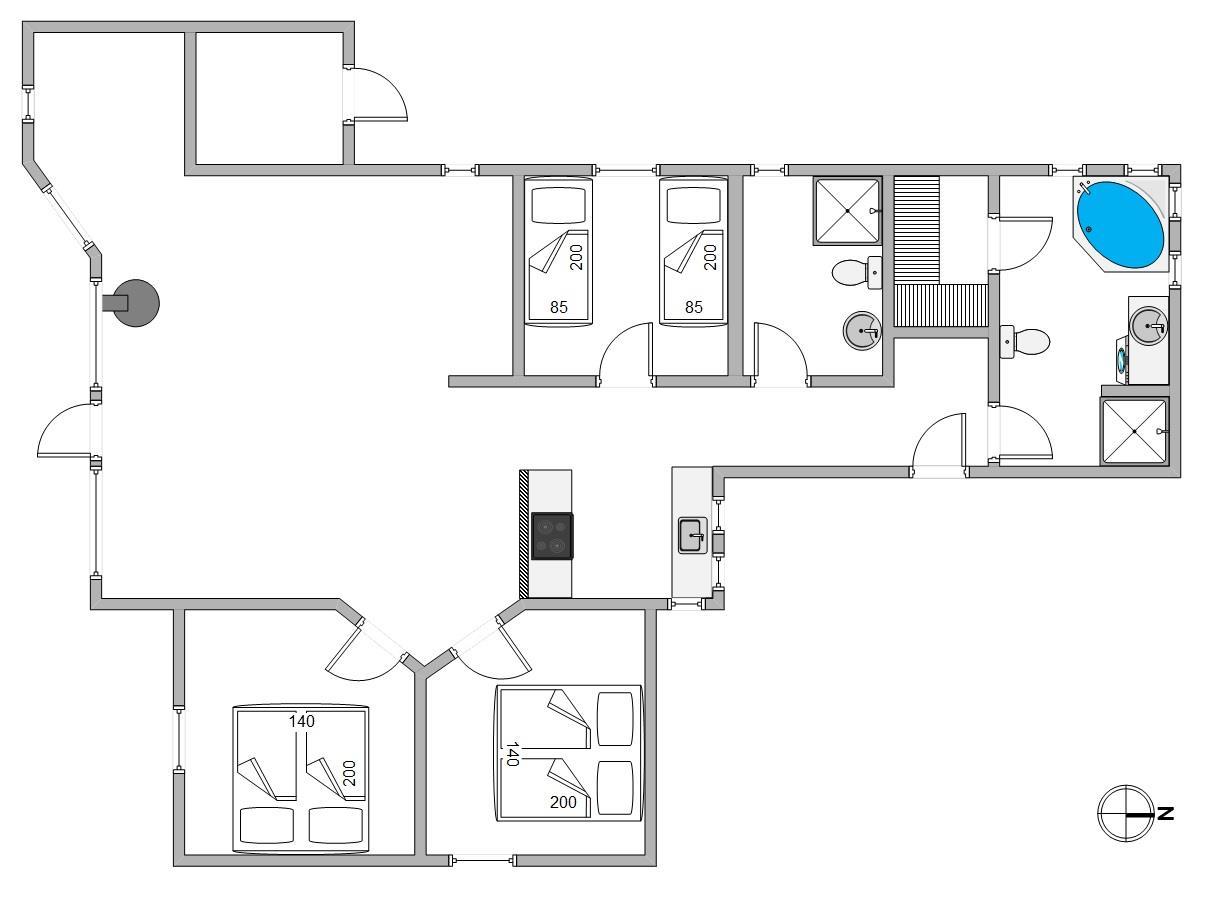 De 3 soveværelser har gode senge, og her er også 2 badeværelser med gulvvarme. Et af dem er indrettet med spa og sauna, hvor I rigtig kan slappe af og nyde jeres velfortjente ferie. Derudover er der vaskemaskine i sommerhuset, så I har mulighed for at vaske lidt tøj eller håndklæder.