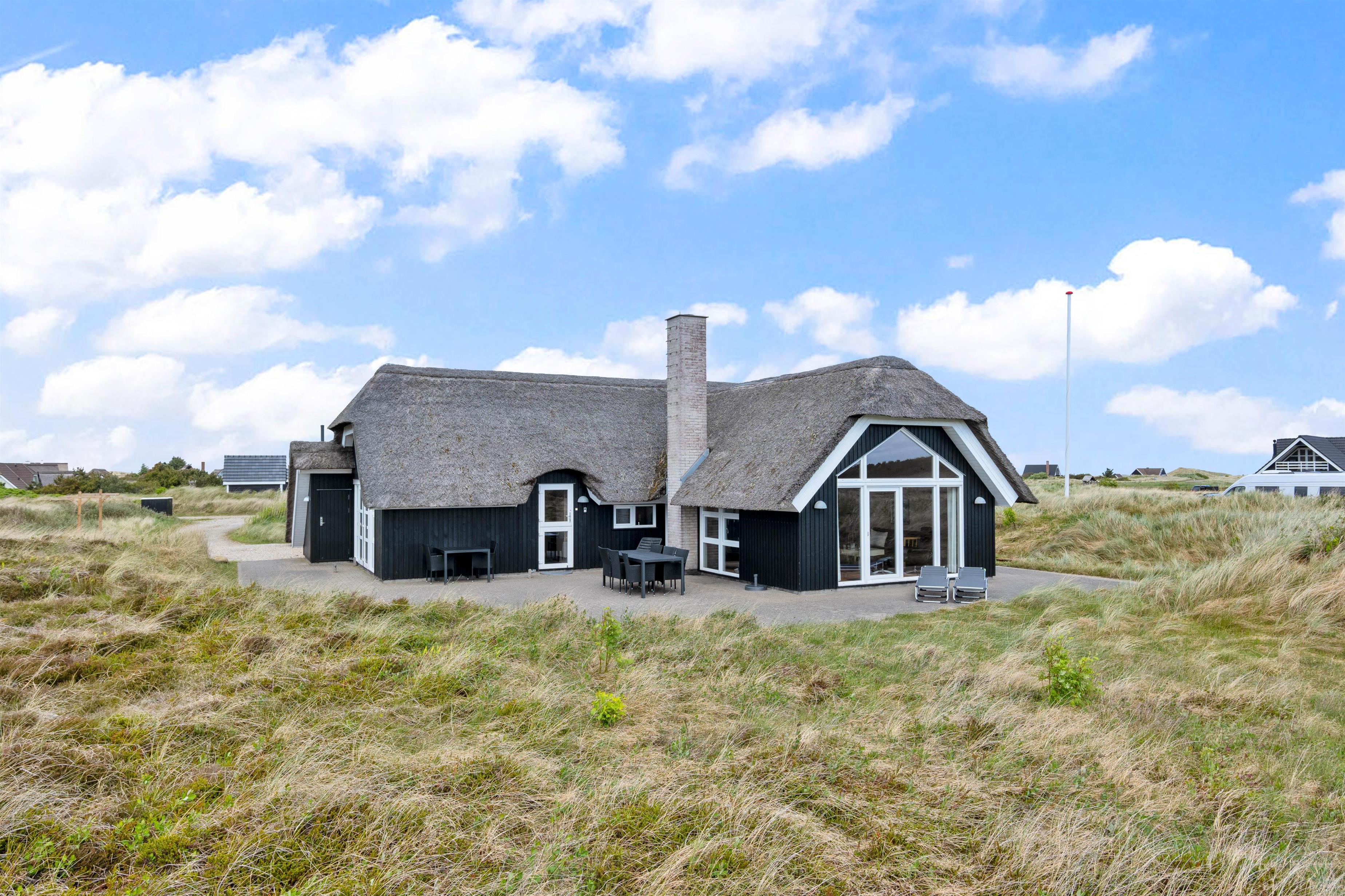 Dette flotte stråtækte sommerhus har en enestående beliggenhed med unik panoramaudsigt ud over det storslåede hede- og klitlandskab. Stedet er ideelt for jer, der elsker naturen og den friske vesterhavsluft.