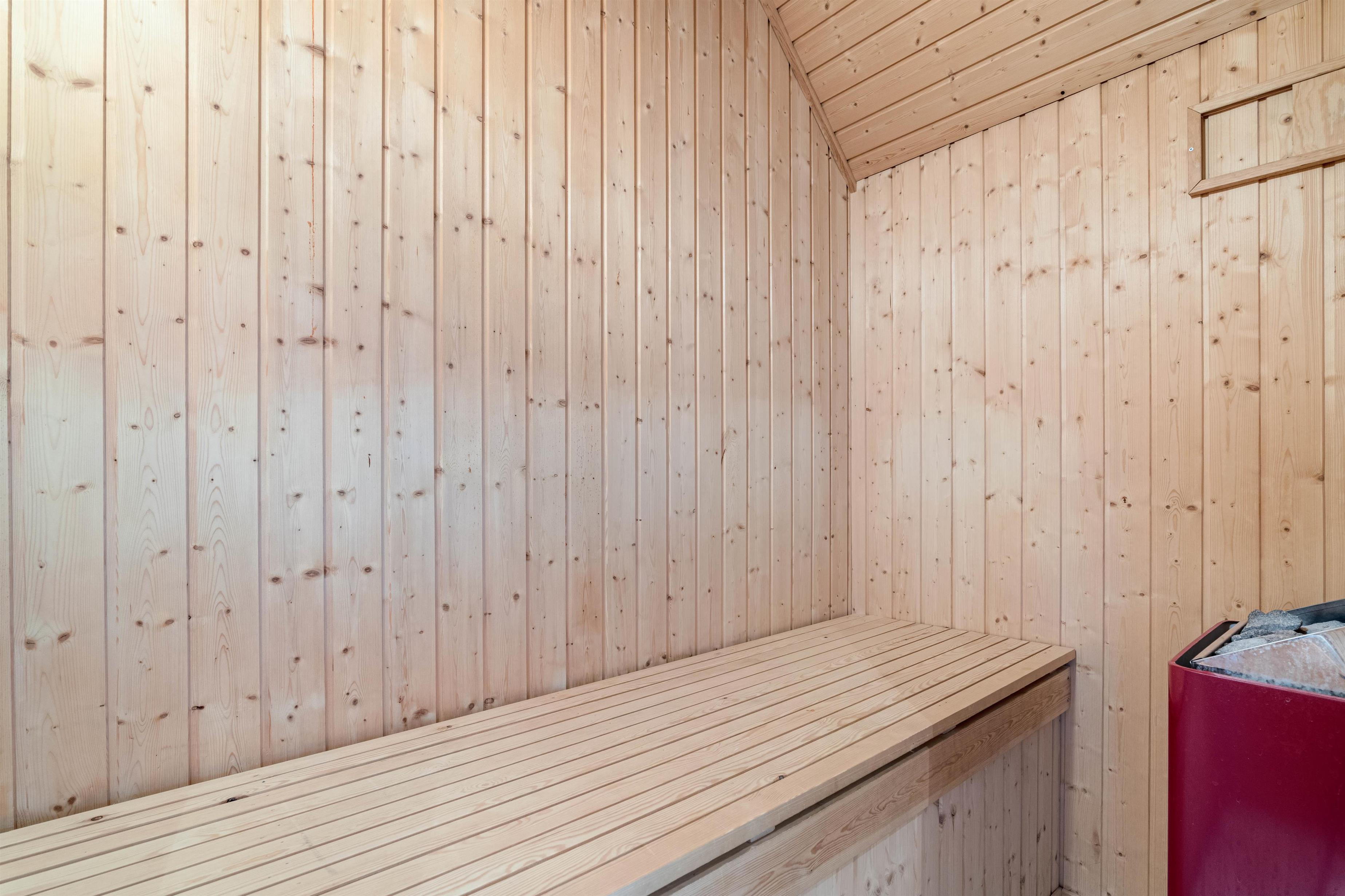Huset har et stort badeværelse med selvstændig bruser, sauna og spa samt vaskemaskine og tørretumbler. Derudover et mindre badeværelse med toilet og håndvask.