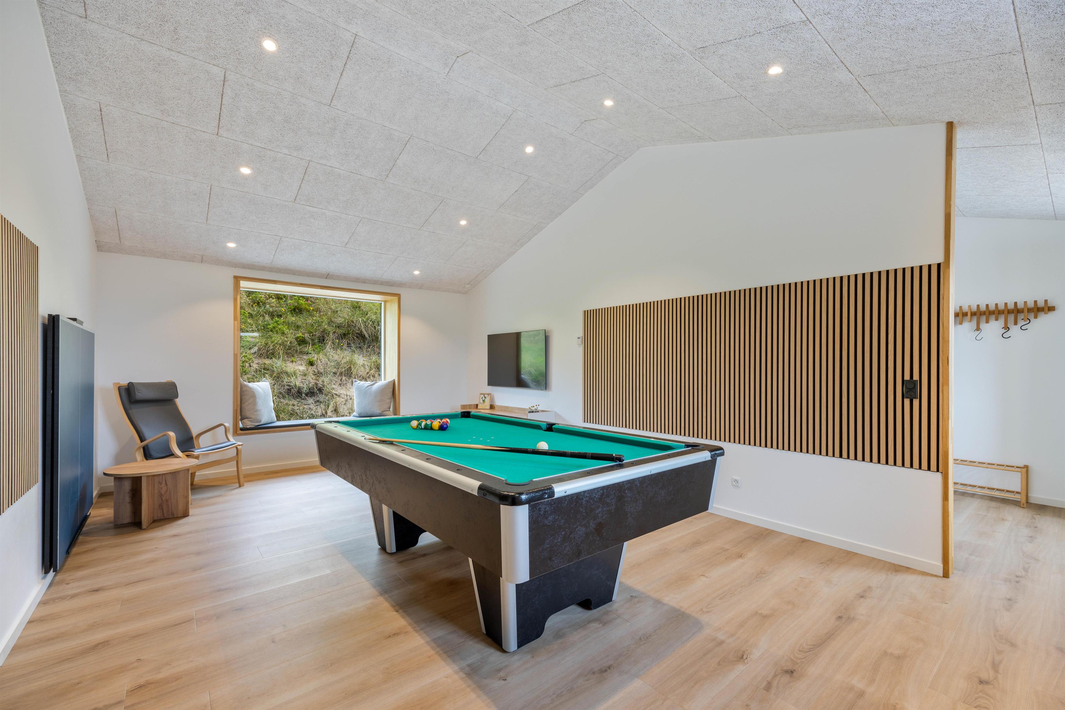 Dette skønne aktivitetssommerhus byder på masser af luksus og aktiviteter. Her bydes både på pool billard og bordtennis, til stor fornøjelse for store og små.