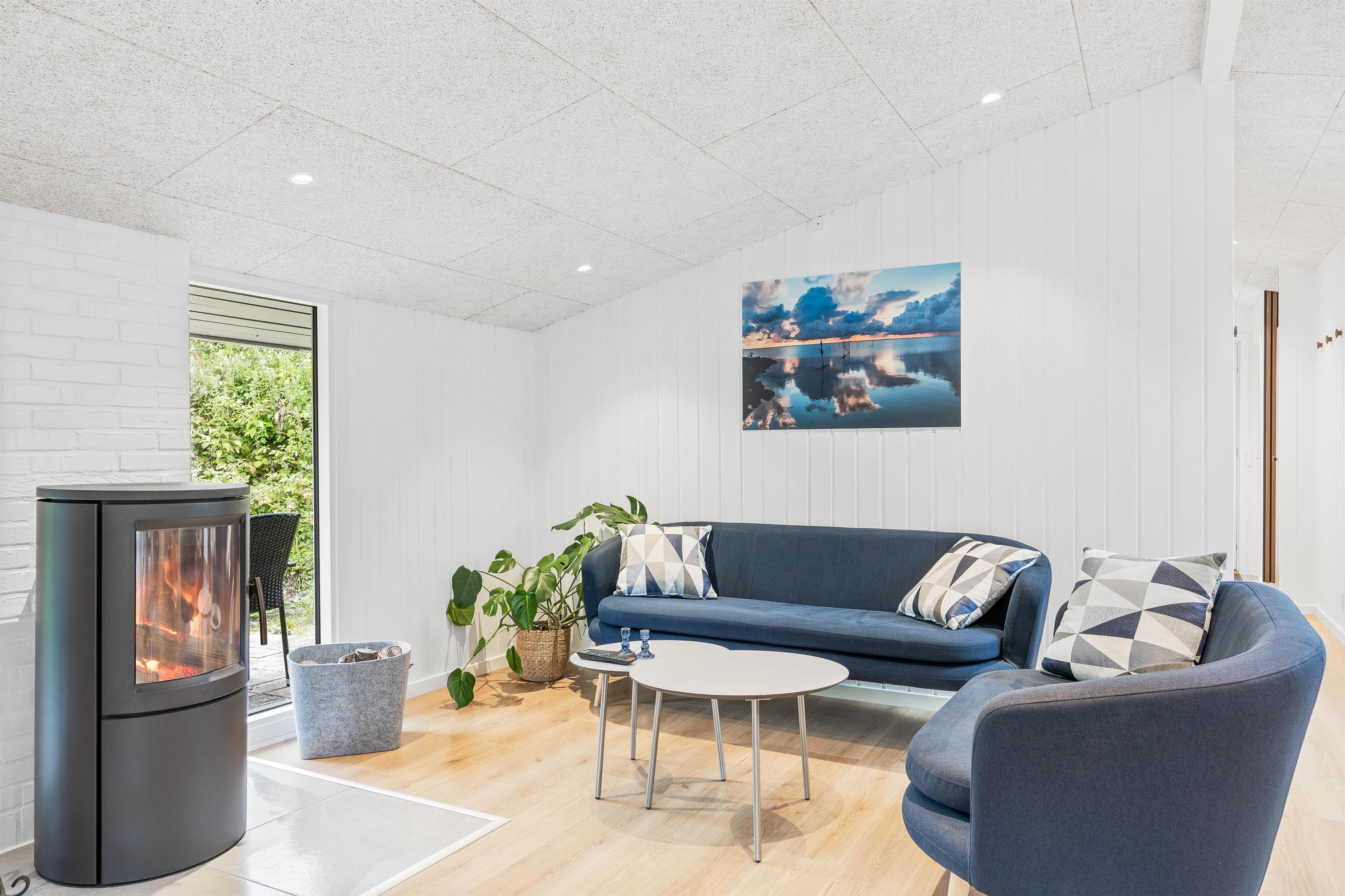 Træd ind i feriehuset, og I vil straks bemærke brændeovnen i stuen, der skaber en varm og indbydende atmosfære på kølige aftener, mens varmepumpen sørger for en behagelig temperatur året rundt.