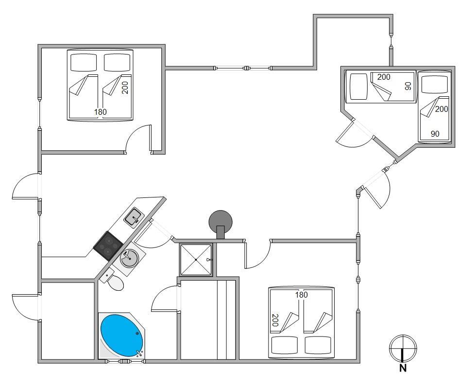 Efter en lang gåtur på stranden kan I blive gennemvarme i saunaen eller tage et langt ophold i spabadet. På grund af deres indbyrdes placering og den praktiske indretning af de 3 soveværelser kan man til hver en tid trække sig tilbage og hvile ud i fred. Der er 2 soveværelser med komfortable dobbeltsenge og et soveværelse med 2 enkeltsenge.