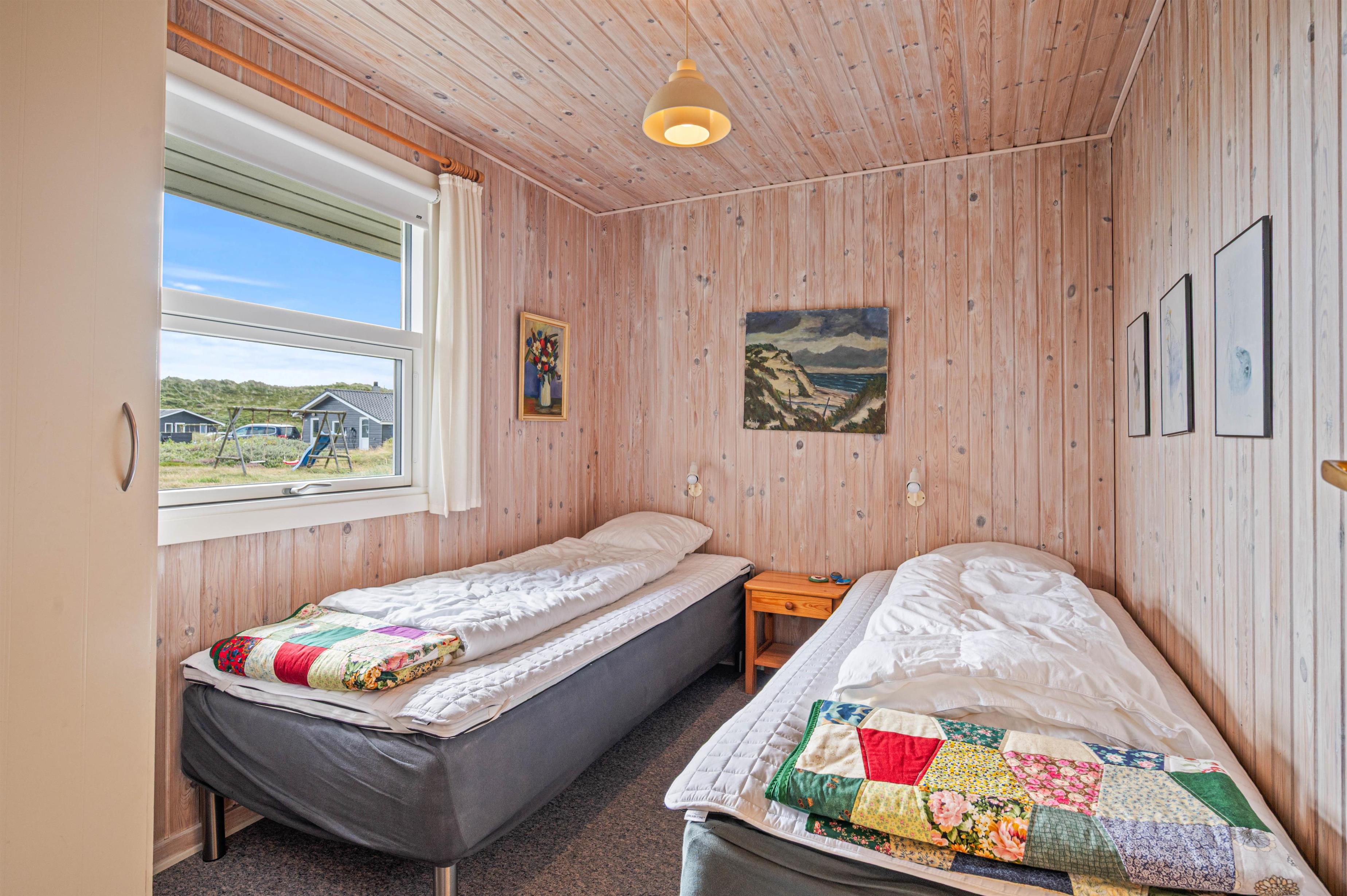 Der er 3 gode soveværelser i sommerhuset. Heraf er der et med en dobbeltseng, mens de andre værelser er indrettet med enkeltsenge.
