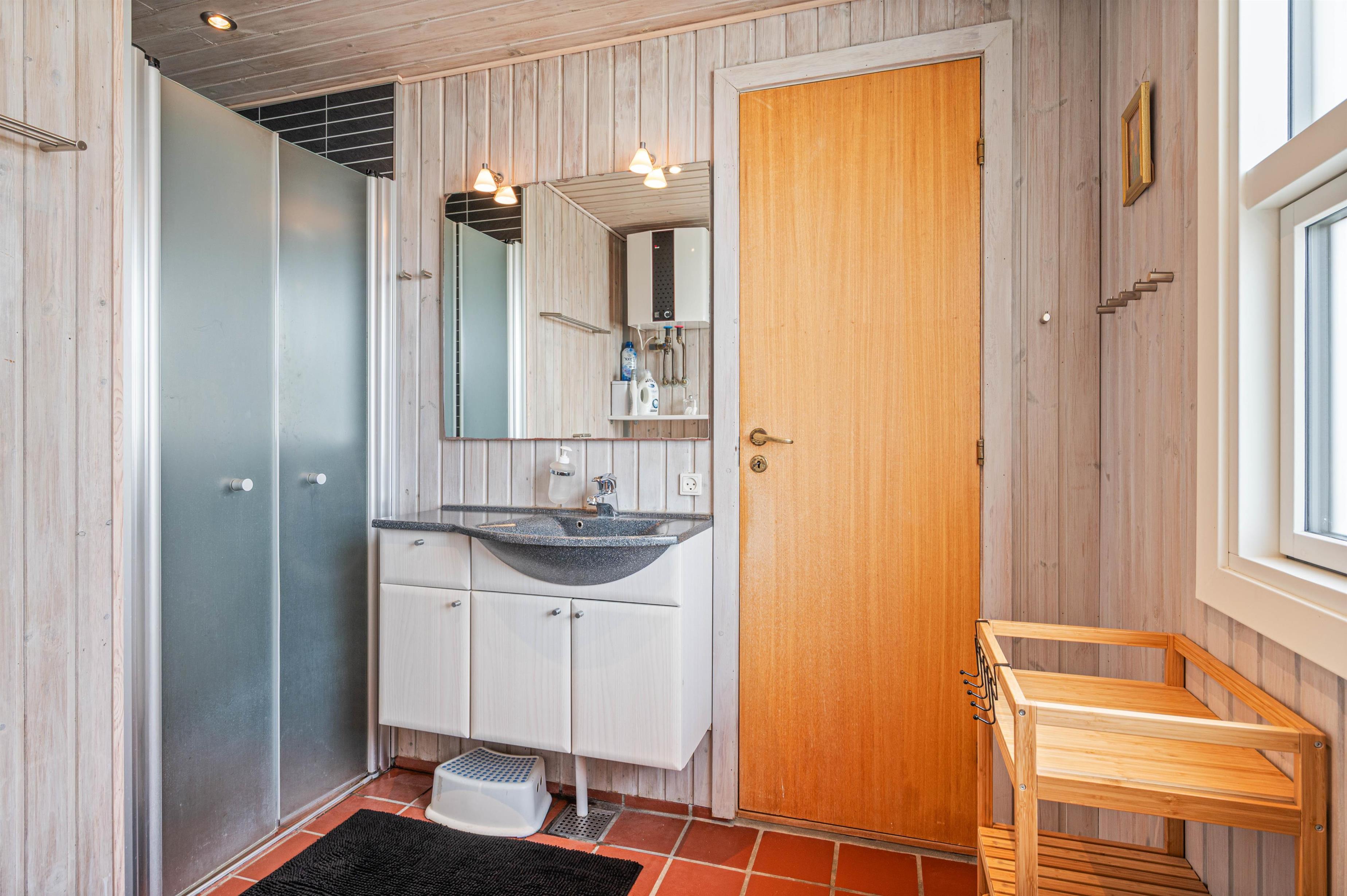 Badeværelset er udstyret med gulvvarme, og her finder I også både vaskemaskine samt tørretumbler.