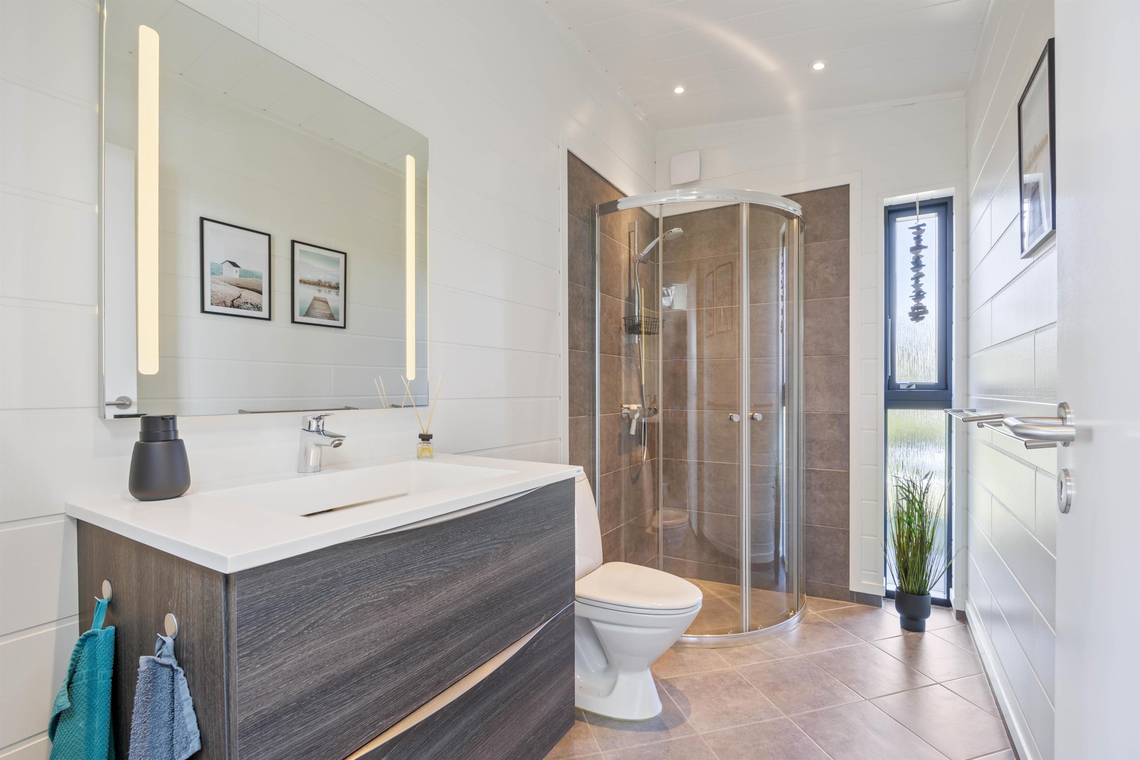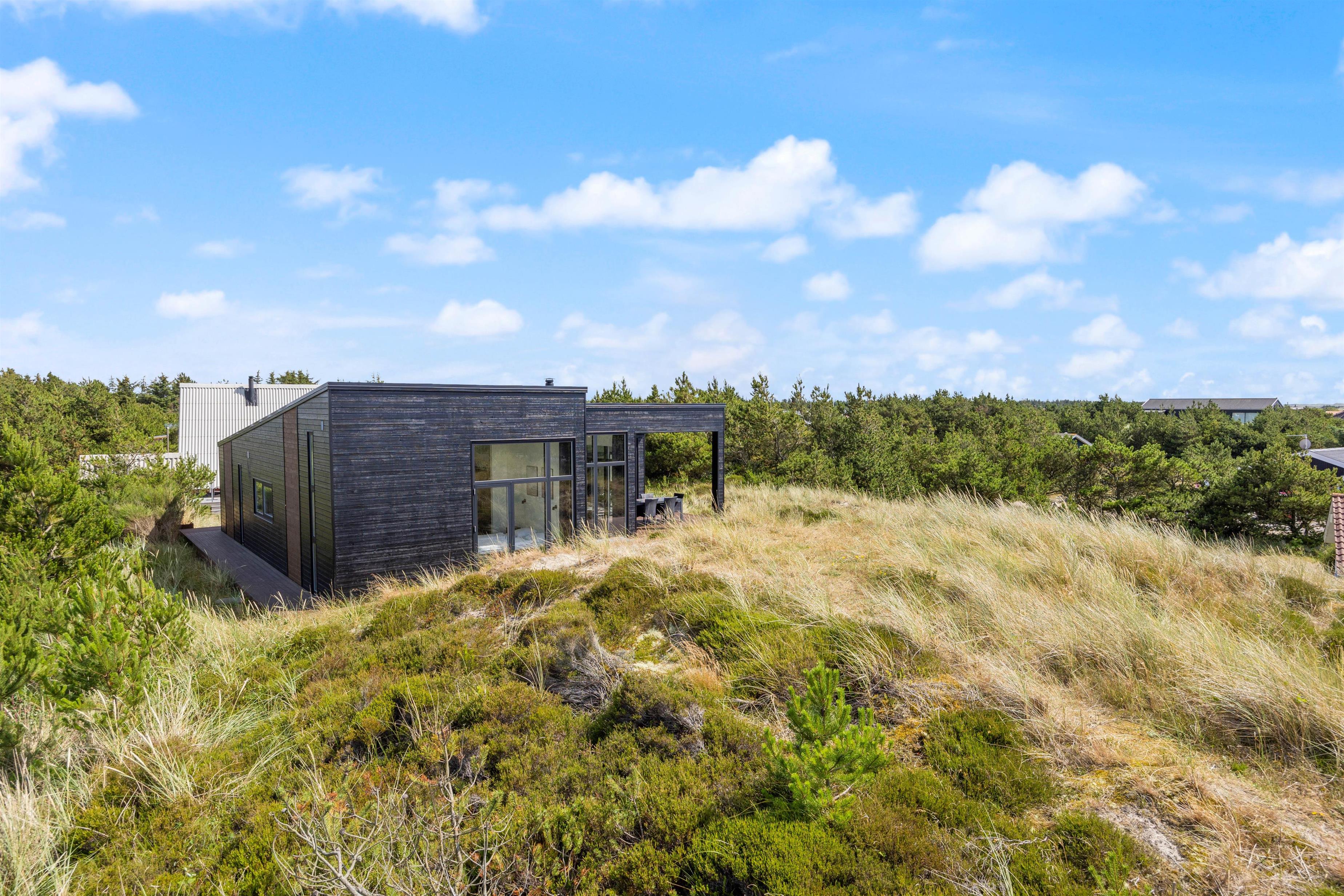 I det store lyse opholdsrum er der indsat store vinduespartier, så den flotte udsigt over ferieområdet kan nydes. Der er også en stor spiseafdeling, 3 gode, lyse soverum med dobbeltsenge, og to badeværelser, så der er fin plads til 6 personer. Og trænger du til lidt ekstra selvforkælelse, kan du nyde et par stunder i saunaen og spaen efter en lang gåtur ved det brusende Vesterhav.