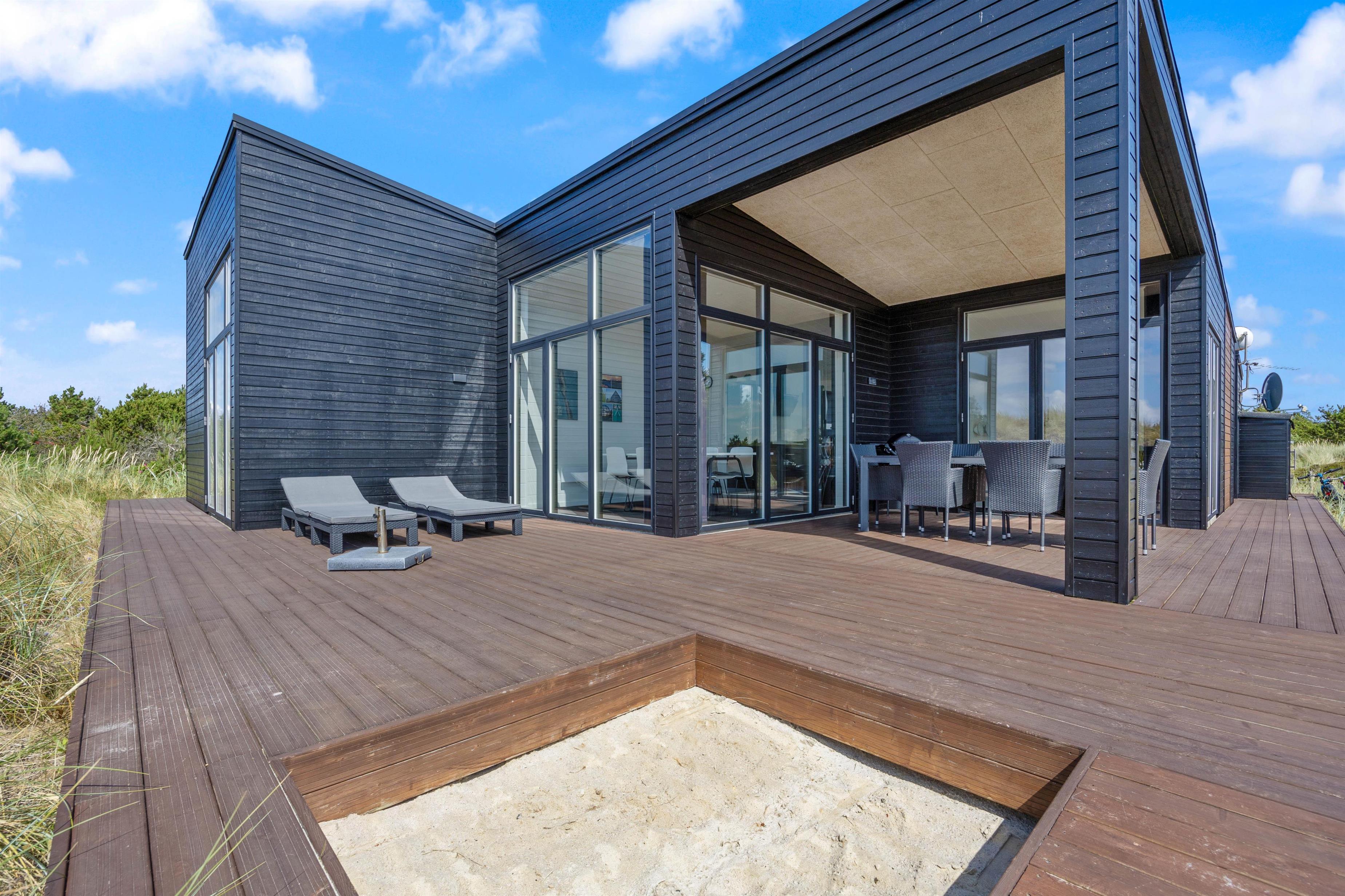 Feriehuset på Bjerregårdsvej 171 ligger forhøjet på en klitgrund, så du har en helt fantastisk panoramaudsigt over klitlandskabet og ferieområdet. Udenfor indbyder den skønne og delvist overdækkede terrasse til solbadning og lange grillaftener. Det er også her, du finder den bedste plads til at nyde de smukke solnedgange.