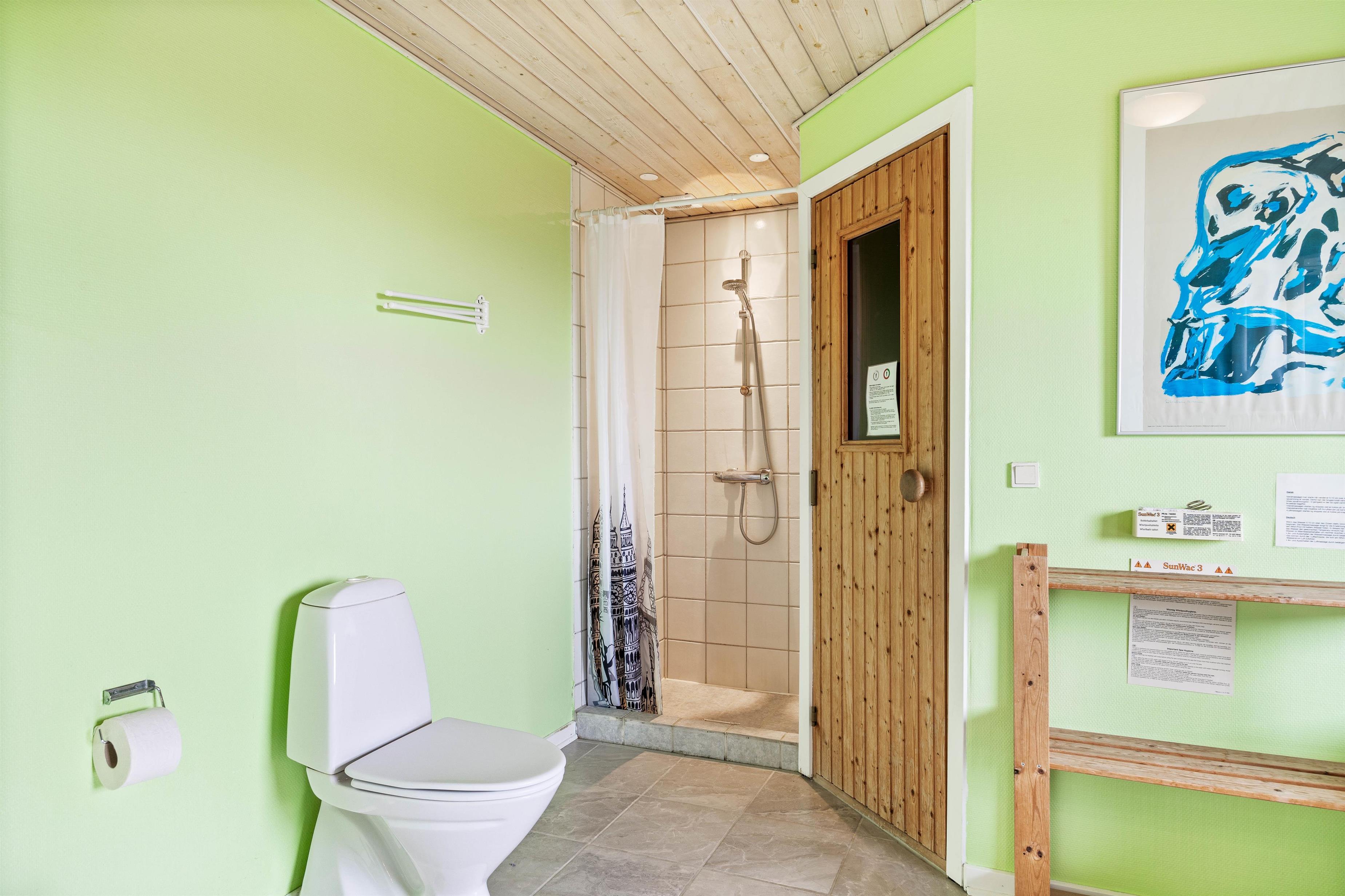 På førstesalen finder I 2 af de alt 5 soverum og 1 badeværelse. De øvrige soverum er fordelt i stueetagen sammen med det lidt større badeværelse, hvor I også finder wellness-afdelingen med spa og sauna. Her kan I fx efter en lang dag i naturen lade jeres ømme muskler massere. Lad jer derefter gennemvarme i saunaen. Dejligt afslappende og rent velvære.