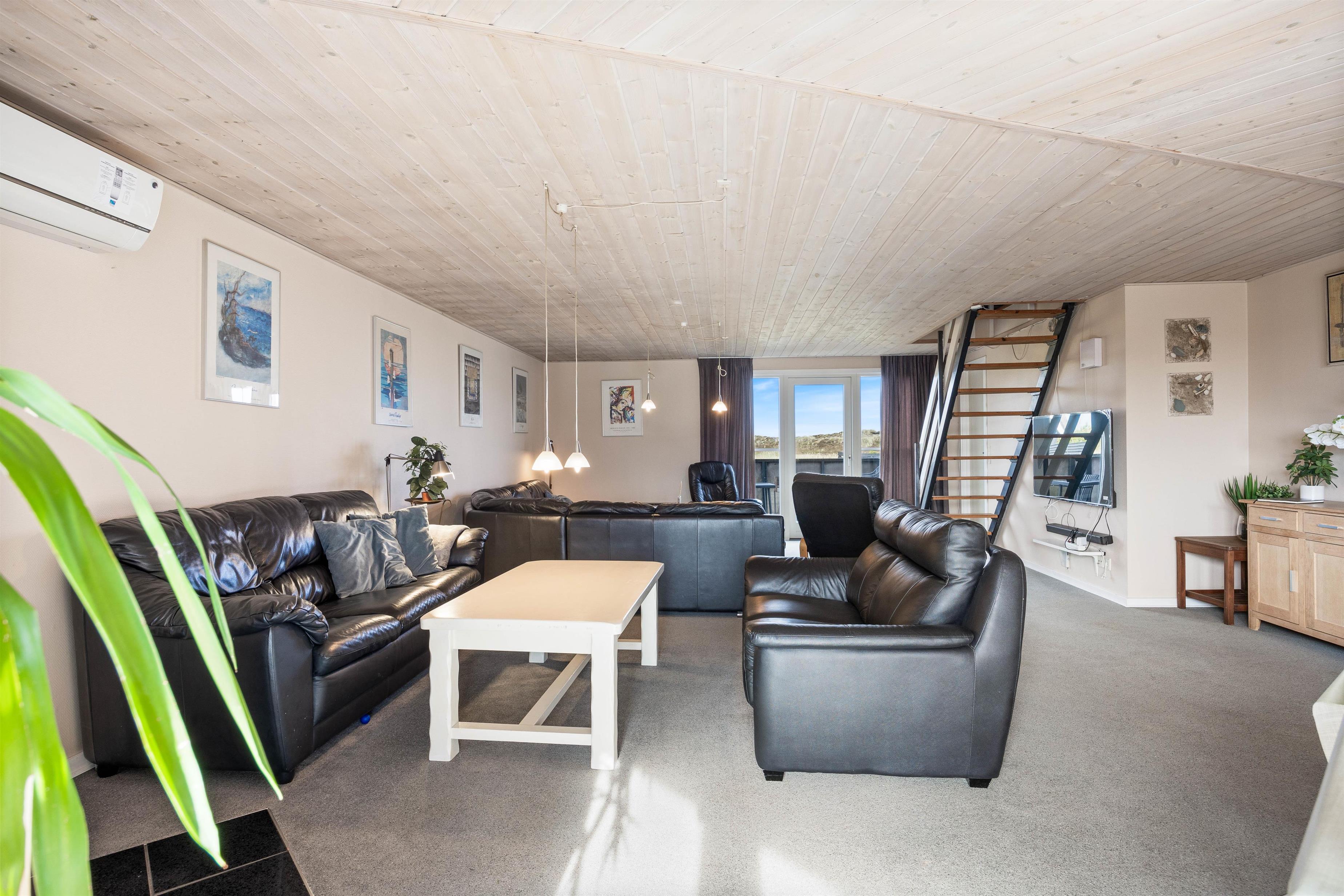 Hjertet i dette store feriehus er opholdsrummet, hvor der er plads til alle. Sofahjørnet indbyder til afslapning foran den knitrende ild i brændeovnen eller til at nyde ynglingsserien på TV’et.
