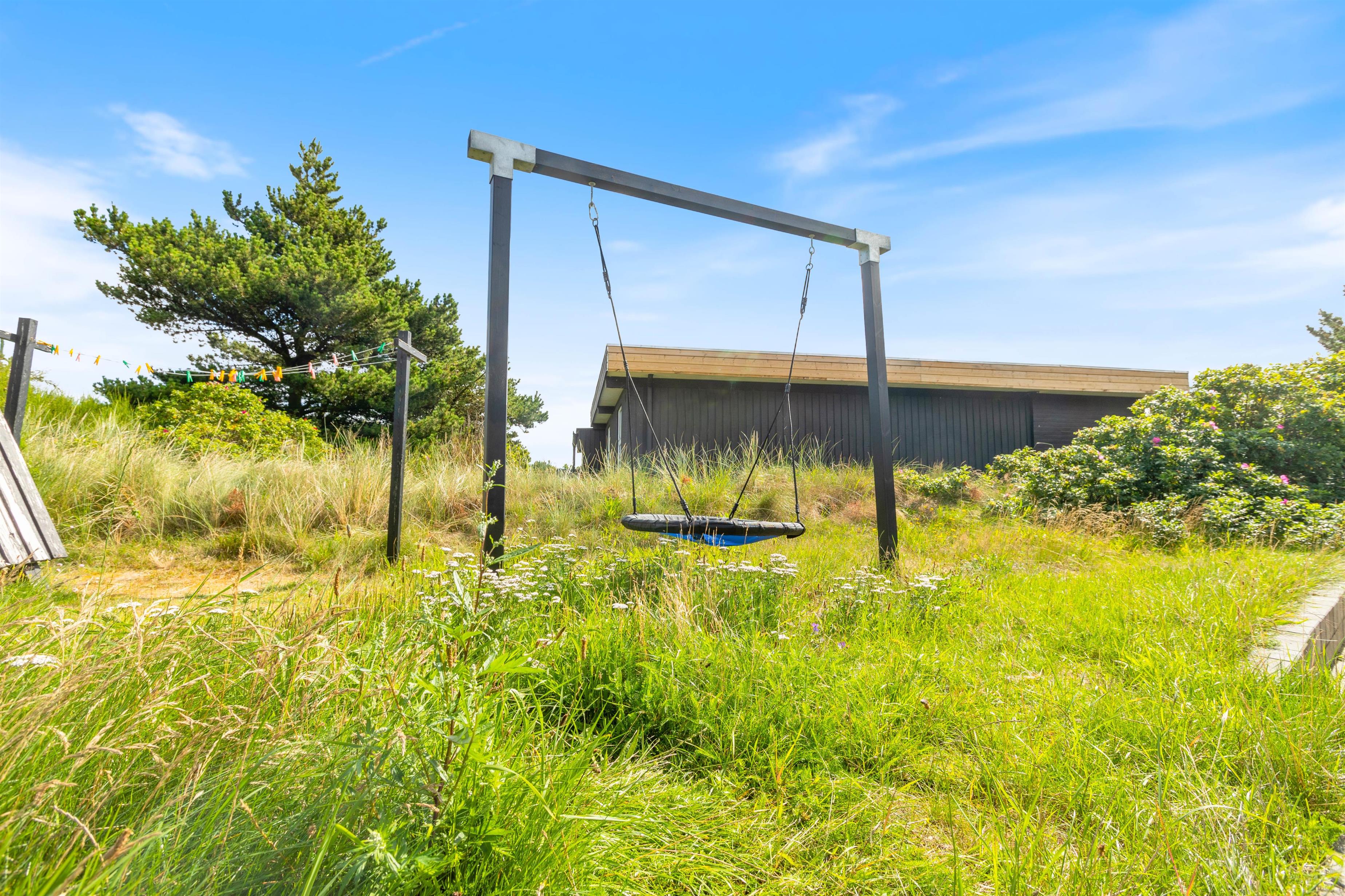 På den 1.200 kvadratmeter store naturgrund omkring sommerhuset er der en gynge og en sandkasse til børnene. Imens de er beskæftiget, kan du slappe af på de komfortable havemøbler og nyde den friske havluft. Bagefter kan I alle spille et kongespil derude. Om aftenen kan I arrangere en fælles BBQ og tilberede en række delikatesser på grillen.