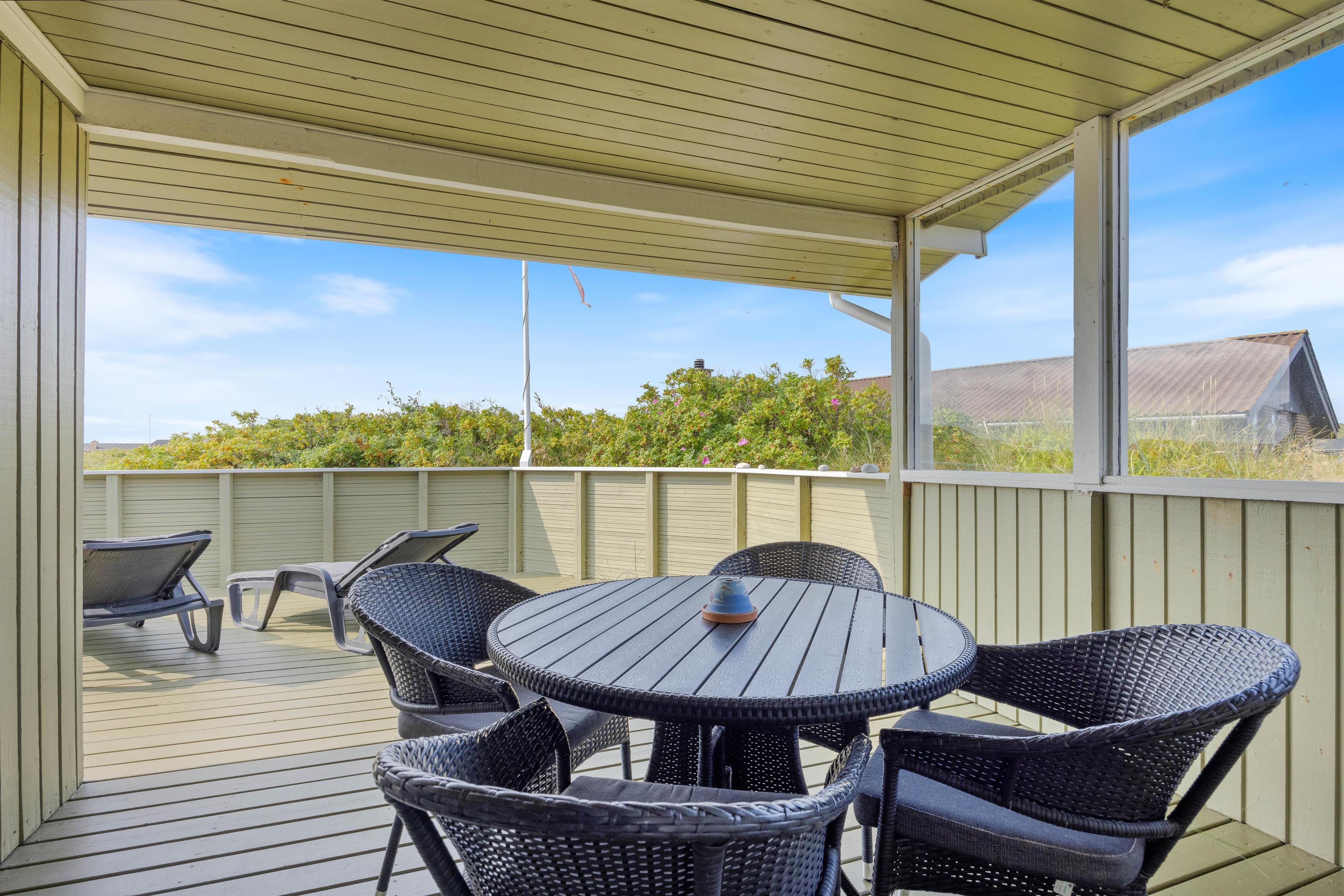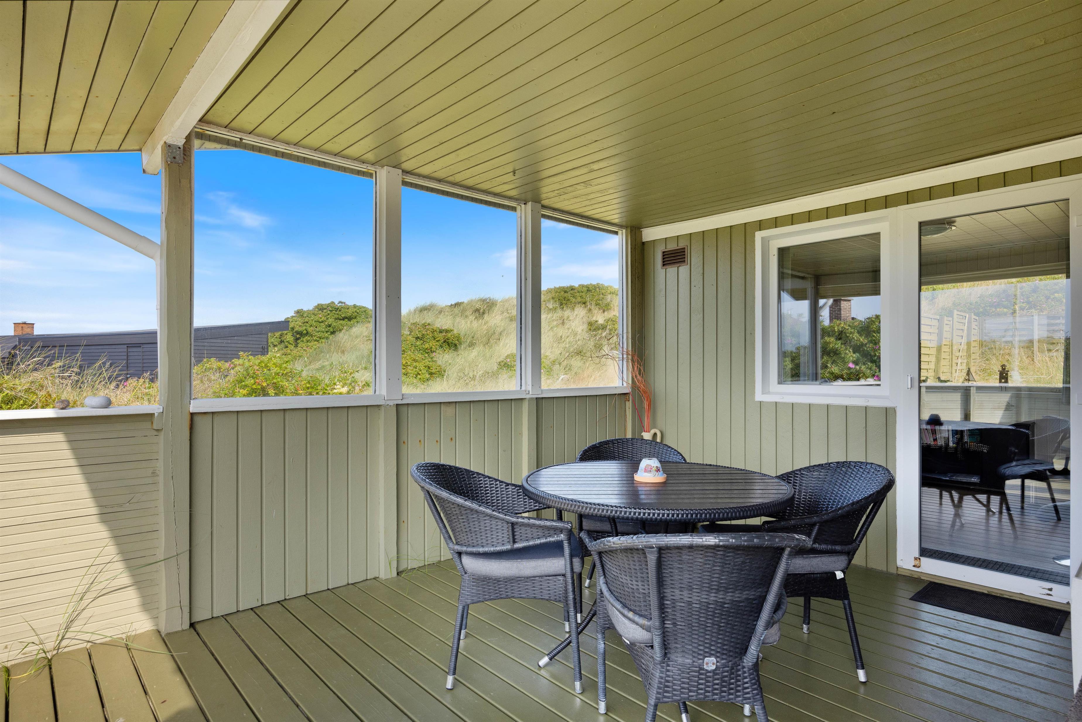 Med kun 250 m til stranden og med den storslåede natur mellem Vesterhavet og Ringkøbing Fjord, er dette feriehus med sin dejlige beliggenhed et oplagt valg for familier eller vennepar, som sætter pris på både fred og ro. På de skønne terrasser kan I nyde solskinstimerne, mens her også er mulighed for hyggelige grillaftener i den friske, salte nordsøluft.