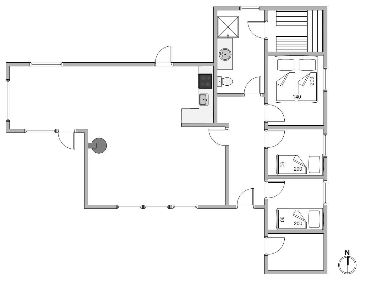 Efter en lang gåtur ved stranden, er der intet bedre end at få slappet helt af – her er saunaen helt fantastisk. Her kan I komme helt ned i gear og glemme hverdagen for en stund. Nyd ferien og sov så længe, I kan. Til formålet venter feriehusets 3 soveværelser, der alle er indrettet med behagelige senge. Det store værelse har 1 dobbeltseng, 140x200, mens de andre 2 er indrettet med en enkeltmandsseng. På alle værelser er der indbygget skabe med mulighed for opbevaring.