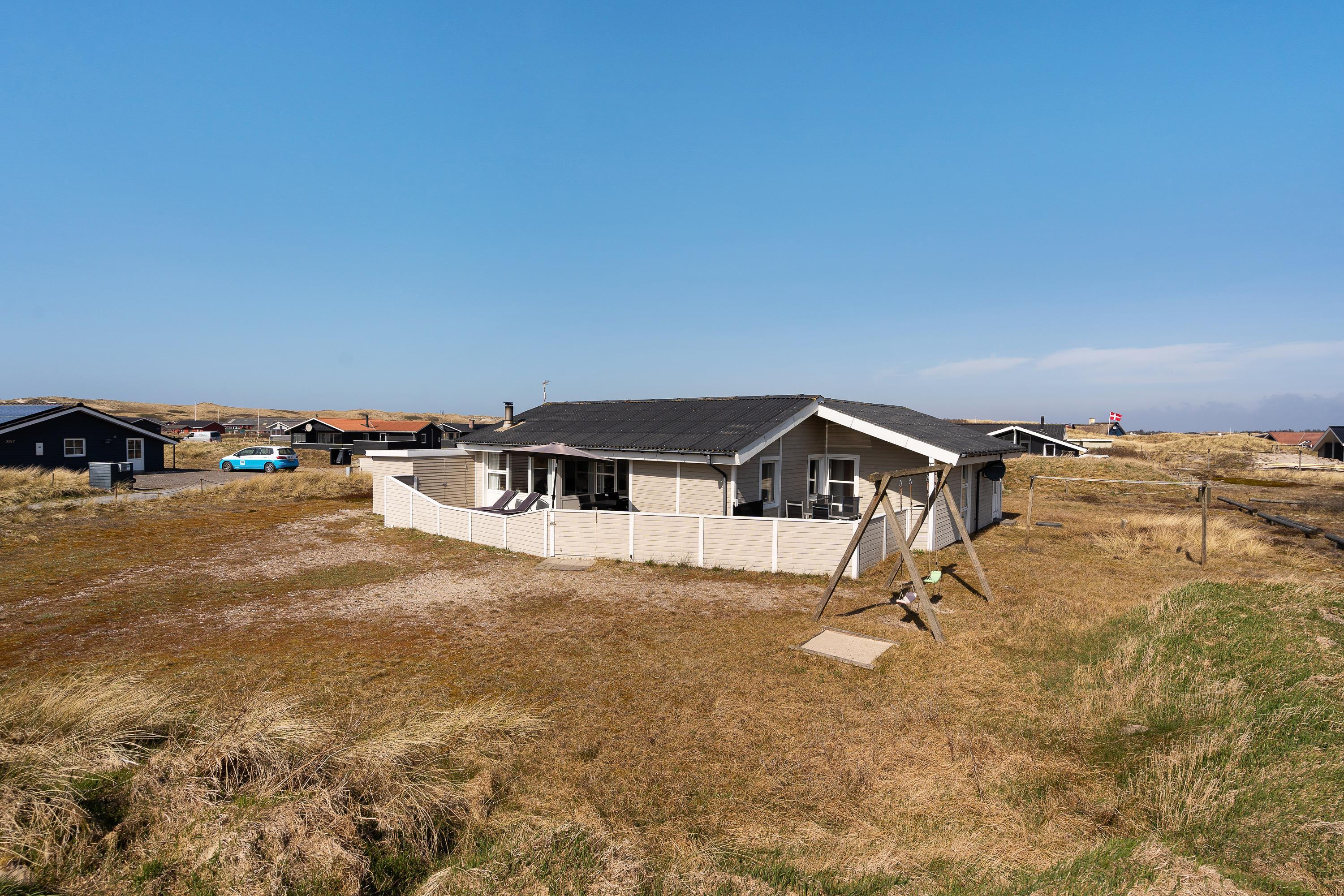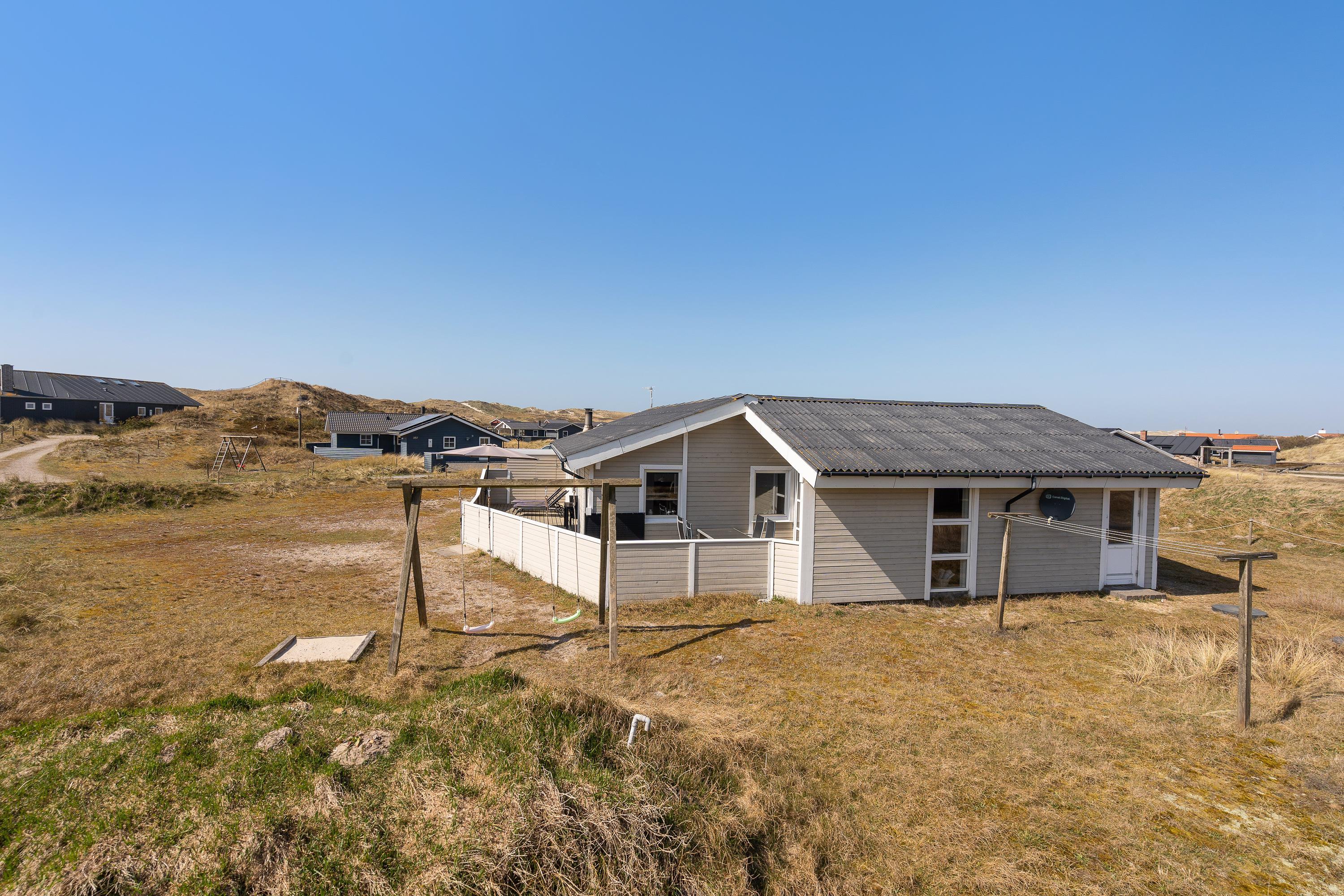 Omkring feriehuset, især ved terrassen, er der plads til, at børnene kan lege og spille bold på naturgrunden. Og der er også opstillet gynger og en sandkasse, hvor de små kan lege i trygge omgivelser under forældrenes opsyn.