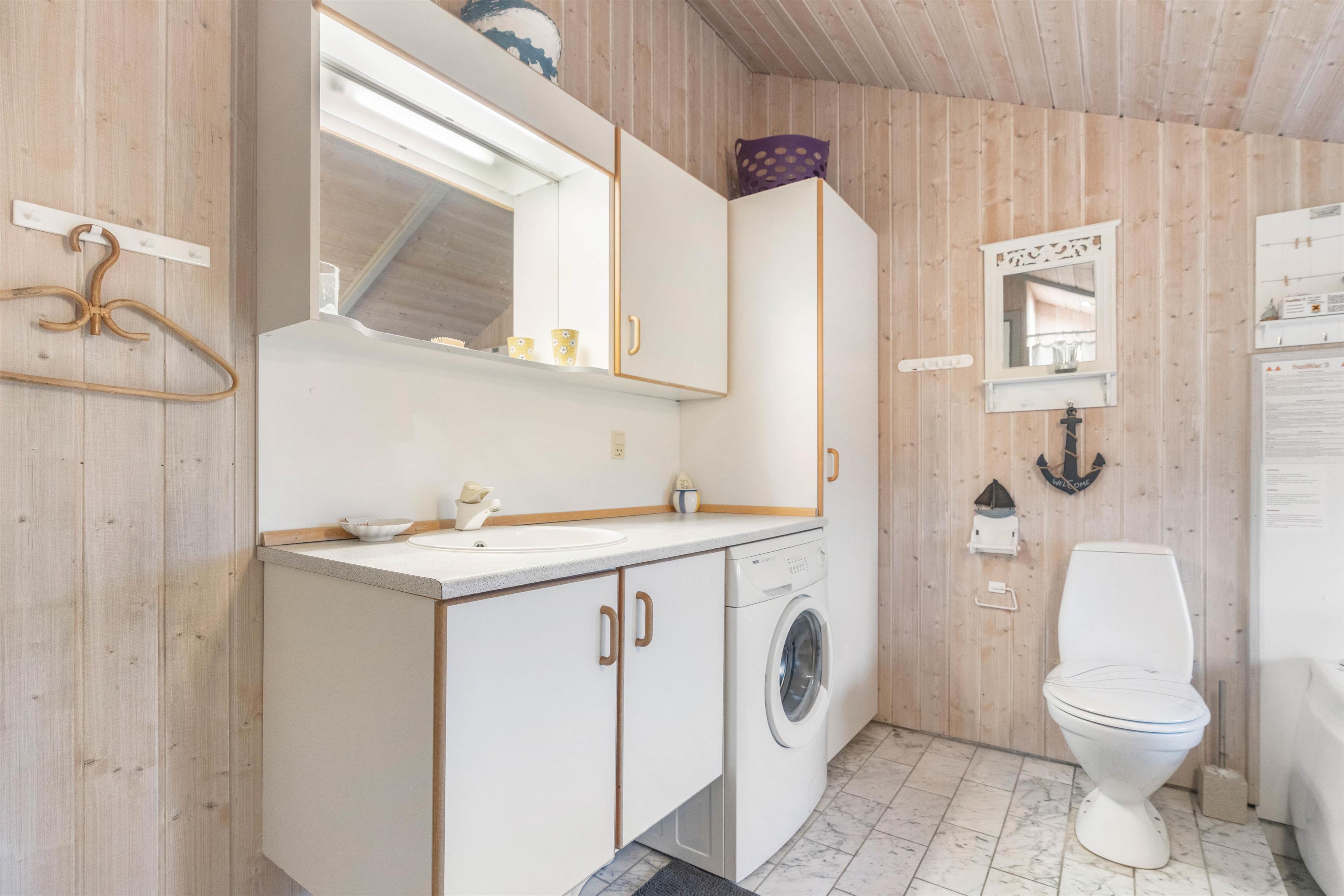 Vaskemaskinen er måske især anvendelig for småbørnsfamilier, men alle kan få brug for at vaske lidt undervejs. Det rummelige badeværelse har gulvvarme, så I ikke behøver at fryse fusserne om morgenen. Her er også plads til afslapning i både spaen og saunaen. Nyd hvile og afslapning i saunaen eller med et langt bad i spabadet - perfekt til at komme helt ned i gear.