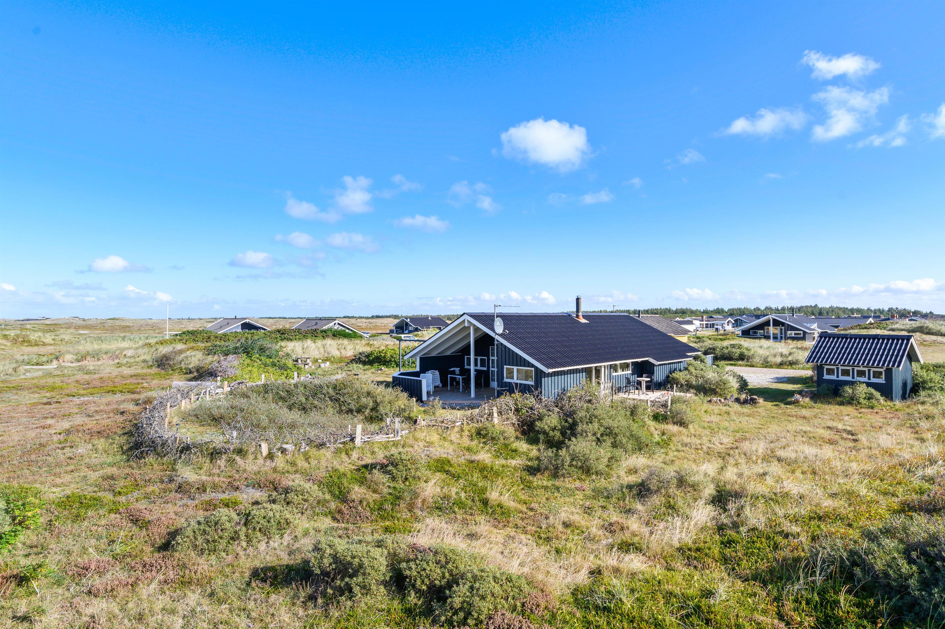 I dette skønne feriehus kan I slappe af fra hverdagens stress. Fra terrassen er der panoramaudsigt over det unikke klitlandskab, og om aftenen kan du nyde solnedgangen bag klitterne. Med op til 6 personer er dette feriehus ideelt til små familier eller en gruppe venner, der rejser sammen. Din hund er også velkommen, og sammen kan I nyde gåture til den kilometerlange sandstrand.