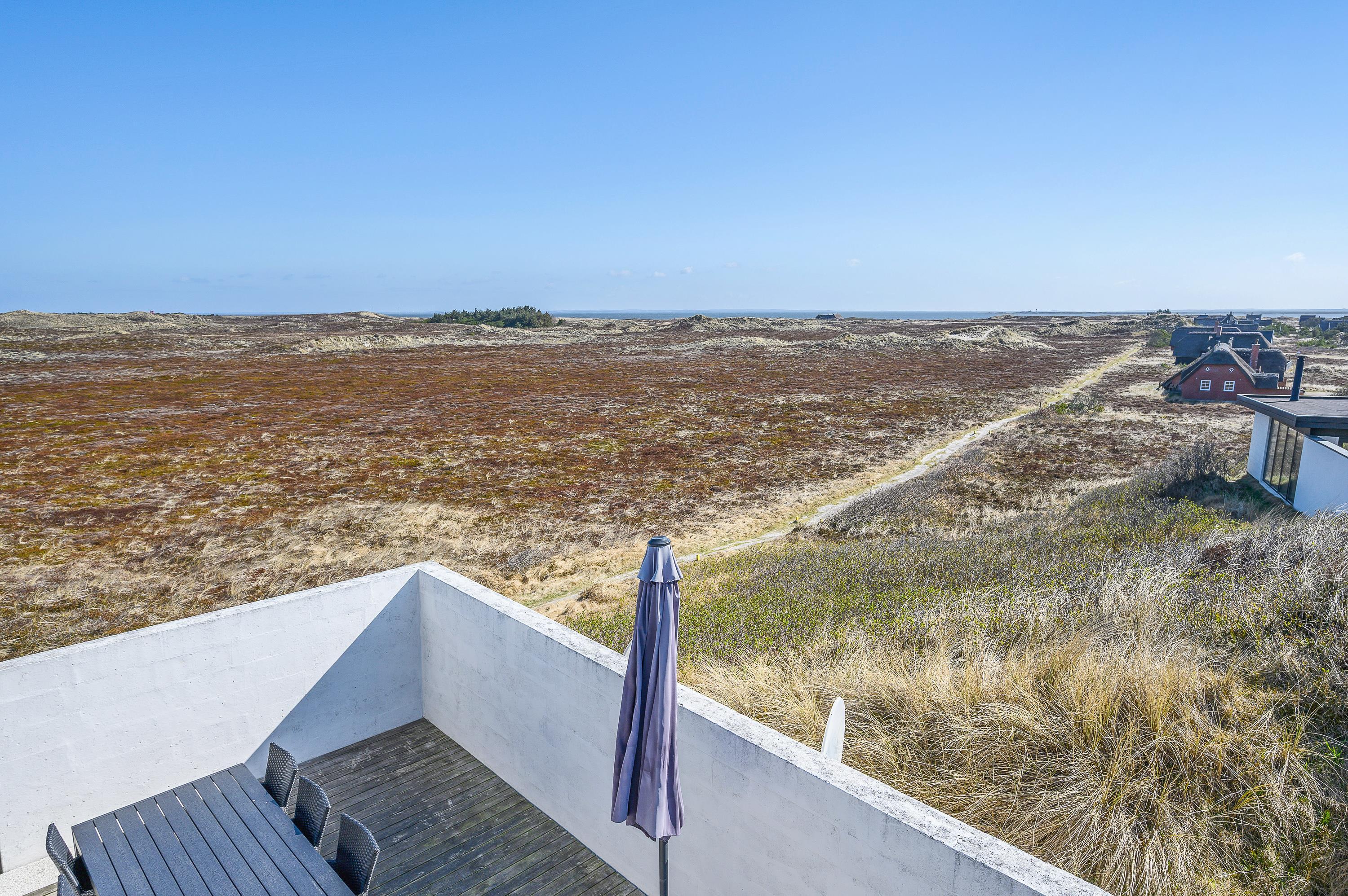 Det dejlige hus med panoramaudsigten er omgivet af terrasser og alle måltider kan således nydes ude, lige meget hvor på himlen solen står. Følg solen hele dagen, fra opgang i øst til nedgang i vest over klitterne. Ultimativ nydelse er en veltilberedt grillmiddag, mens I ser solen farve himlen orangerød over klitterne.