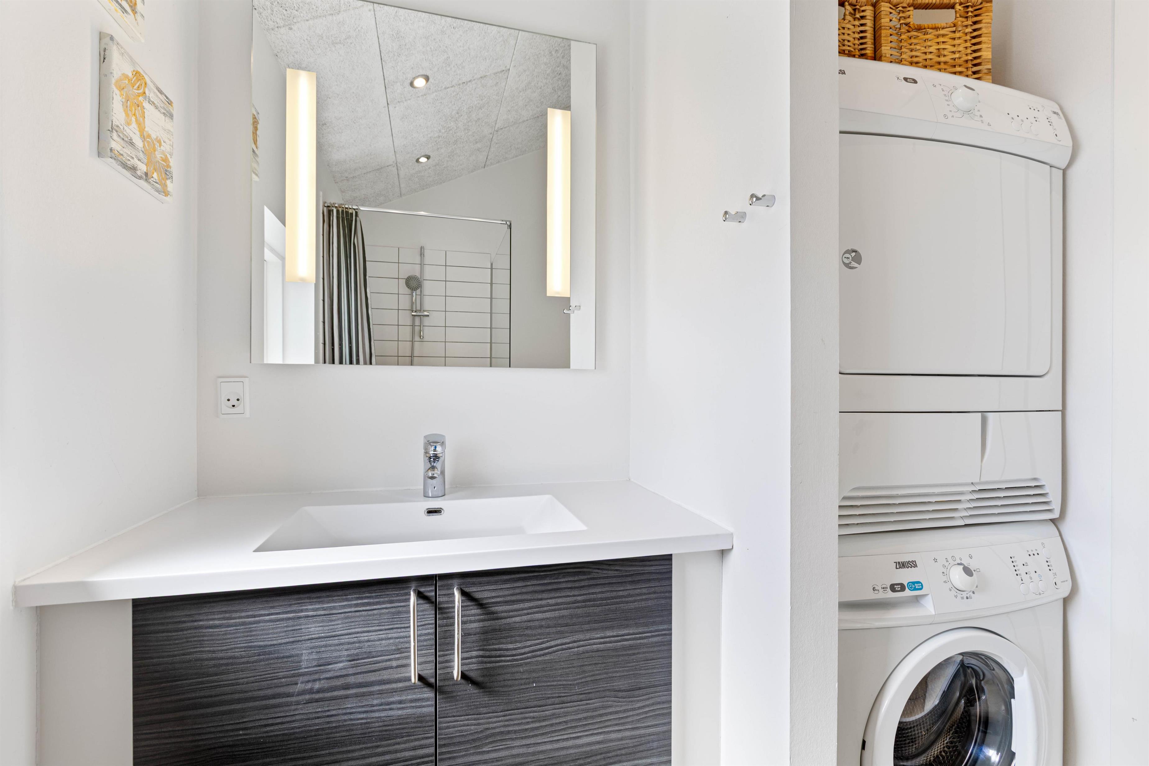 Huset har gode praktiske faciliteter, og der er gjort meget for, at jeres ferie skal blive så ukompliceret som mulig. Opvaskemaskine, vaskemaskine og tørretumbler står klar til at hjælpe med oprydning og tøjvask, og i soveværelser og entré er der gode muligheder for opbevaring.