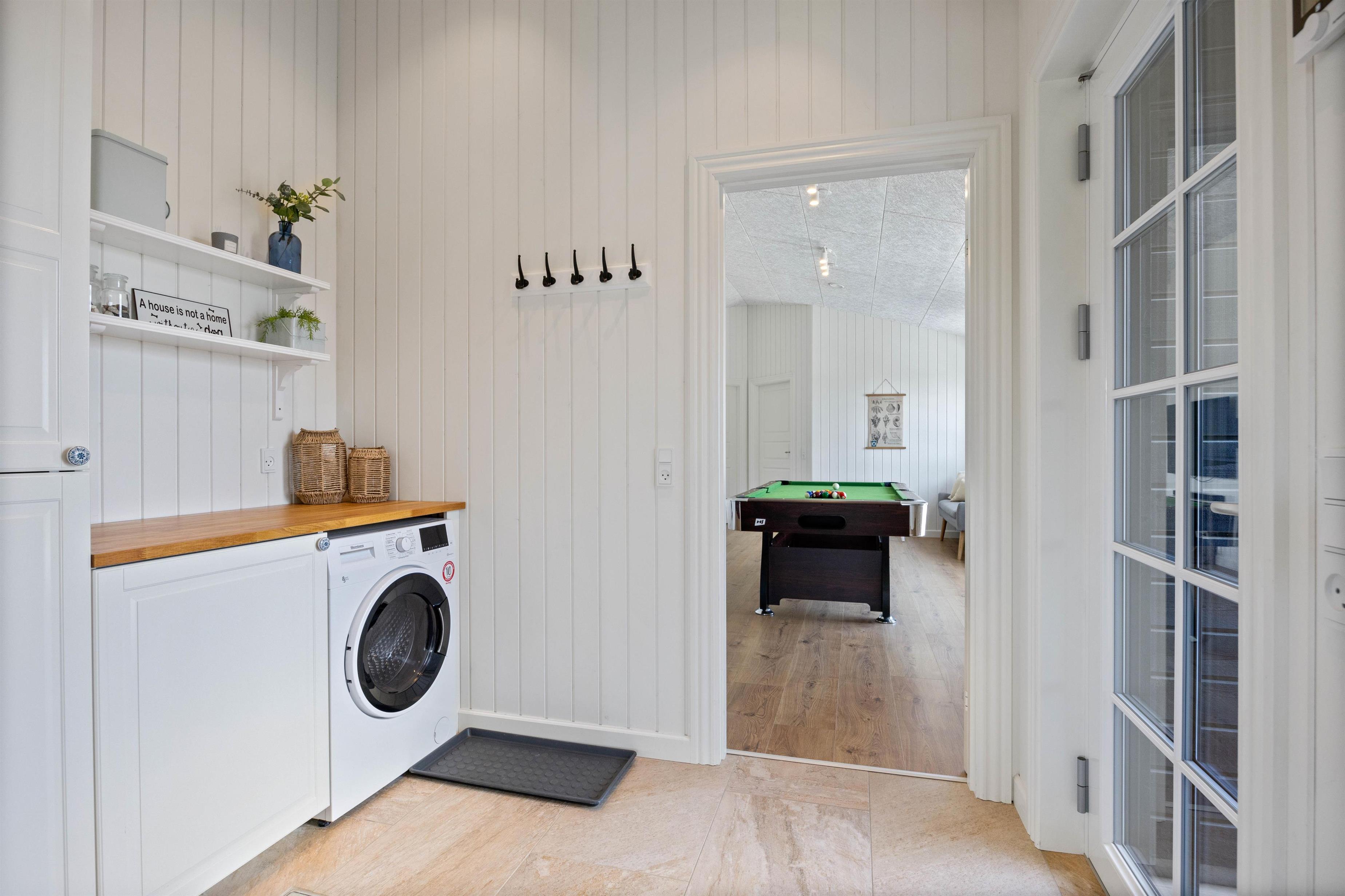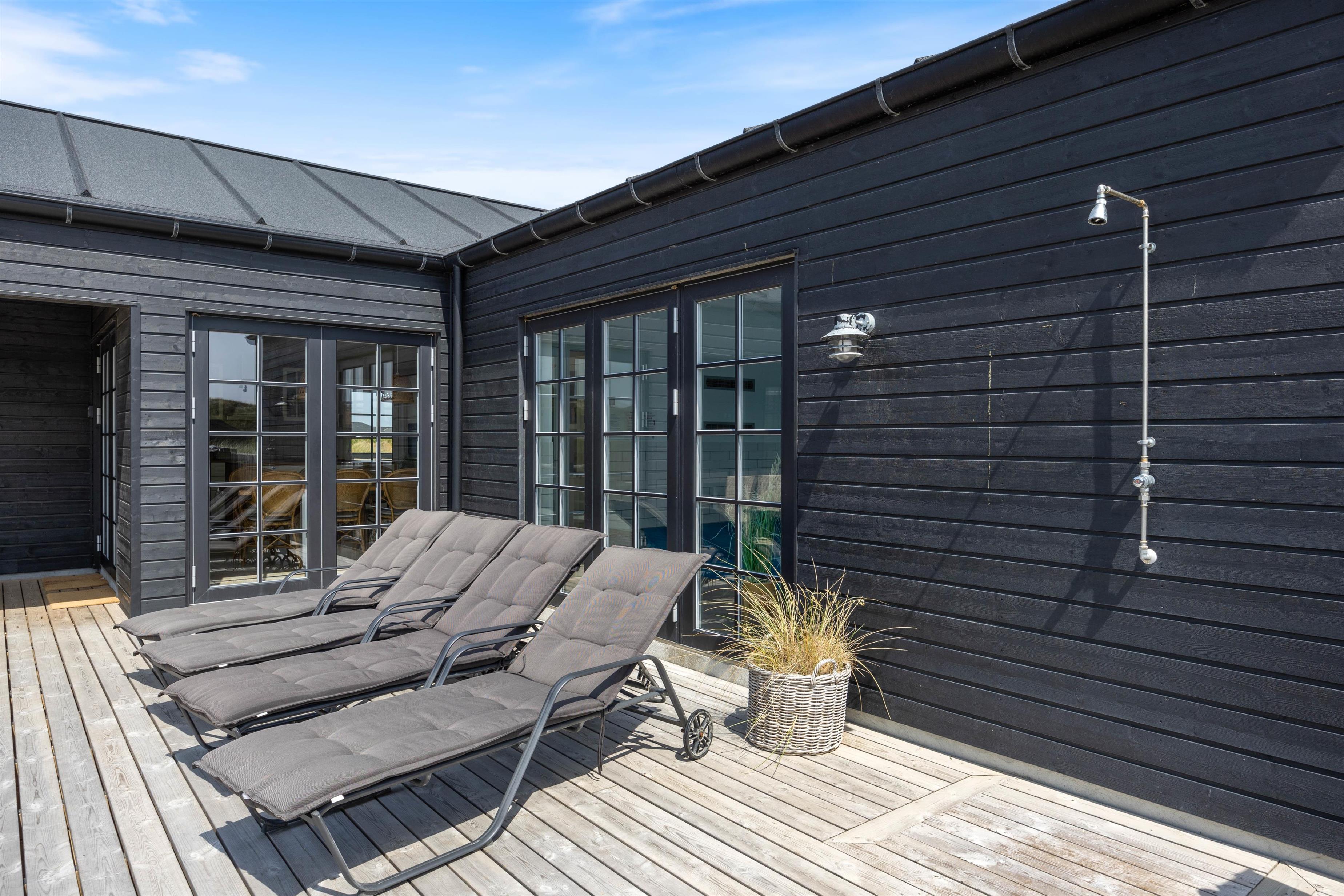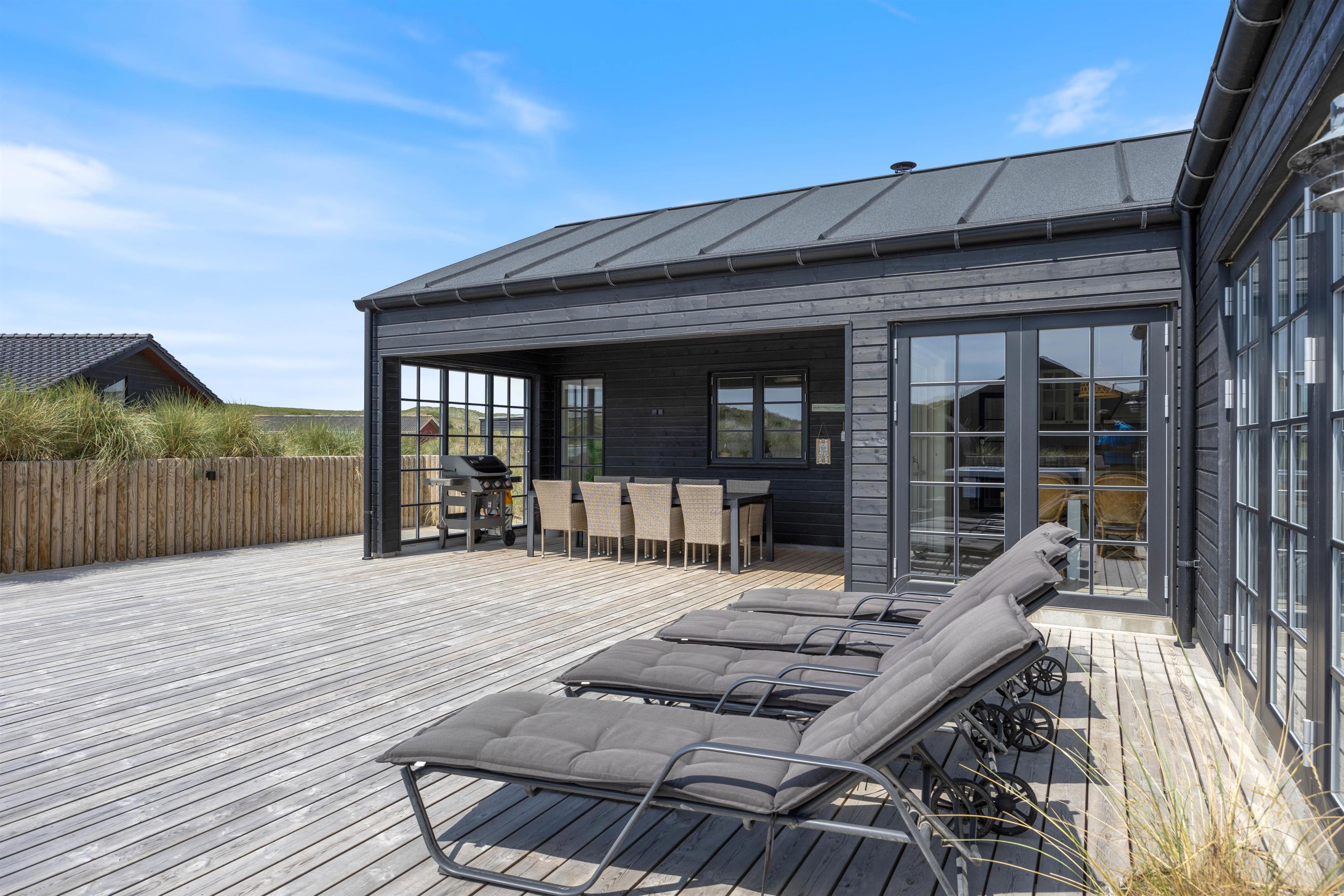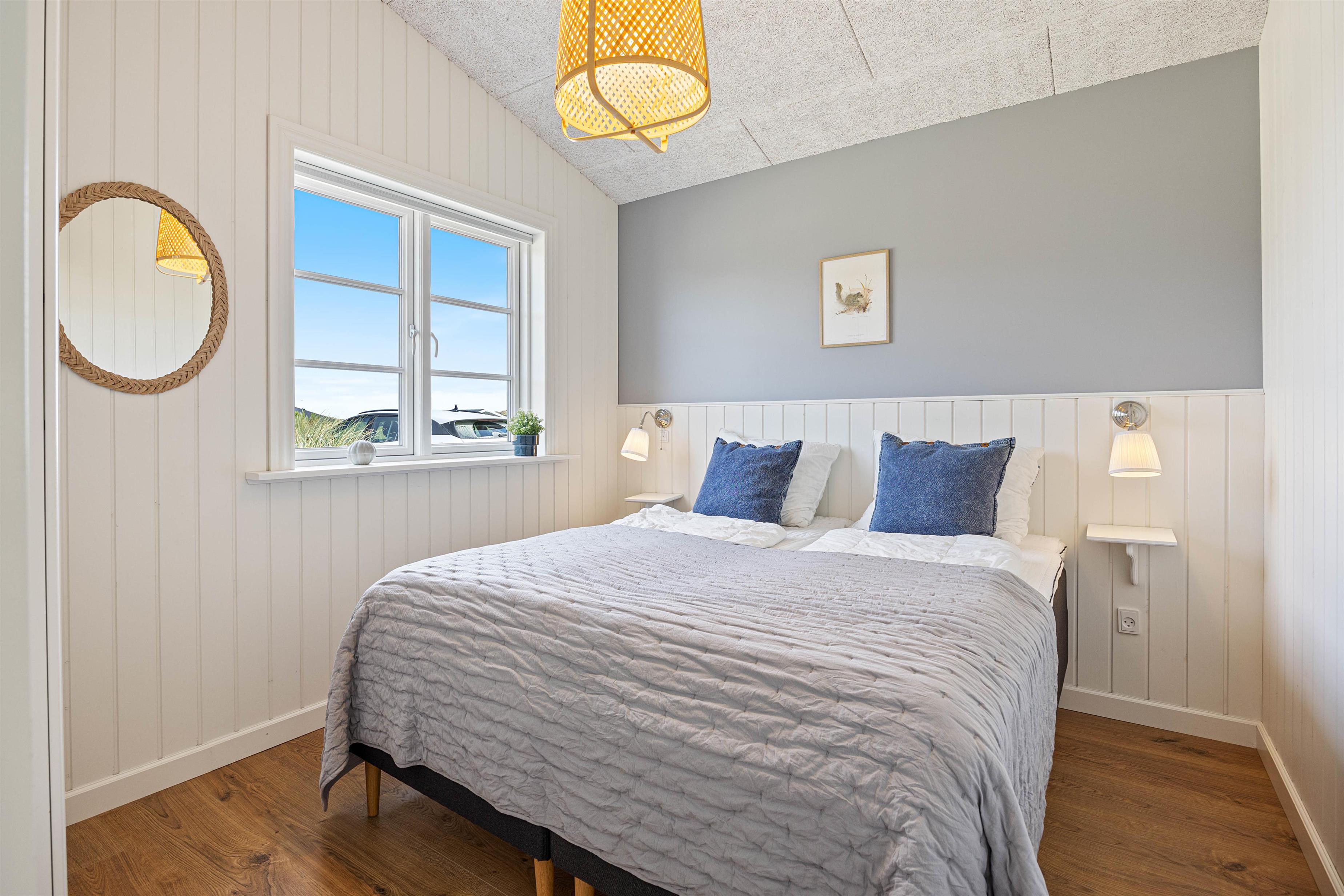 Kan I bruge en dukkert i swimmingpoolen, er den lige ved siden af. Alle aldersgrupper kan i det hele taget være aktive næsten døgnet rundt i dette feriehus, f.eks i det fine aktivitetsrum midt i feriehuset, hvor I kan få gang i energiomsætningen. Afslapning indendørs eller udendørs er også tilgængeligt, enten i de behagelige sofaer og stole eller udendørs i de komfortable møbler. I de fire soveværelser med dobbeltsenge kan I få godt udsovet i den friske vesterhavsluft. De 2 badeværelser gør, at I ikke behøver at stå i kø til morgenbadet.