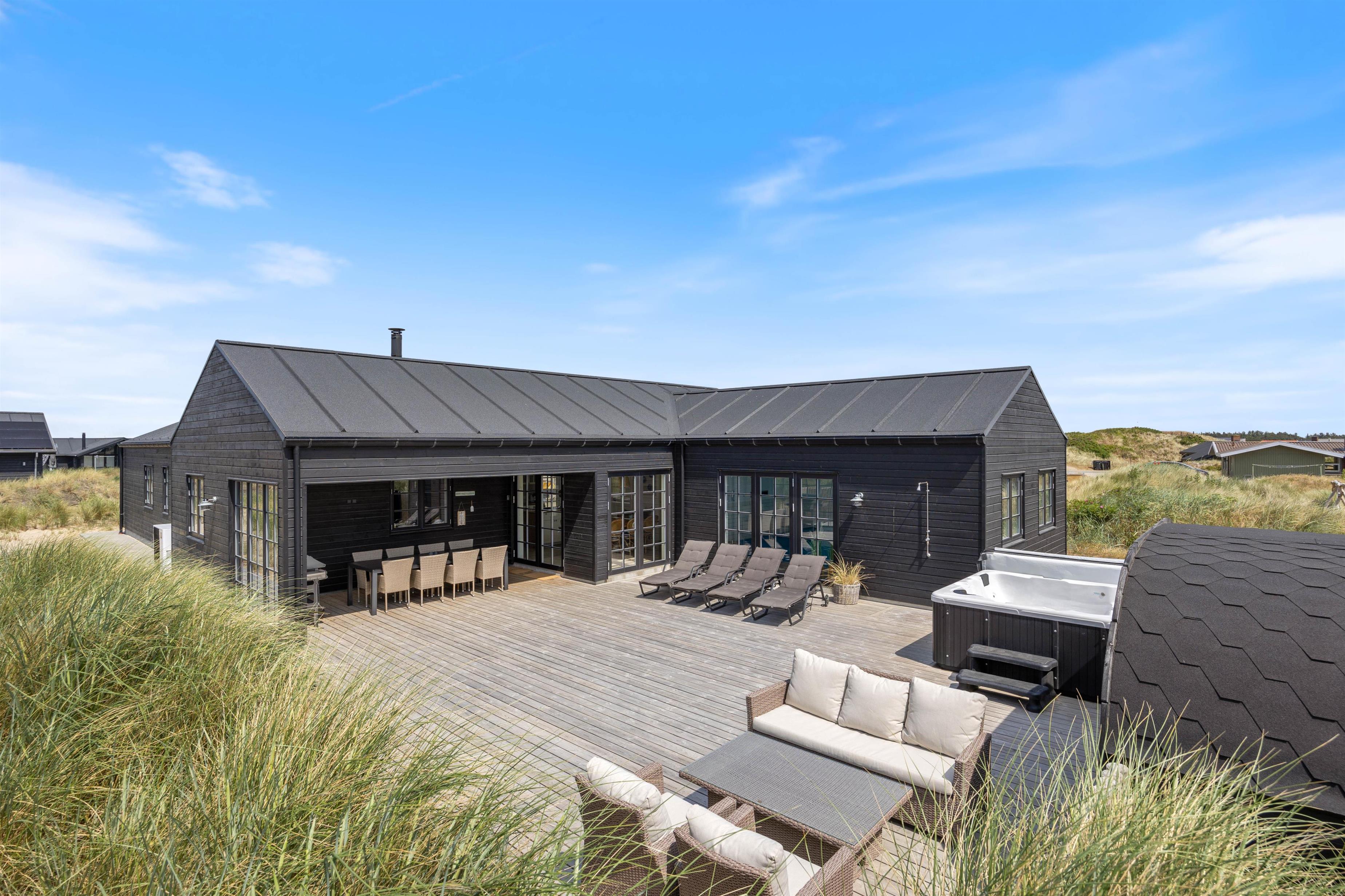 Slap af med den luksuriøse indretning med swimmingpool, udespa, brændeovn, aktivitetsrum med pool- og bordtennisbord og meget mere. Og nyd endelig også den omgivende terrasse med fine kvalitetsmøbler. Her er rammerne sat for en virkelig skøn ferie sammen med familie eller et hold venner, imens I nyder alt, hvad Vestjylland byder på.