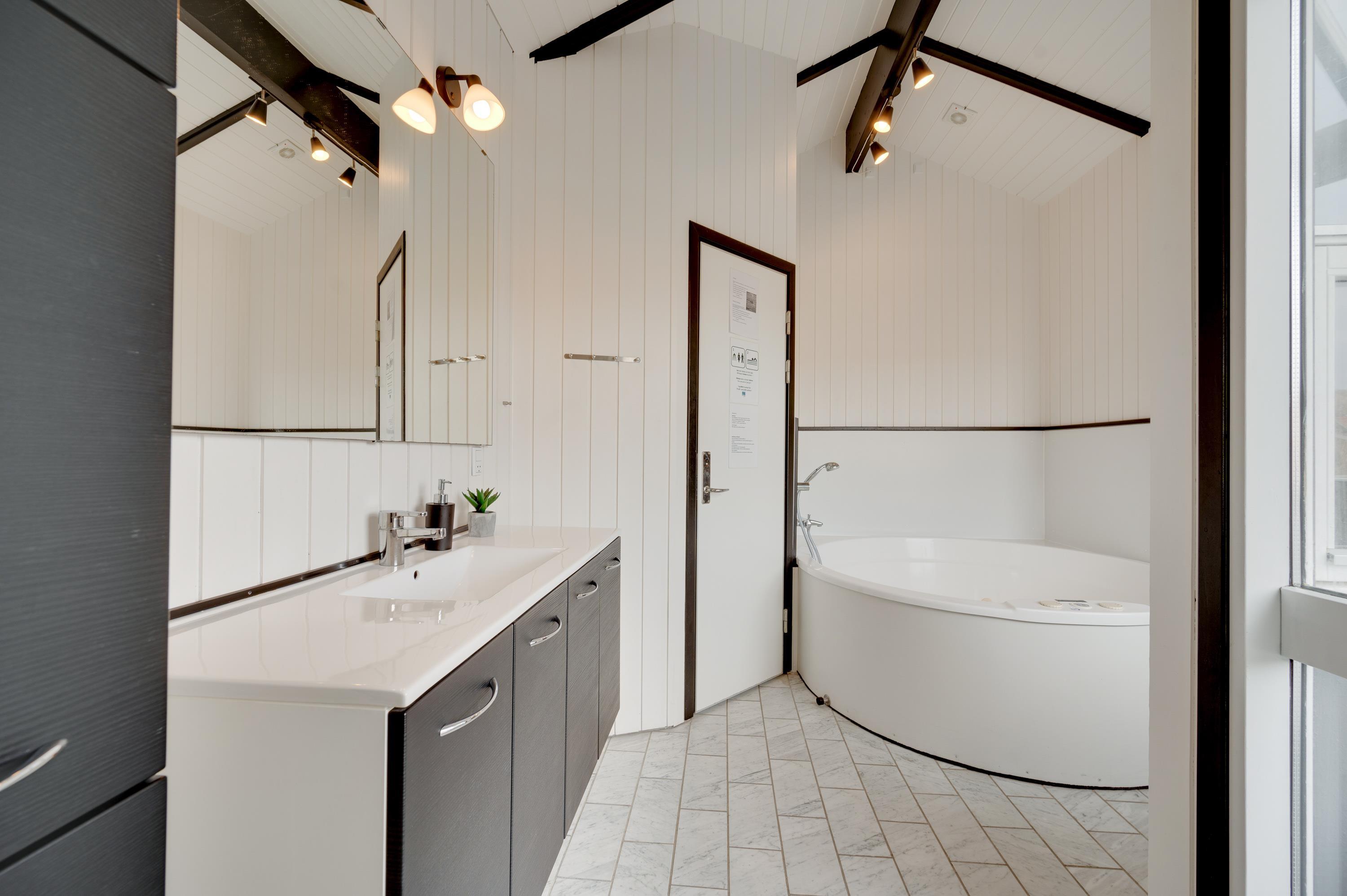 Og når de mindste er lagt i seng, kan I voksne nyde lidt feriehus-wellness med tændte stearinlys og en god flaske vin.