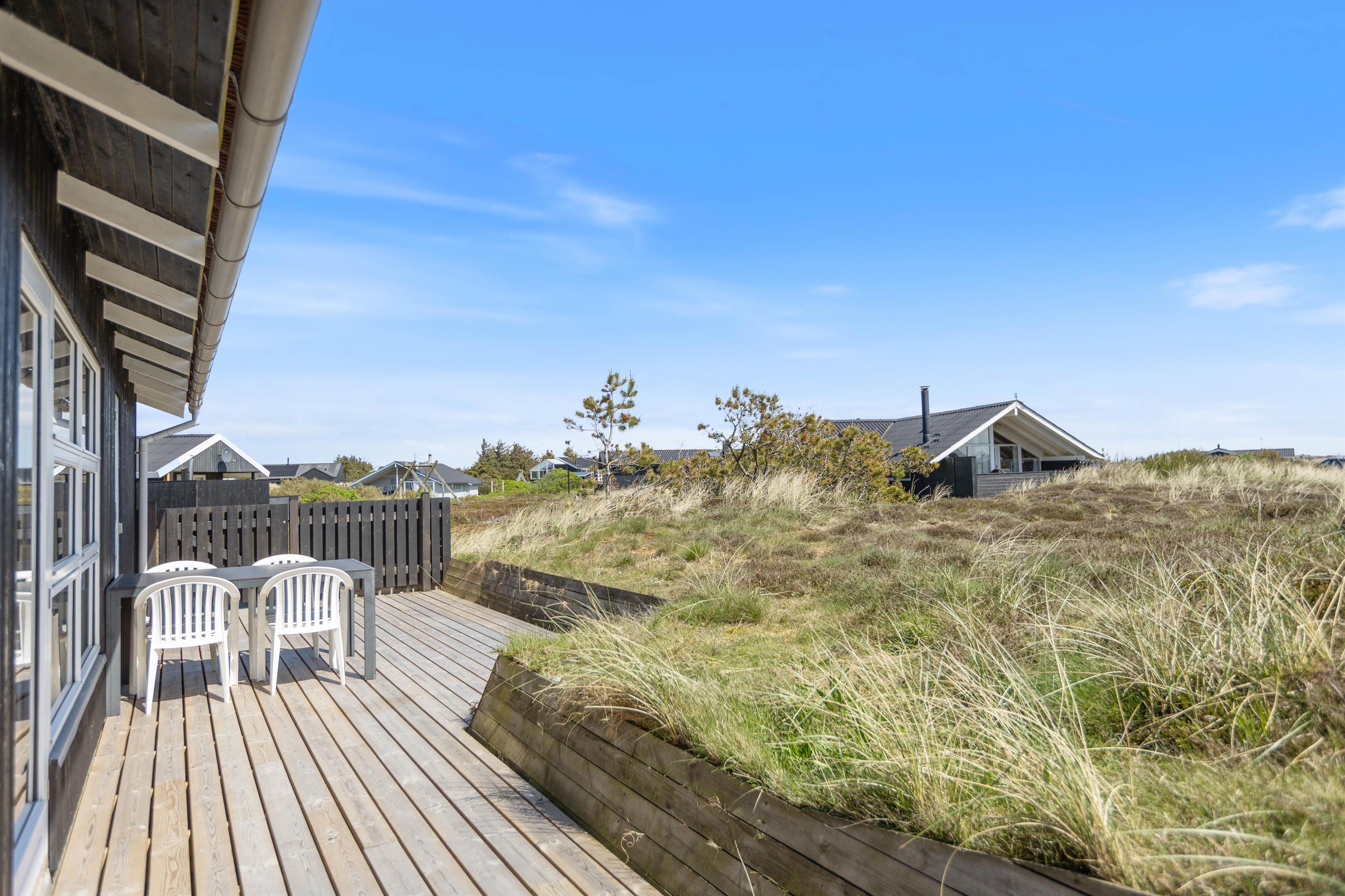 Feriehuset har flere terrasser omkring sommerhuset. Her kan I spise morgenmad på den østlige terrasse om morgenen og starte grillen på den vestlige terrasse om aftenen, hvorfra I kan se solnedgangen bag klitterne. På terrassen er der rig mulighed for at finde læ, da terrassen både er afskærmet og delvist overdækket.