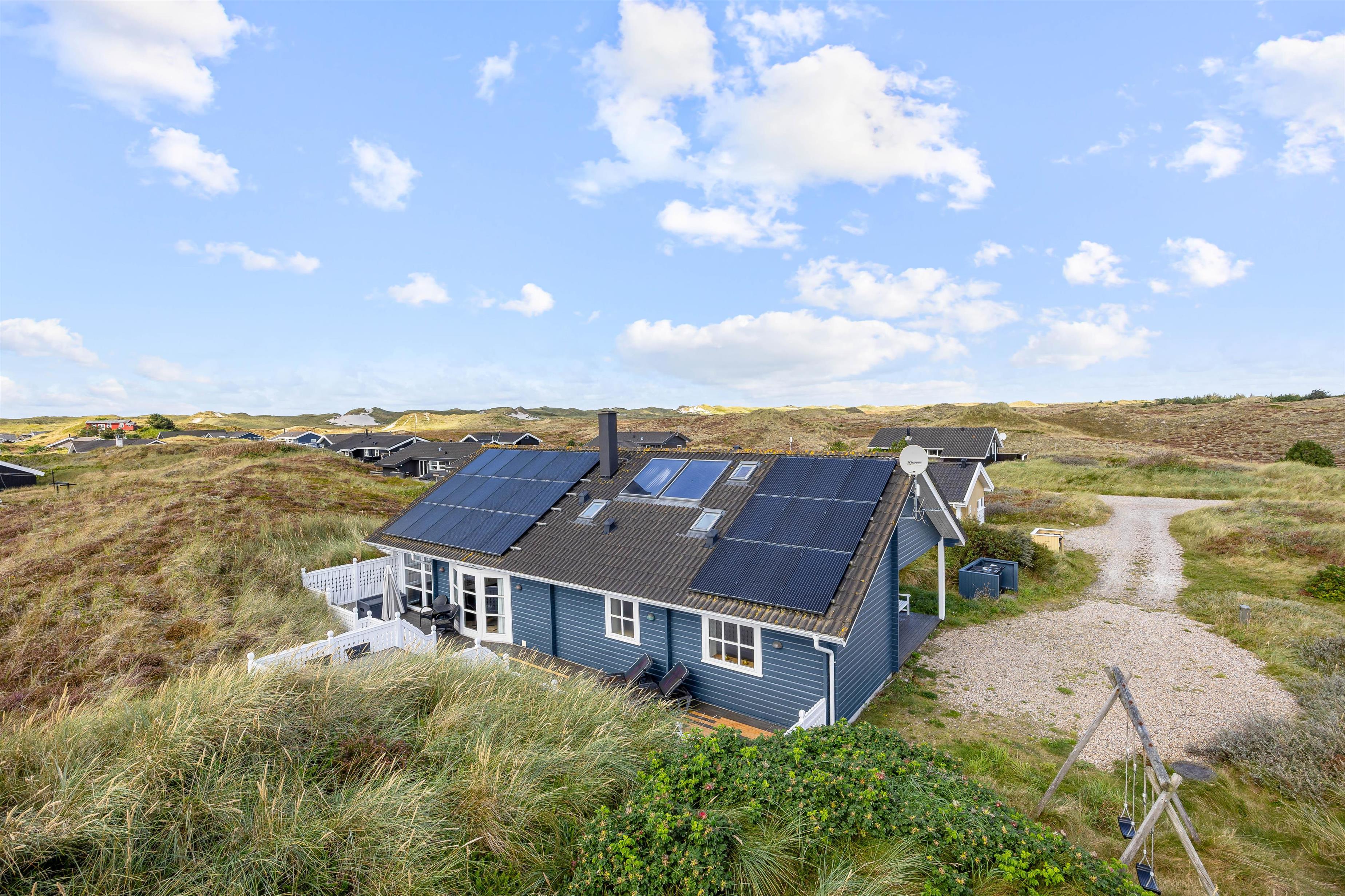Der er vaskemaskine og tørretumbler til rådighed for jer, så I kan opfriske garderoben eller håndklæderne i løbet af ferien. Der er en energibesparende varmepumpe, som hurtigt og effektivt sørger for et behageligt indeklima og en god temperatur. Når solen skinner, bidrager husets solfangere til at holde forbrugsomkostningerne nede, da solen opvarmer det varme vand, som I bruger.