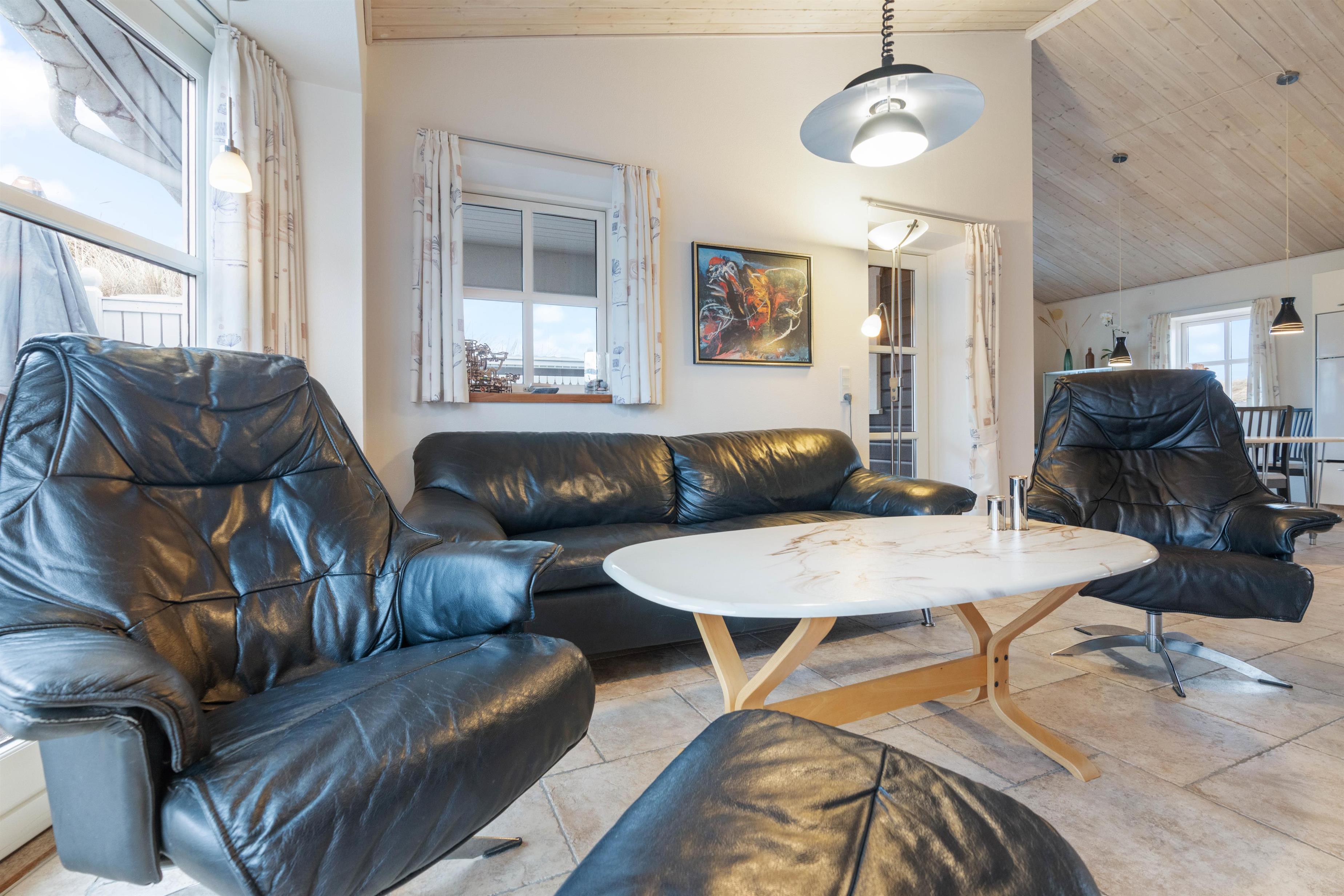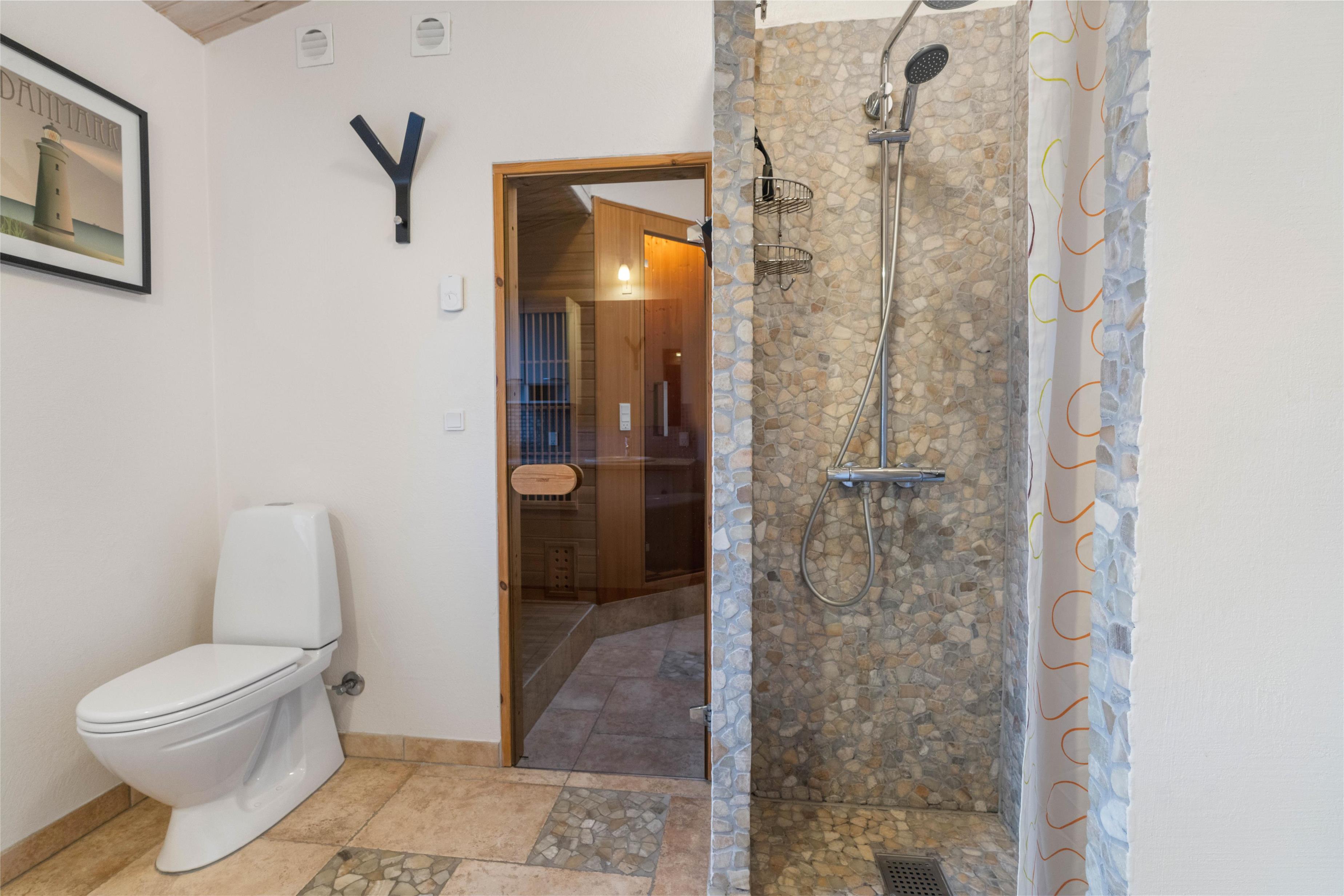 Feriehuset har 2 badeværelser med gulvvarme. I forbindelse med det store badeværelse er badekar, sauna og infrarød sauna, så her kan I arrangere jeres egen lille wellnessaften, og få musklerne varmet godt igennem. De 3 soveværelser indeholder hver en komfortabel dobbeltseng, hvor I kan hvile ud efter dagens strabadser. Læg mærke til, at vesterhavsluften gør noget godt for nattesøvnen.