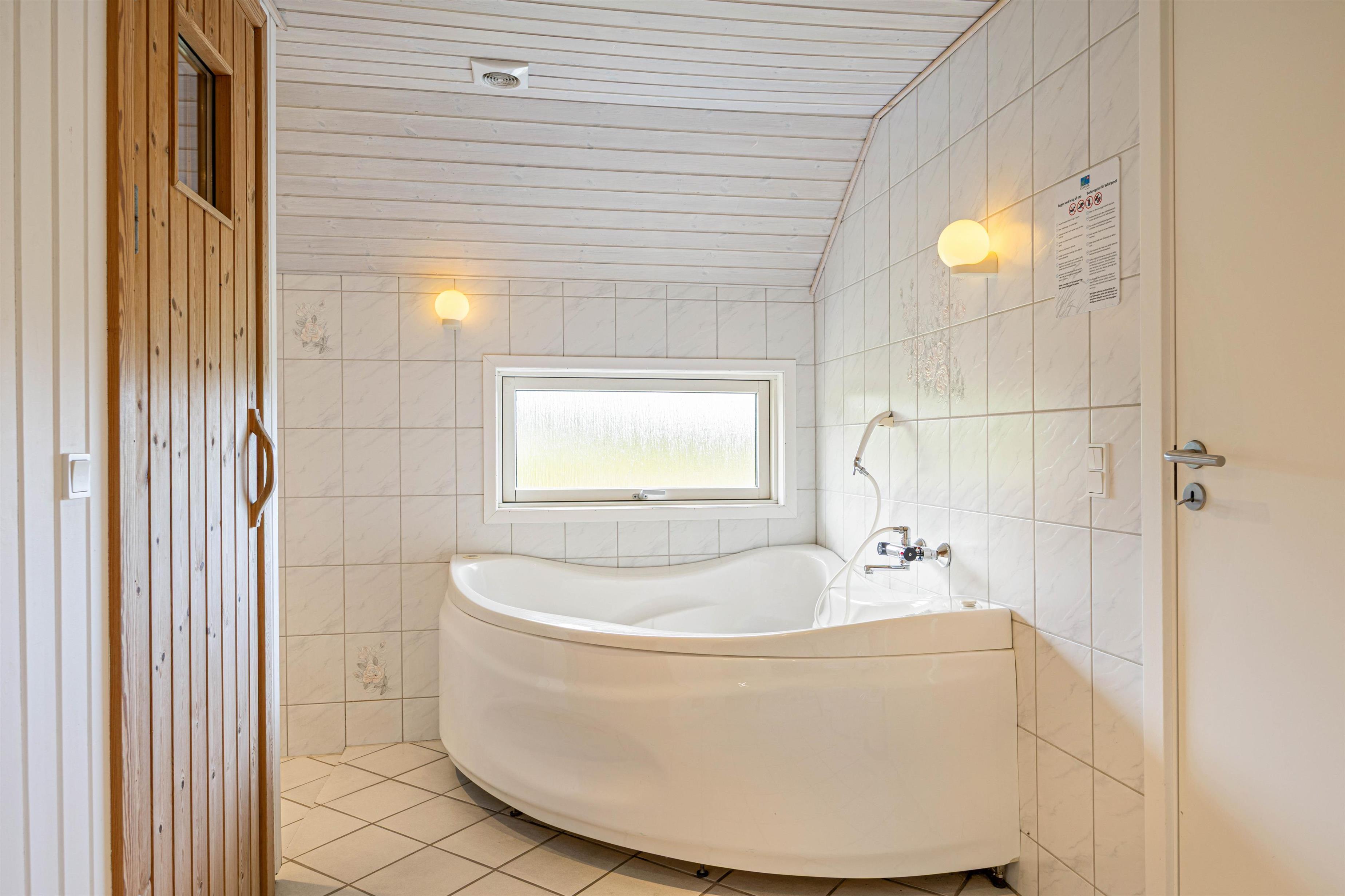 På badeværelset er der både sauna og spa. Spaen er til to personer, så mon ikke I forældre kan hoppe en tur i spaen, når børnene er kommet i seng – og måske et glas vin skal medbringes herind? Herinde råder I også over på vaskemaskine og tørretumbler, så håndklæderne kan friskes op undervejs.