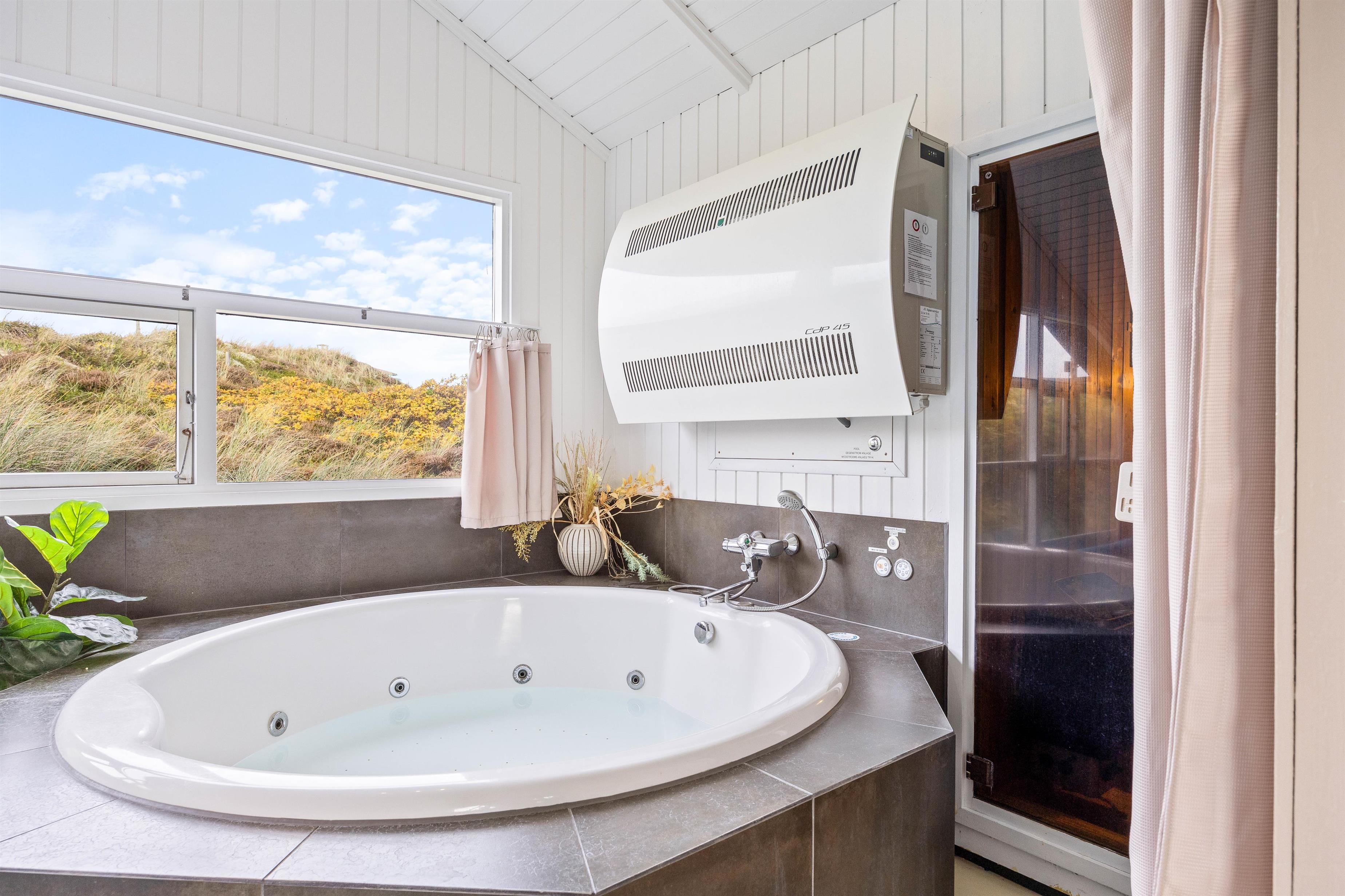 Lad badeferien gå til Vestjylland – uanset vejret. Her i det populære feriehusområde i Bjerregård finder I dette dejlige poolhus, renoveret i 2022, på Dortheasvej 89. En stor poolafdeling med spa, sauna og en pool med rutsjebane vækker bestemt glæde hos børn og andre vandglade gæster.