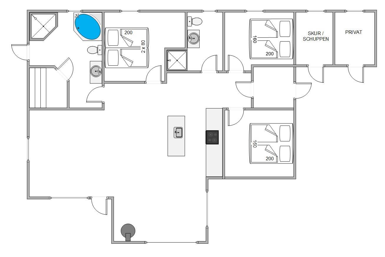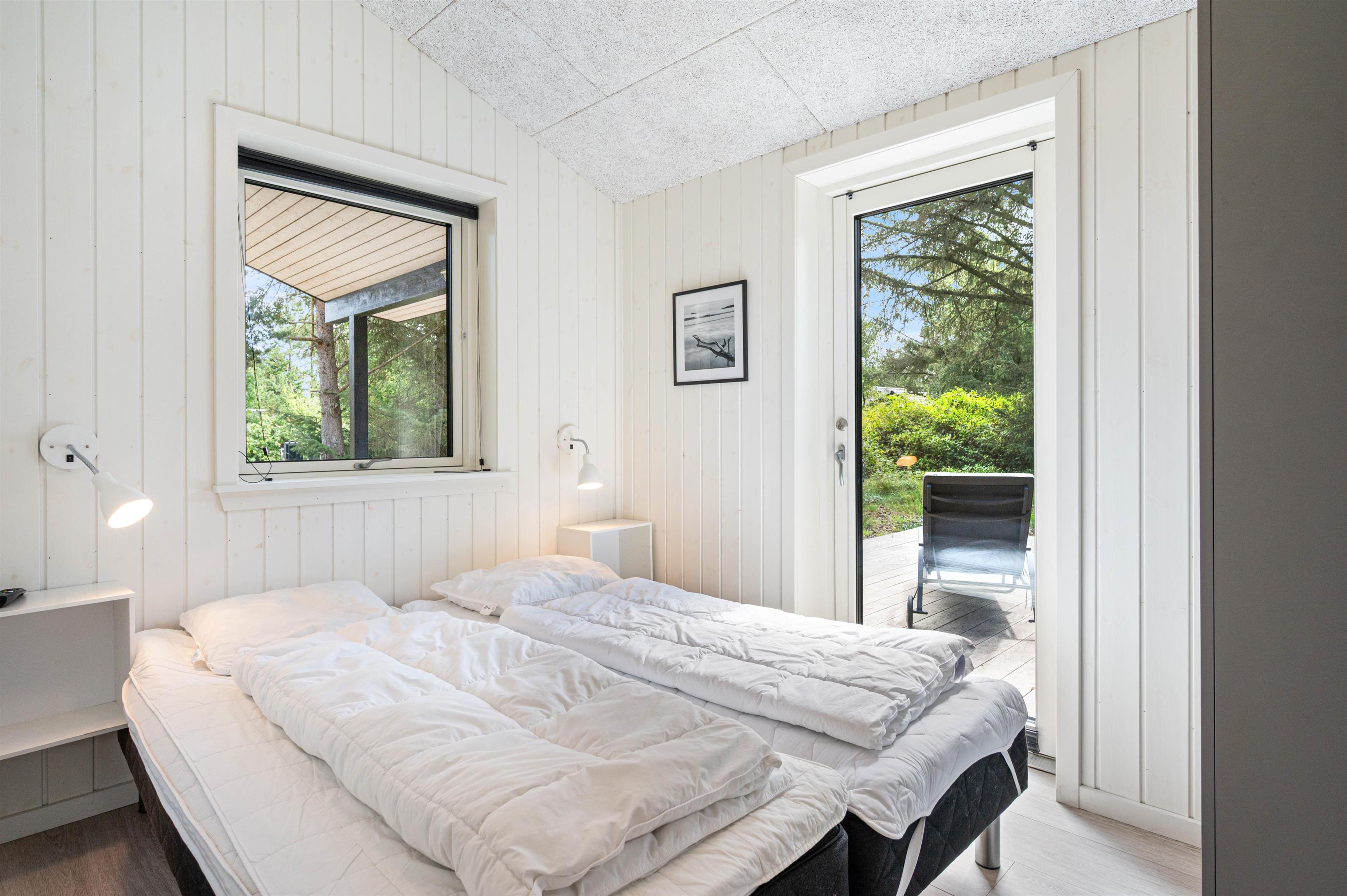 Der er 3 gode soverum, hvoraf de 2 er med dobbeltsenge og 1 værelse er med 2 enkeltsenge. De 2 badeværelser er flotte og praktisk indrettede. Det ene badeværelse har desuden en wellnessafdeling med spa og sauna, som inviterer til lidt forkælelse og velvære - måske efter en lang dag i den, til tider lidt barske, vestjyske natur.