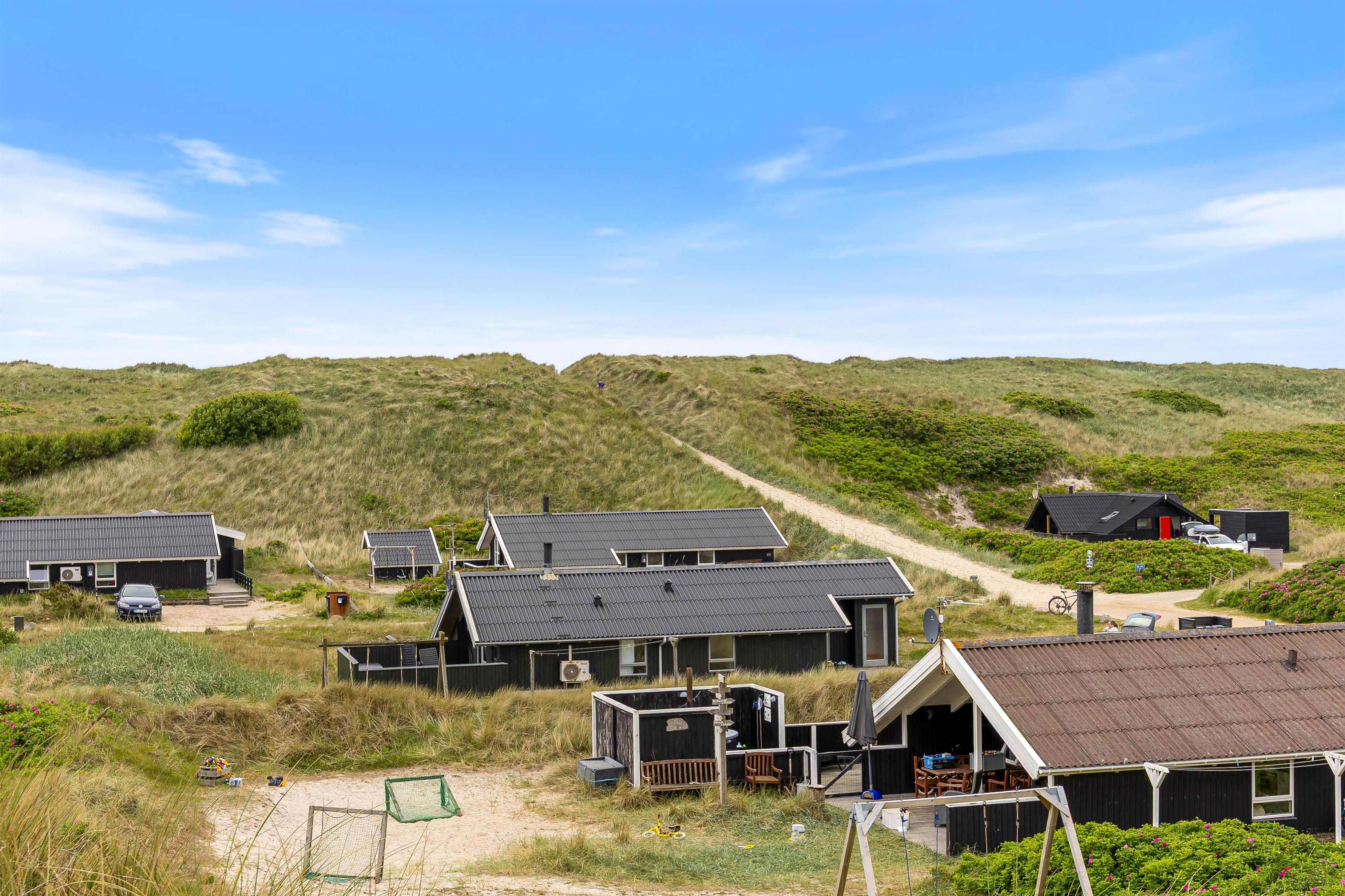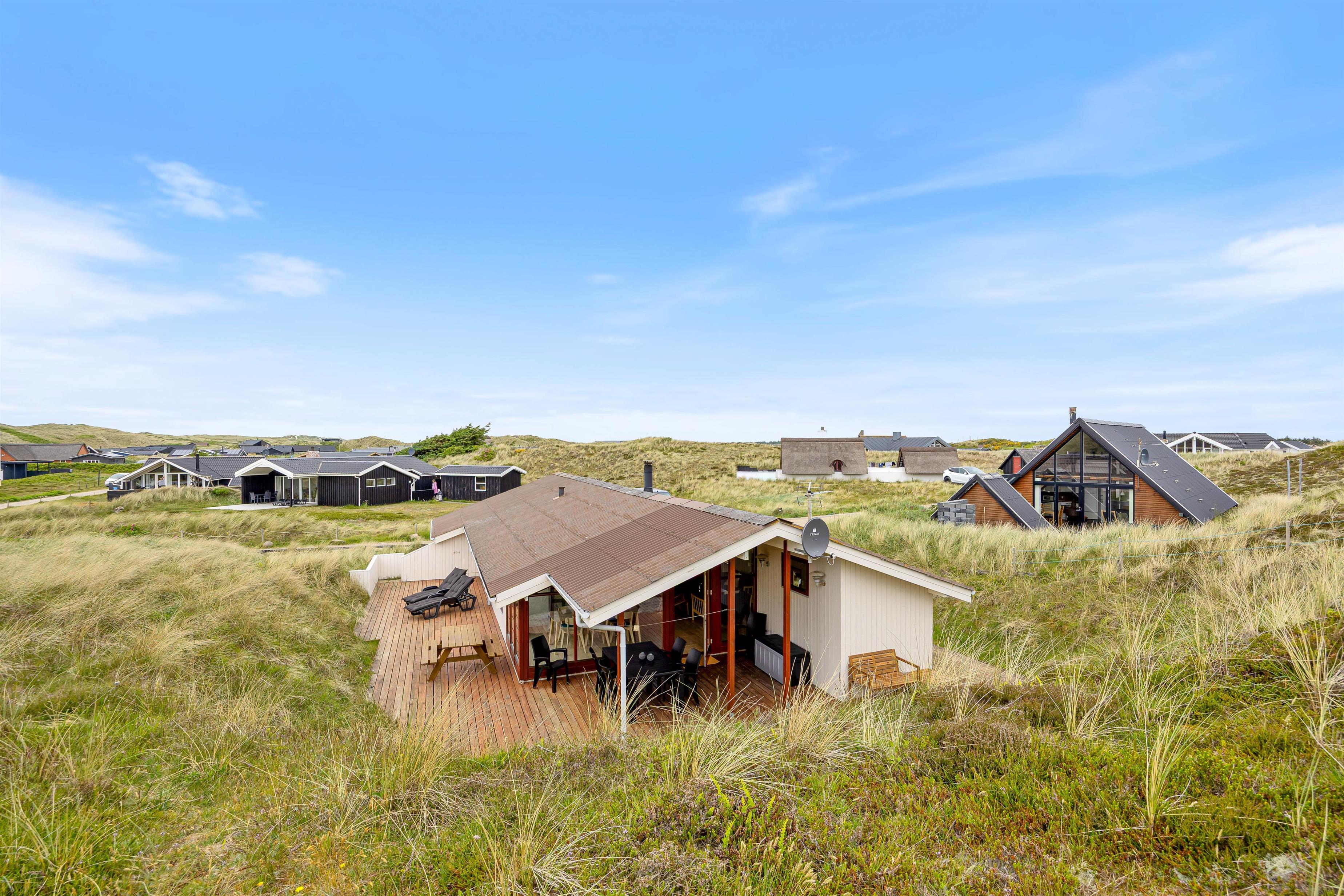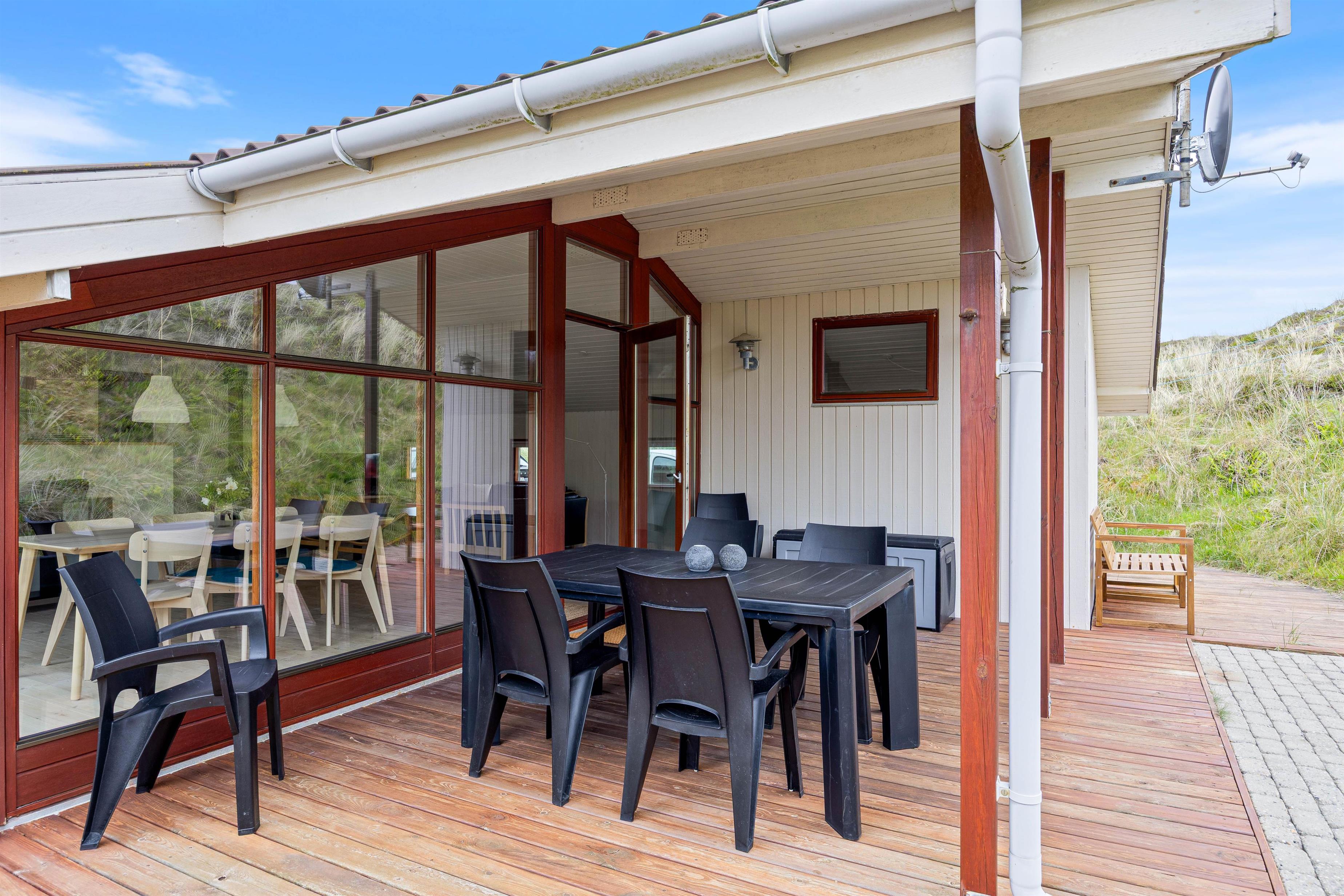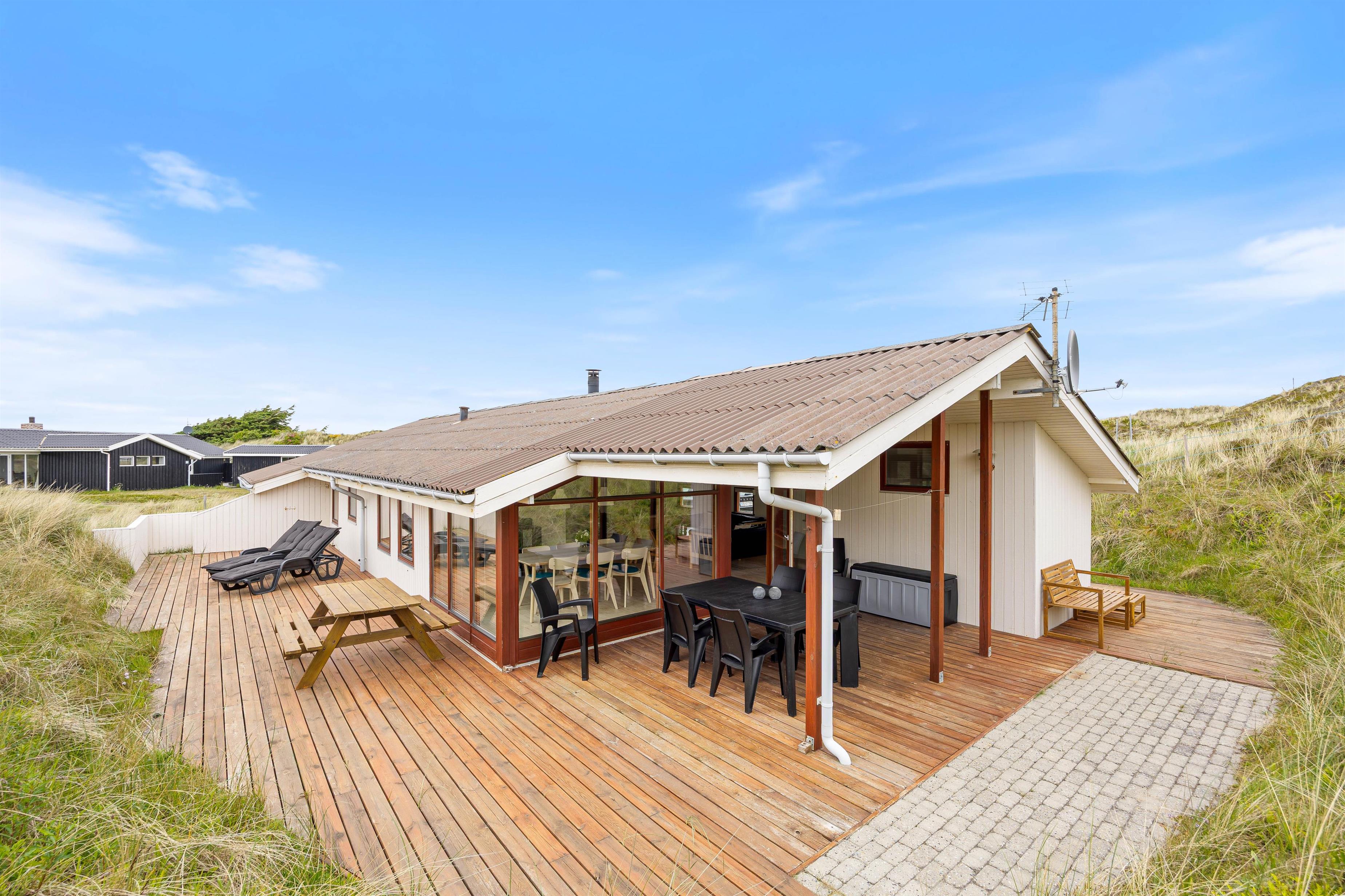 På den delvist overdækkede terrasse kan I nyde måltiderne udendørs, hvis I har lyst til det. Her er flere gode kroge og muligheder for læ, så nyd opholdet på liggestolene eller træk jer tilbage i havemøblerne med en god bog og en kop kaffe. Lad børnene gå på opdagelse på den godt 1.250 kvadratmeter store klitgrund imens. Tænd op i grillen til aften, og nyd et lækkert måltid sammen, før I sætter hunden i snor og går den korte tur til stranden, hvor I kan opleve solnedgangen i Vesterhavet.