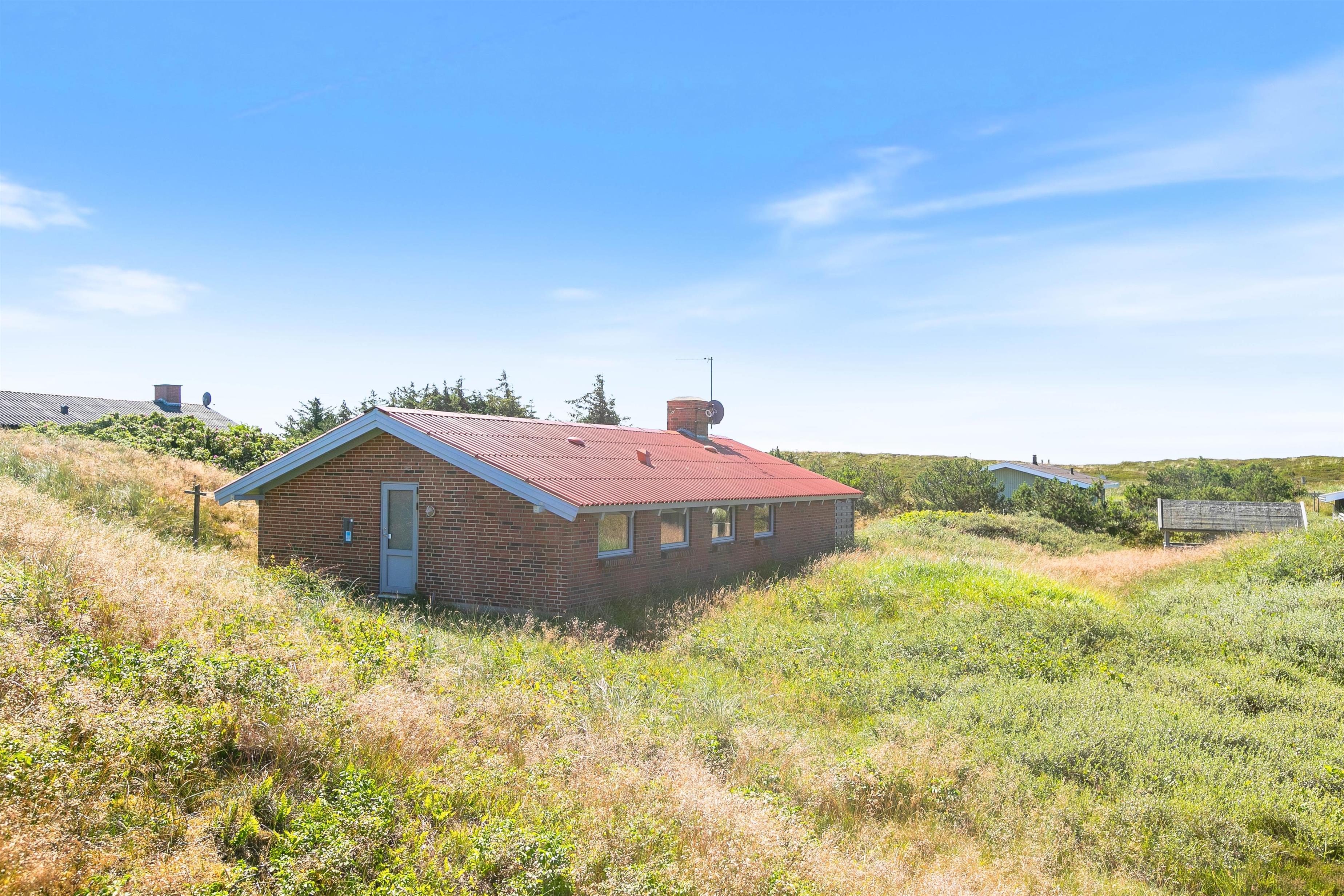 I en rolig beliggenhed på en kuperet naturgrund ligger dette 85 m² store feriehus. Feriehuset på Julianevej 48 har plads til 5 personer og egner sig især til en lille familie med børn. Kun 500 meter væk finder I Vesterhavets brusende bølger.