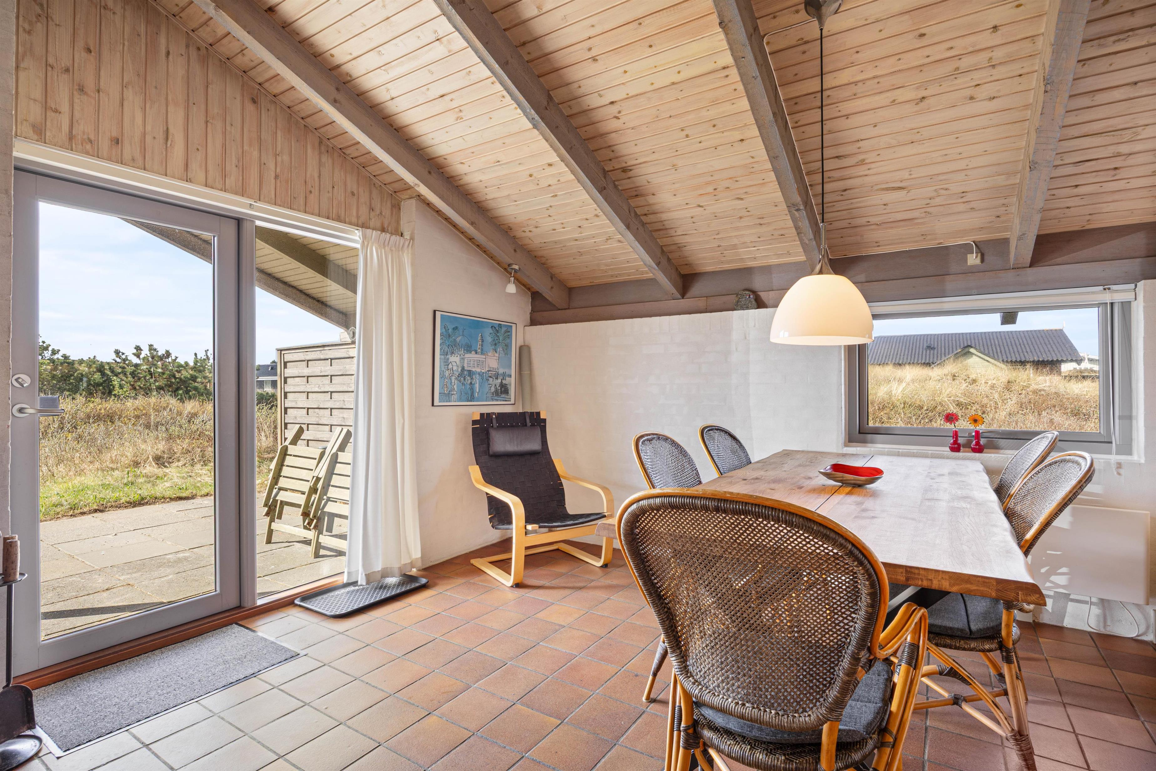 Terrassen vender mod syd og giver perfekte muligheder for at nyde solen dagen igennem. Med kun 500 meter til Vesterhavets kyst er der rige muligheder for strandture og for at nyde den friske havluft.