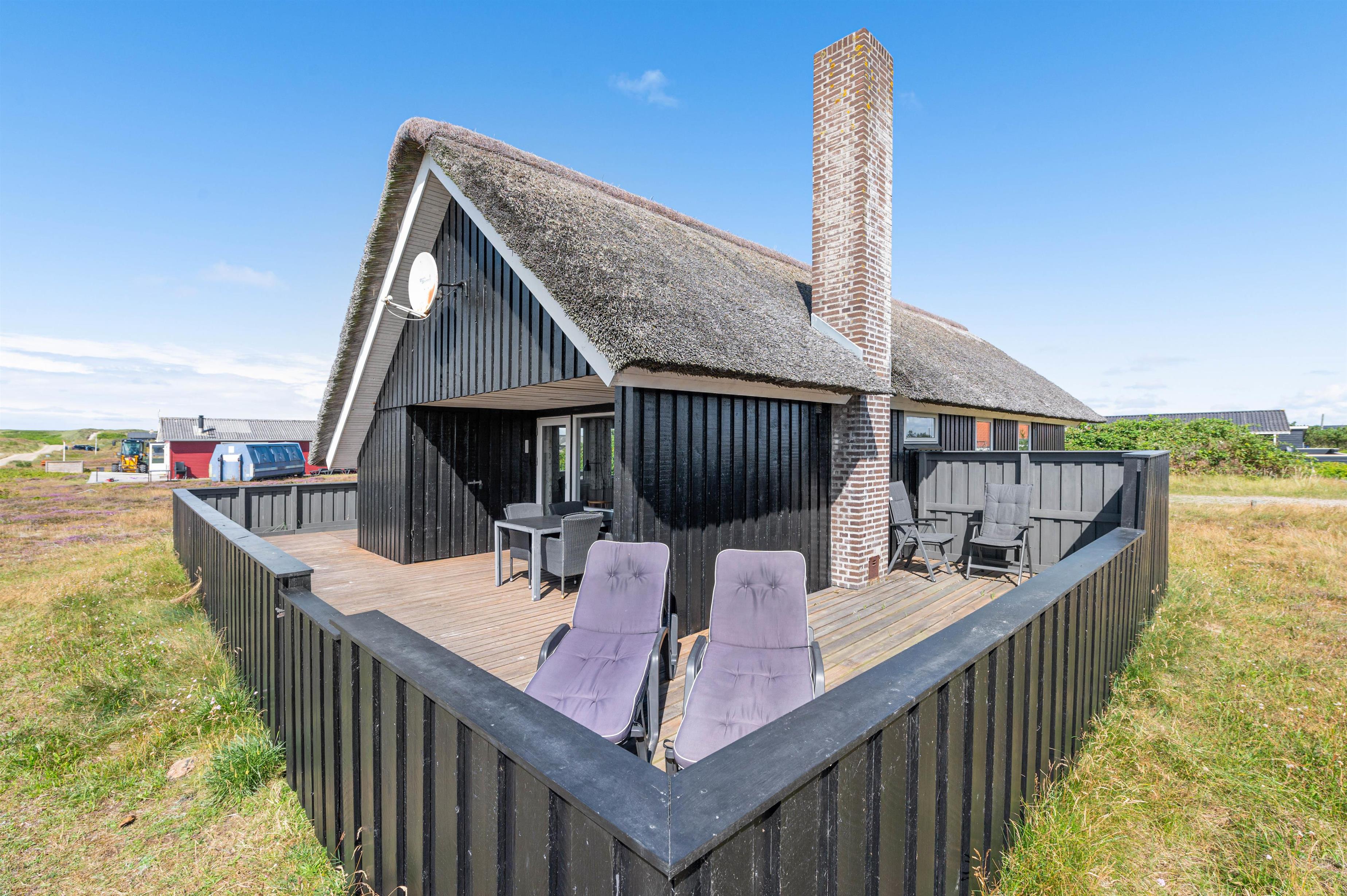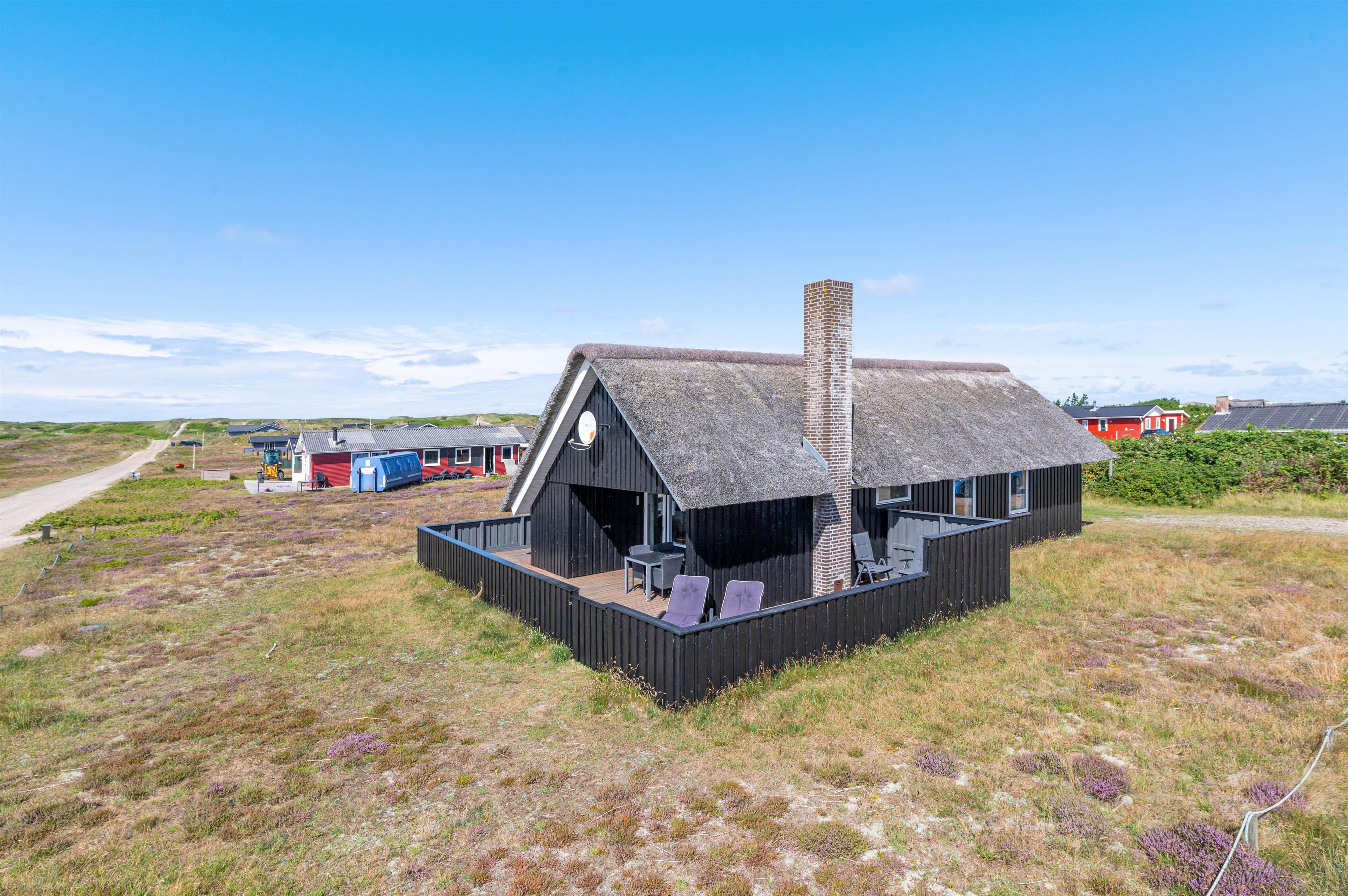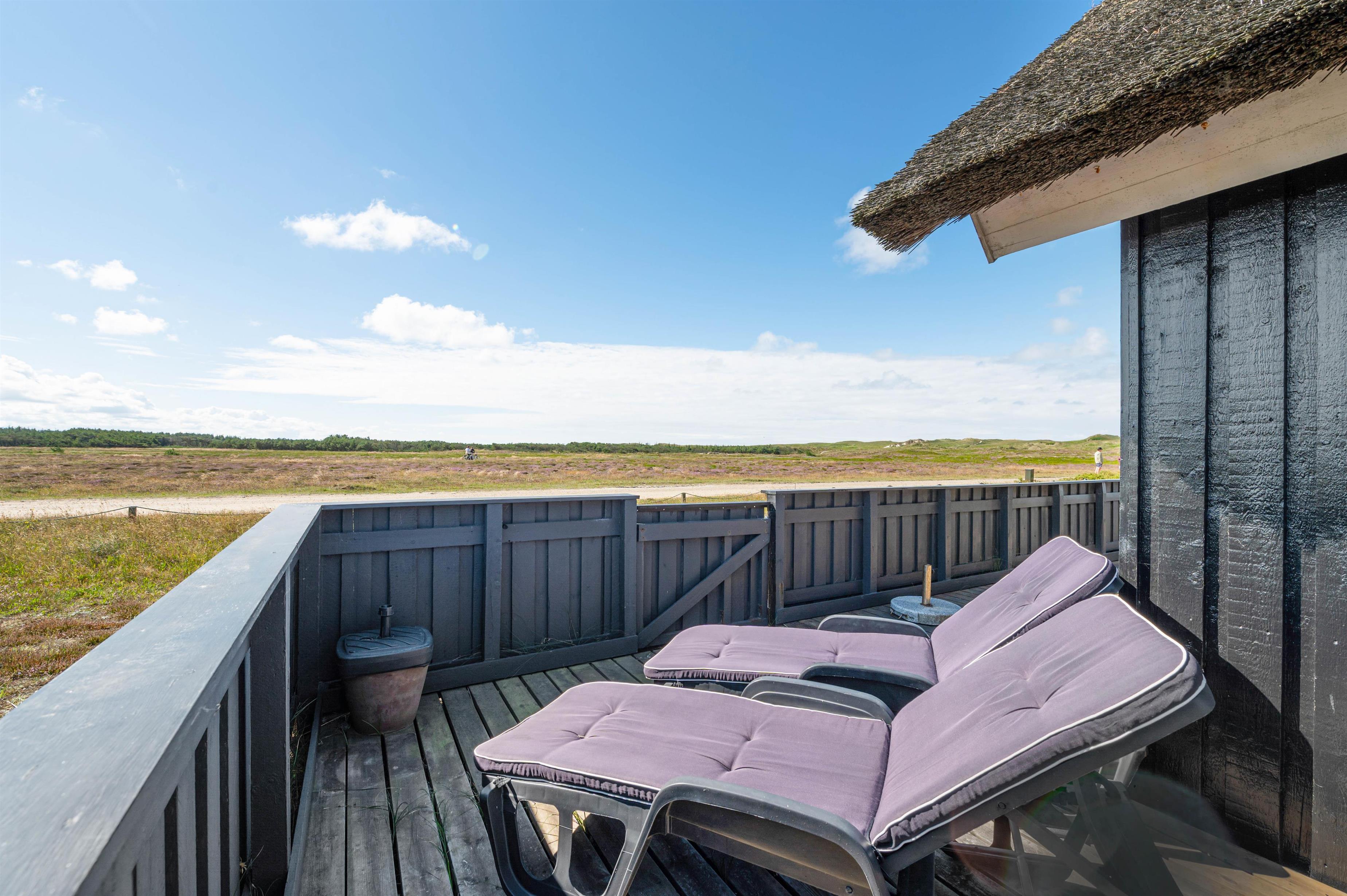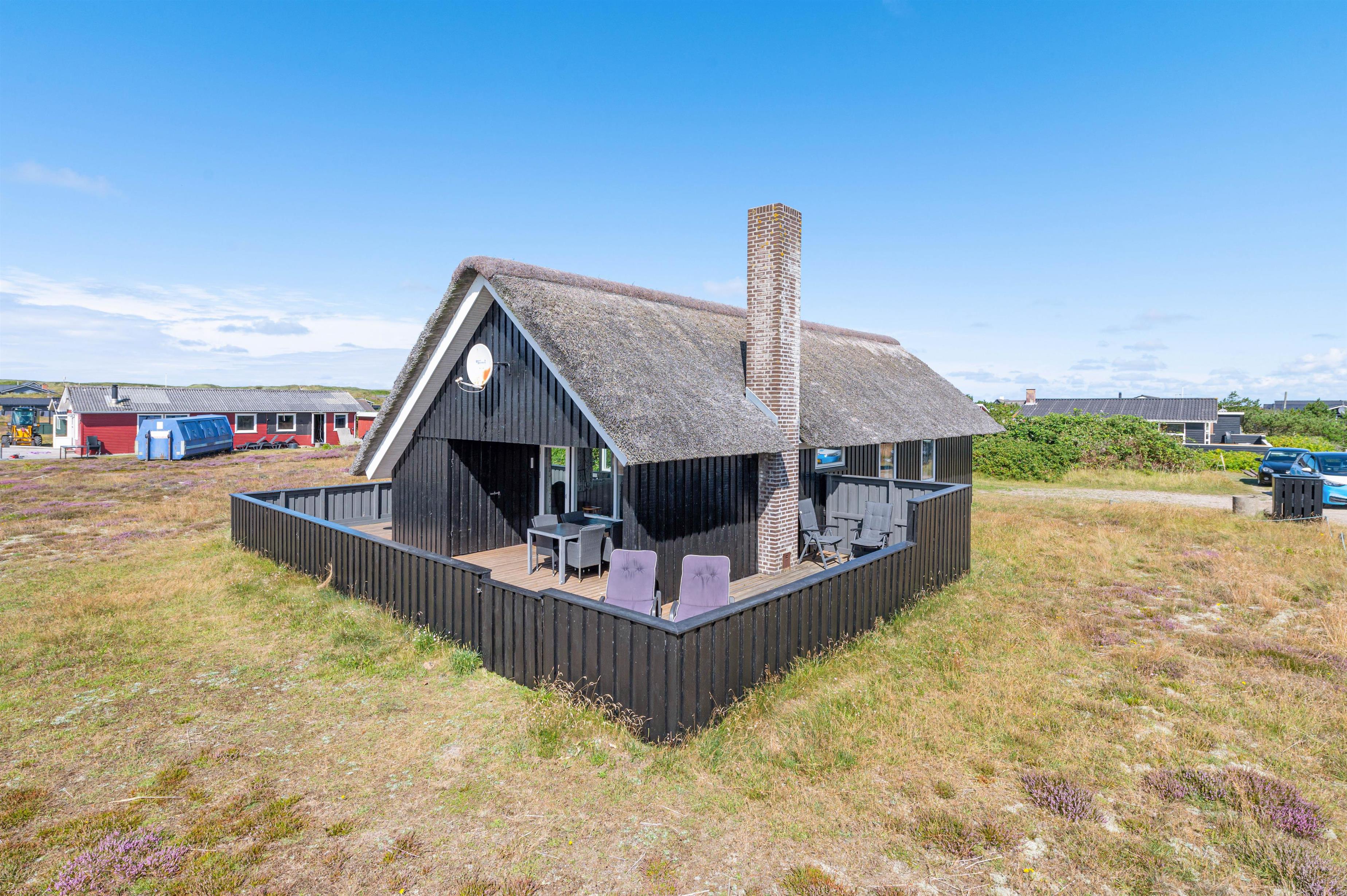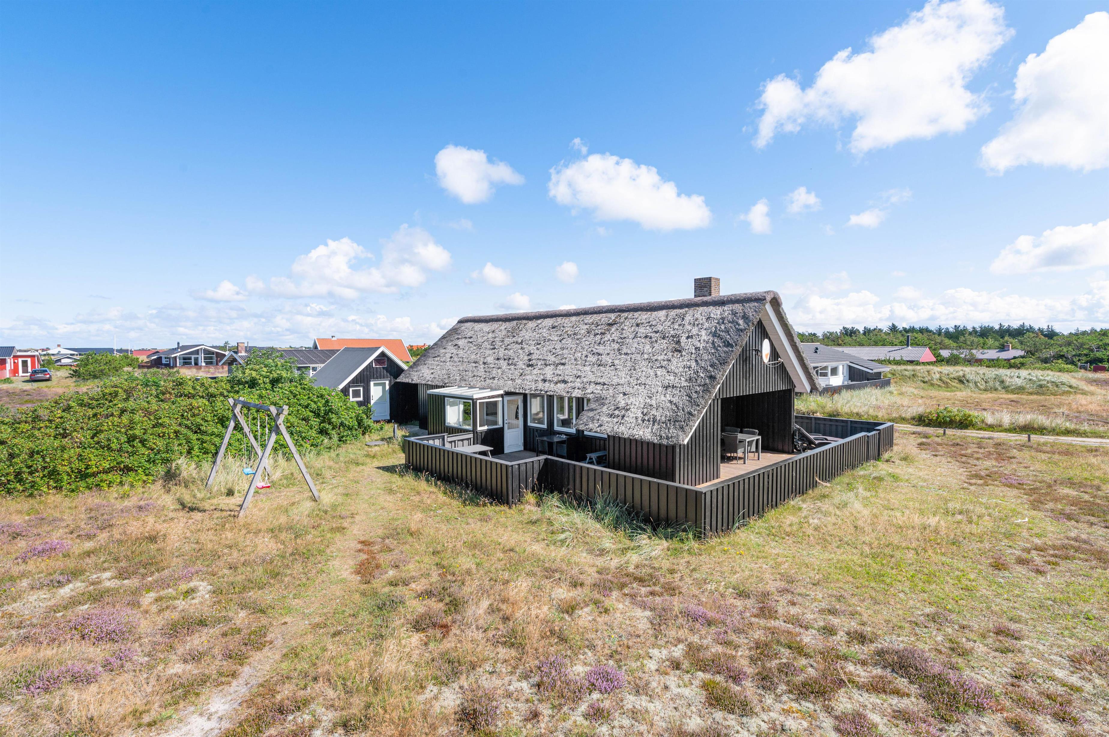 Leder I efter et dejligt sommerhus til 5 personer og 2 hunde til den næste familieferie? Så kan I kigge nærmere på dette fine sommerhus, som er lyst og venligt indrettet. Sommerhuset har en perfekt beliggenhed op til stort fredet hedeområde. Derudover har sommerhuset en stor, lukket terrasse, som er perfekt, hvis I har småbørn eller hund med på ferien. Da sommerhuset er bygget i træ og med stråtag, er dette et ægte sommerhus og charmerende indrettet. Der er opvaskemaskine og sauna i sommerhuset.