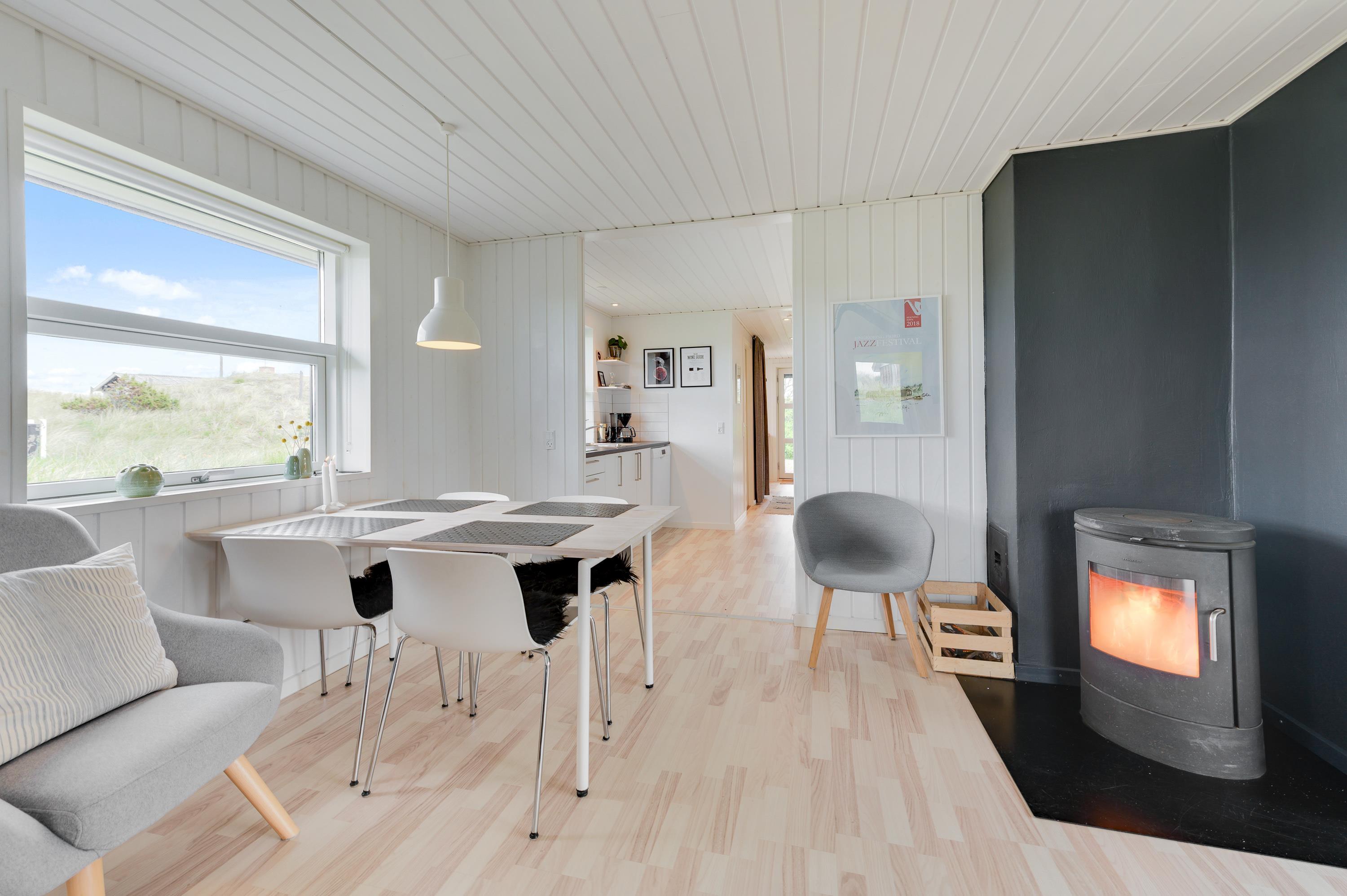 Stuen er hyggeligt indrettet – og indbyder til totalafslapning foran den knitrende ild i brændeovnen på de køligere dage. Læs en god bog, hyg jer med familiespil - eller I kan med cromecast i huset streame jeres ynglingsfilm.