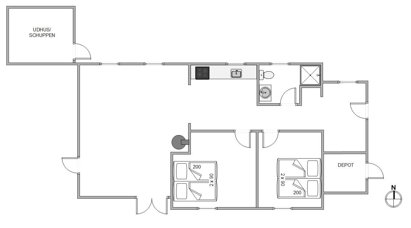 Feriehuset her er renoveret i foråret 2020 og fremstår overalt lyst og venligt, bl.a. med praktisk trælaminat overalt. Centrum i huset er opholdsrummet med kombineret stue og spiseafdeling – og med adgang til den praktiske og flotte køkkenafdeling. Her finder I alt, hvad I har brug for til en god ferie, bl.a. 65 l. fryser, opvaskemaskine og mikroovn.