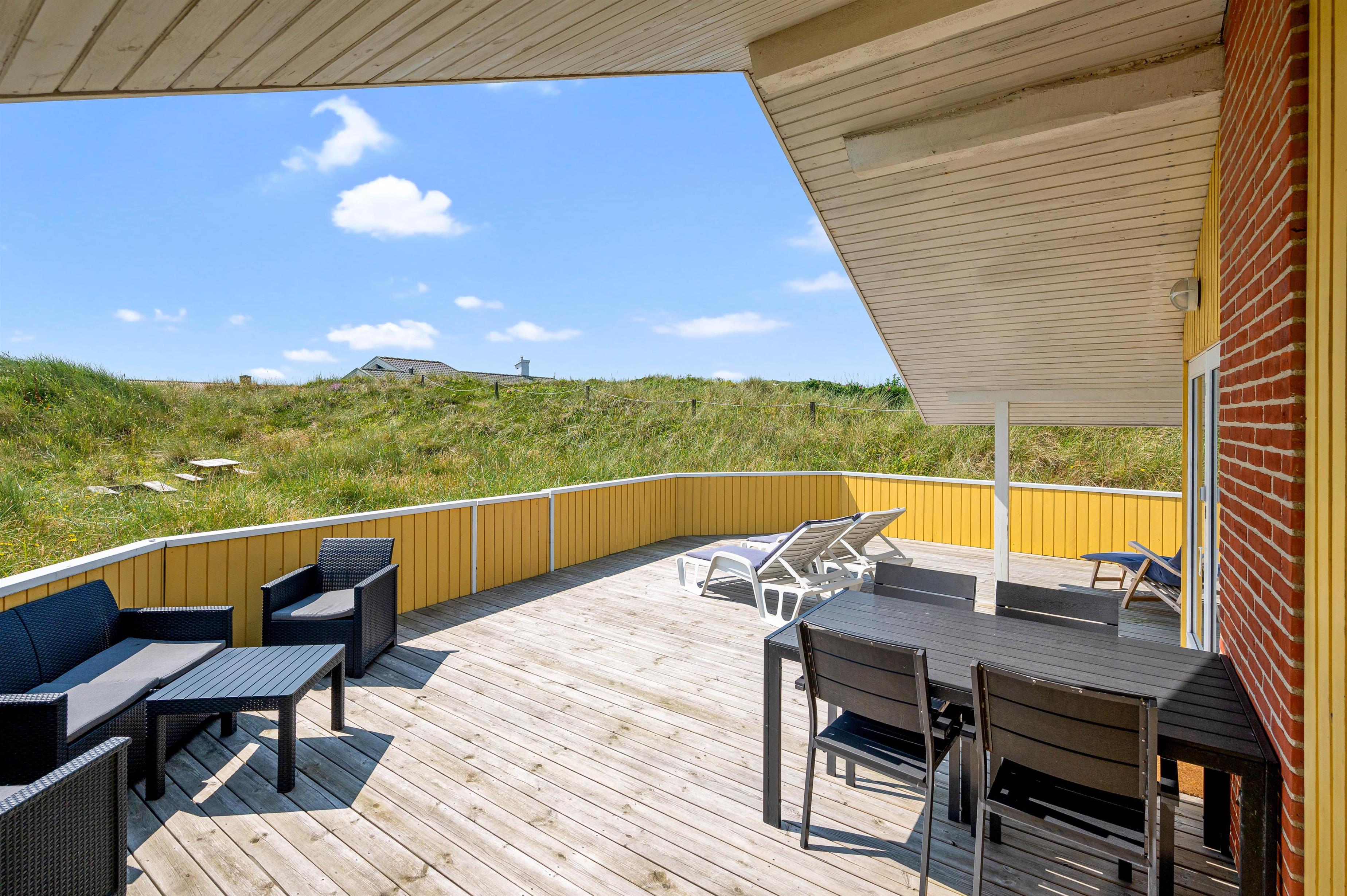 På Arvidvej 104 er der en lukket, sammenhængende terrasse på to sider af huset, så du kan altid finde en god plads med læ eller sol. De komfortable havemøbler og en stor kuglegrill gør det til en fornøjelse at indtage morgenmaden eller et lækkert grillmåltid udendørs i den friske vesterhavsluft.