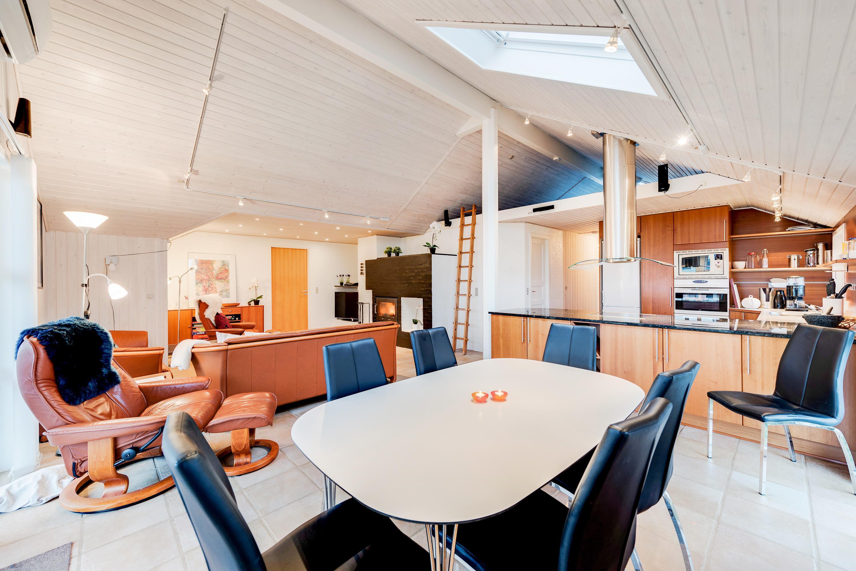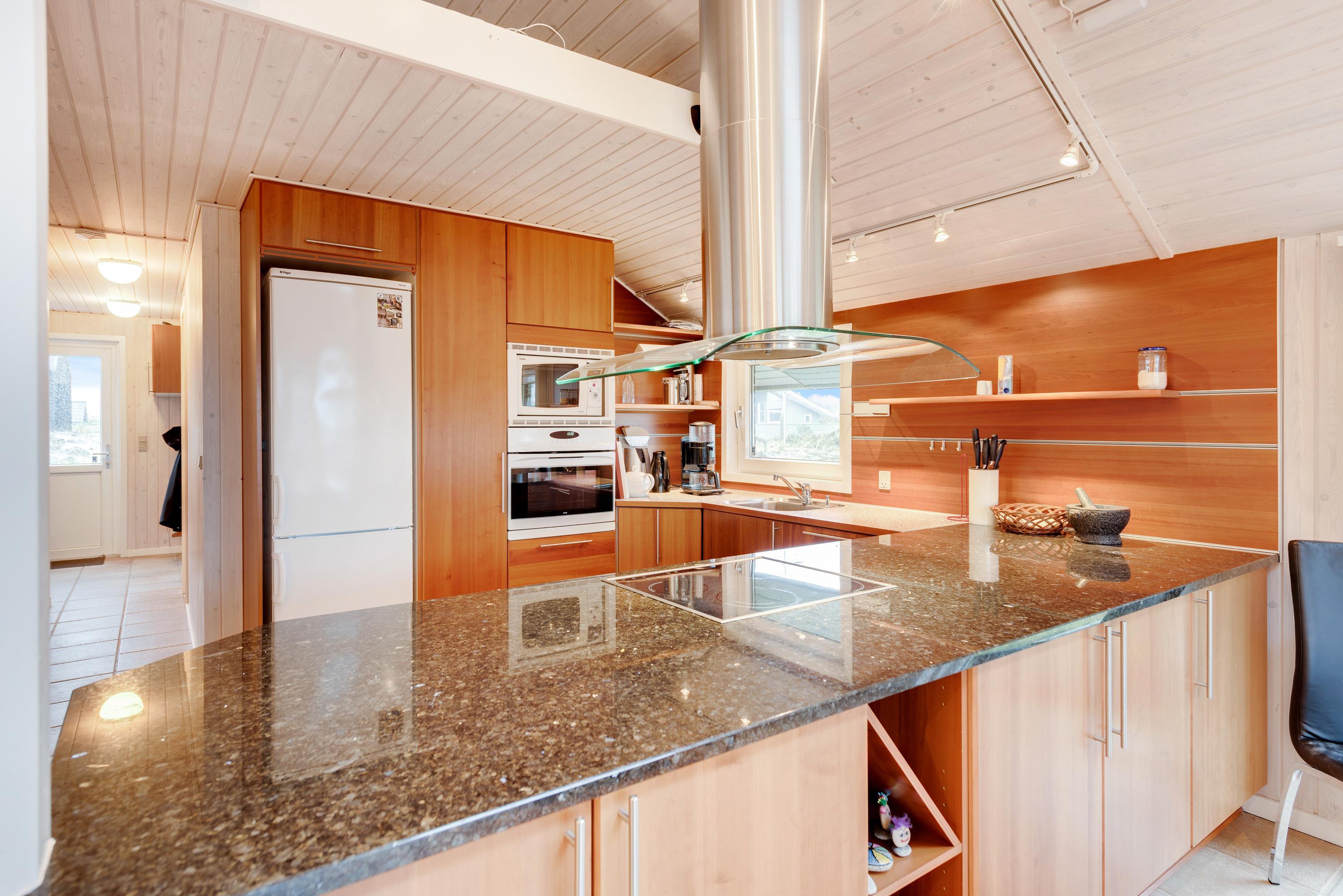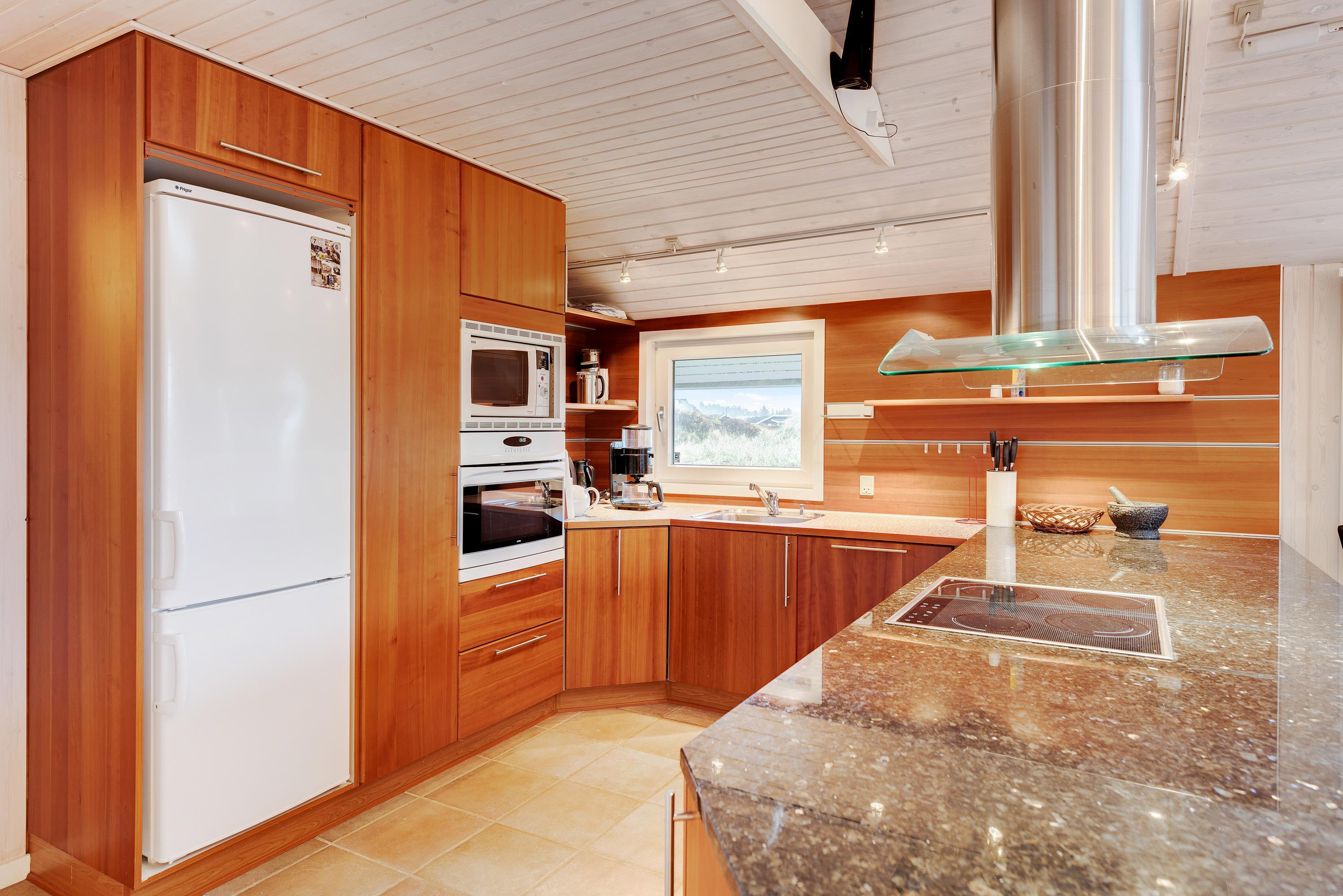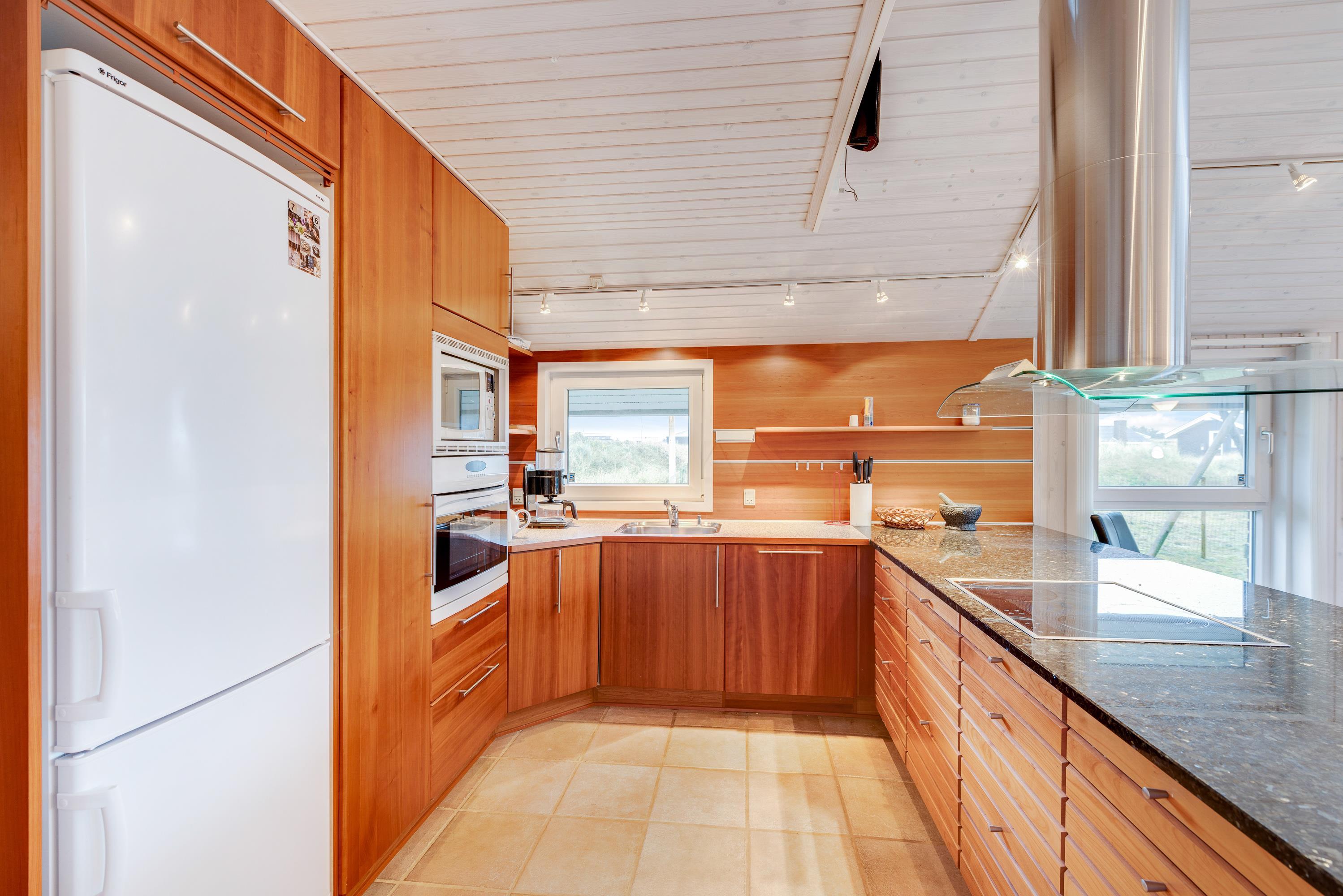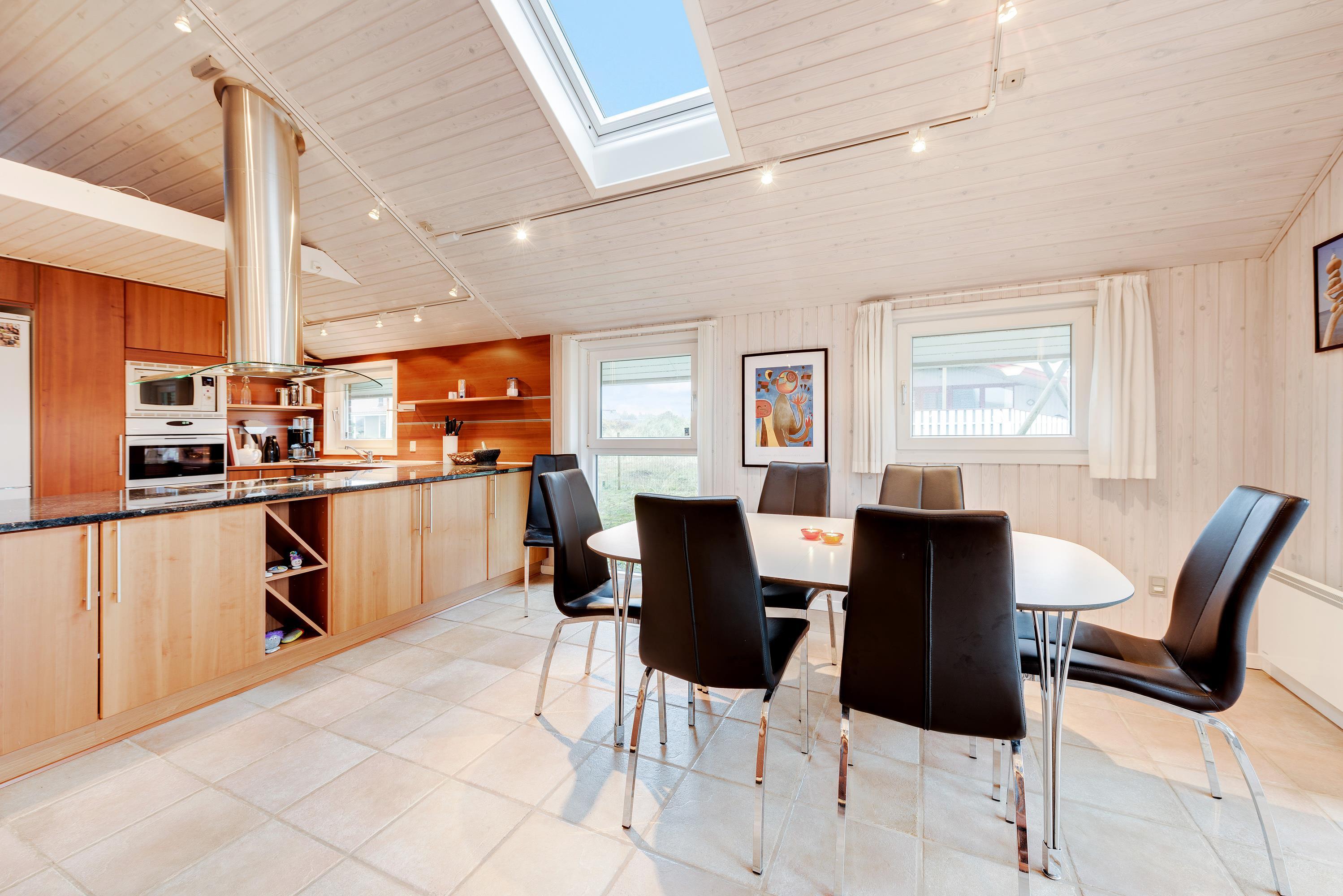 I det pæne køkken med åben forbindelse til alrum og stuen er der loft til kip. Der er opvaskemaskine, mikroovn samt en separat 80 liters fryser. Her er der rigeligt med plads til fælles madlavning, og maden tilberedes hurtigt på induktionskomfuret med indbygget ovn.